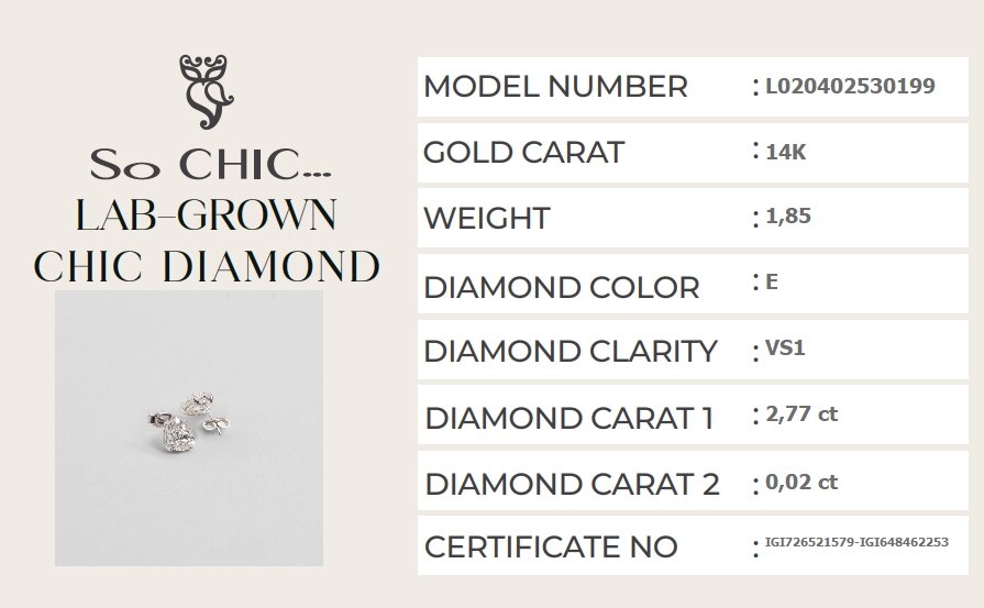Bu tasarımda yer alan her bir ana taş, pırlantanın dünyadaki tekil kimliğini simgeleyen LG648462253 ve LG726521579 benzersiz kodlarına sahiptir. IGI standartlarında tescillenen bu kodlar, sahip olduğunuz pırlantanın biricikliğini doğrular.