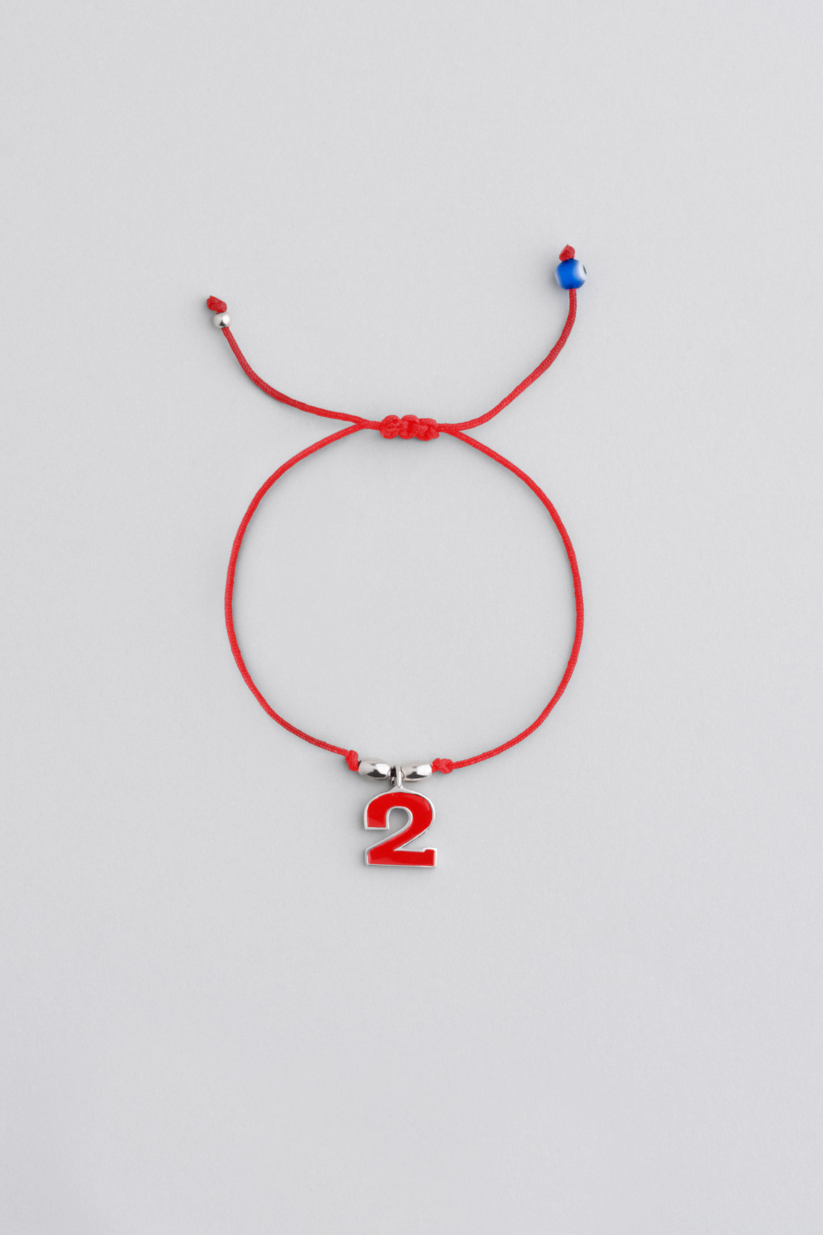 2 Sayısı İkonlu 18 Ayar Beyaz Altın Kaplama Ayarlanabilir Gümüş İpli Bileklik