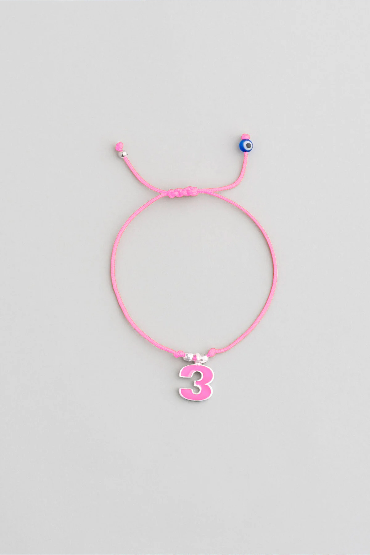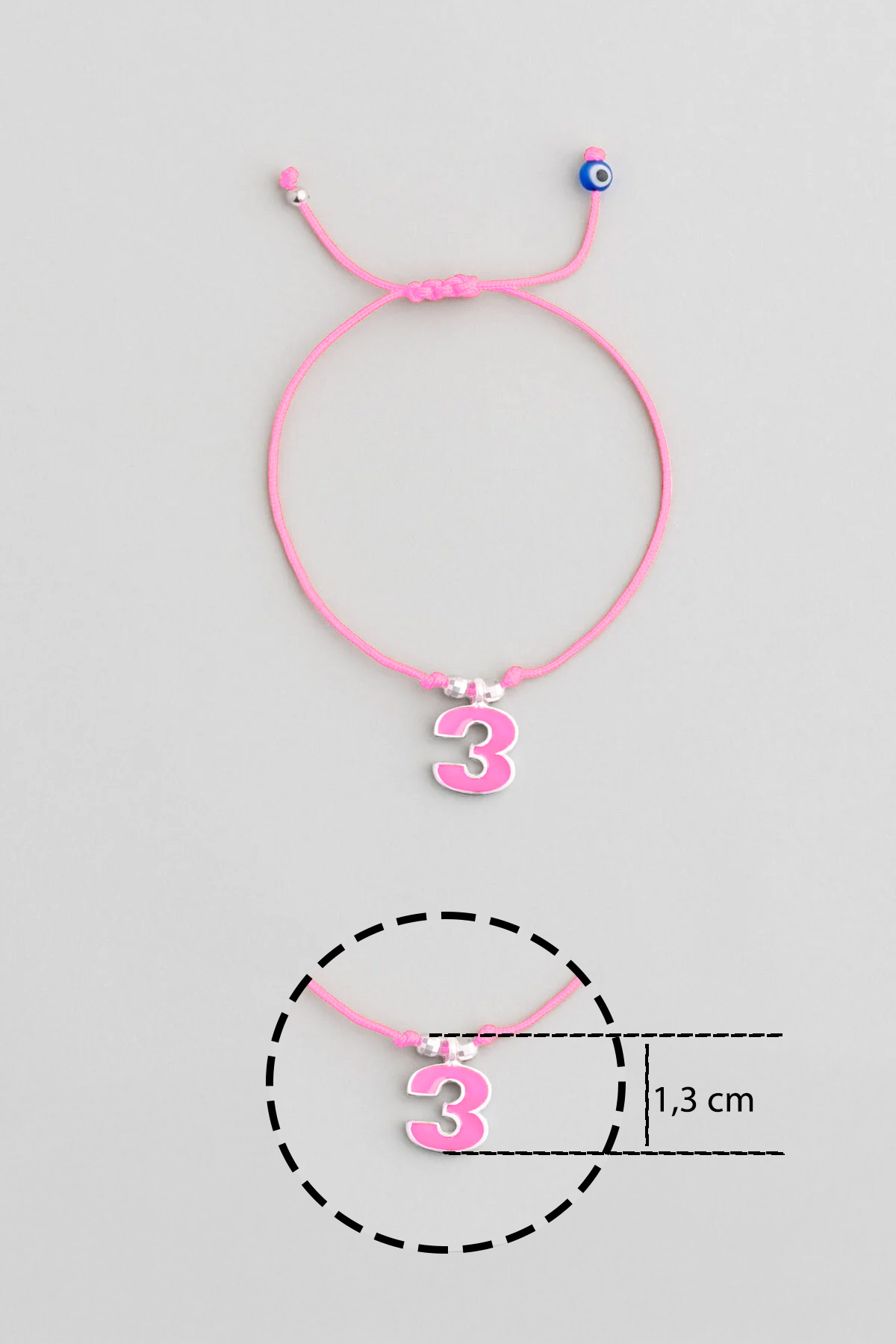 3 Sayısı İkonlu 18 Ayar Beyaz Altın Kaplama Ayarlanabilir Gümüş İpli Bileklik