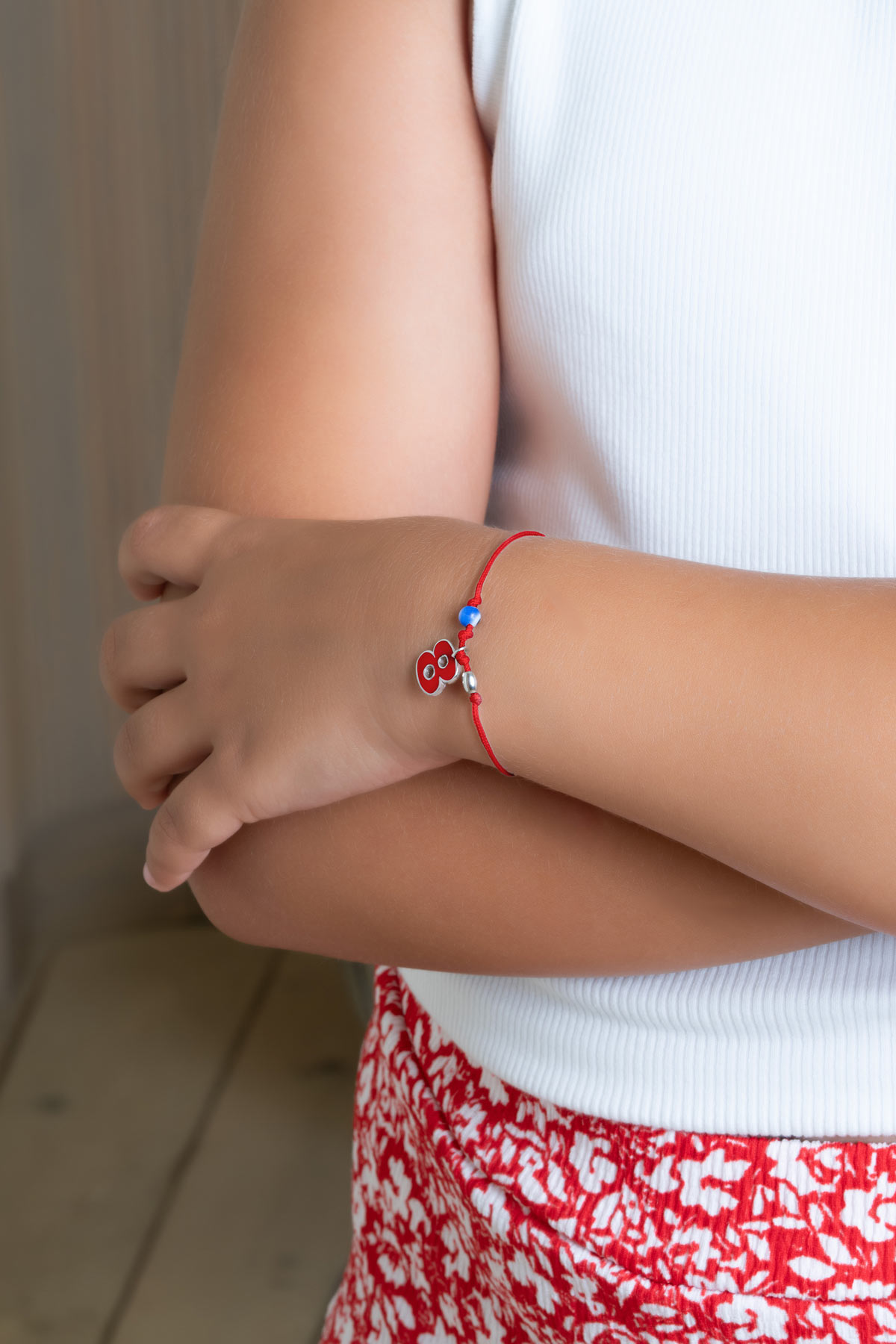 8 Sayısı İkonlu 18 Ayar Beyaz Altın Kaplama Ayarlanabilir İpli Bileklik