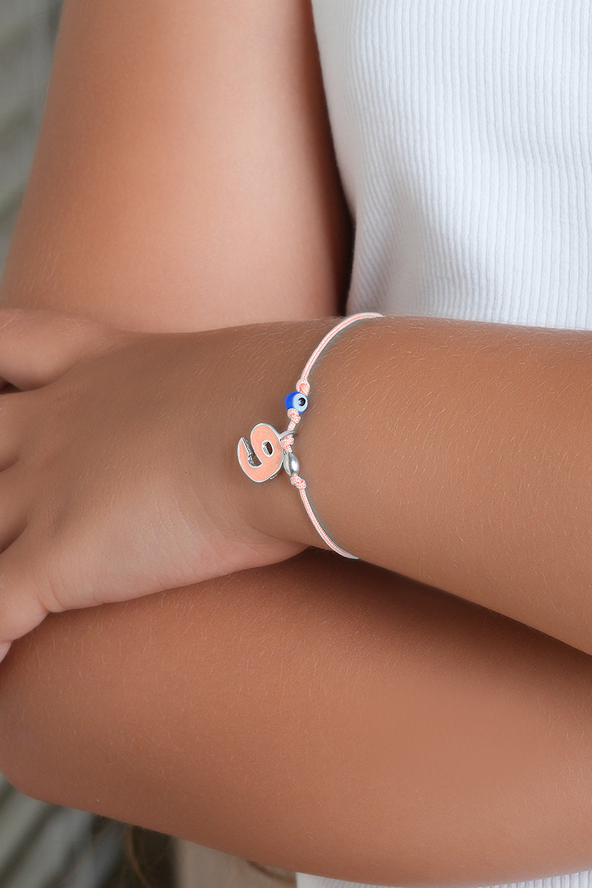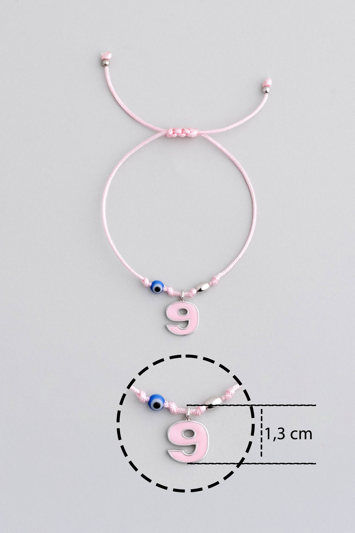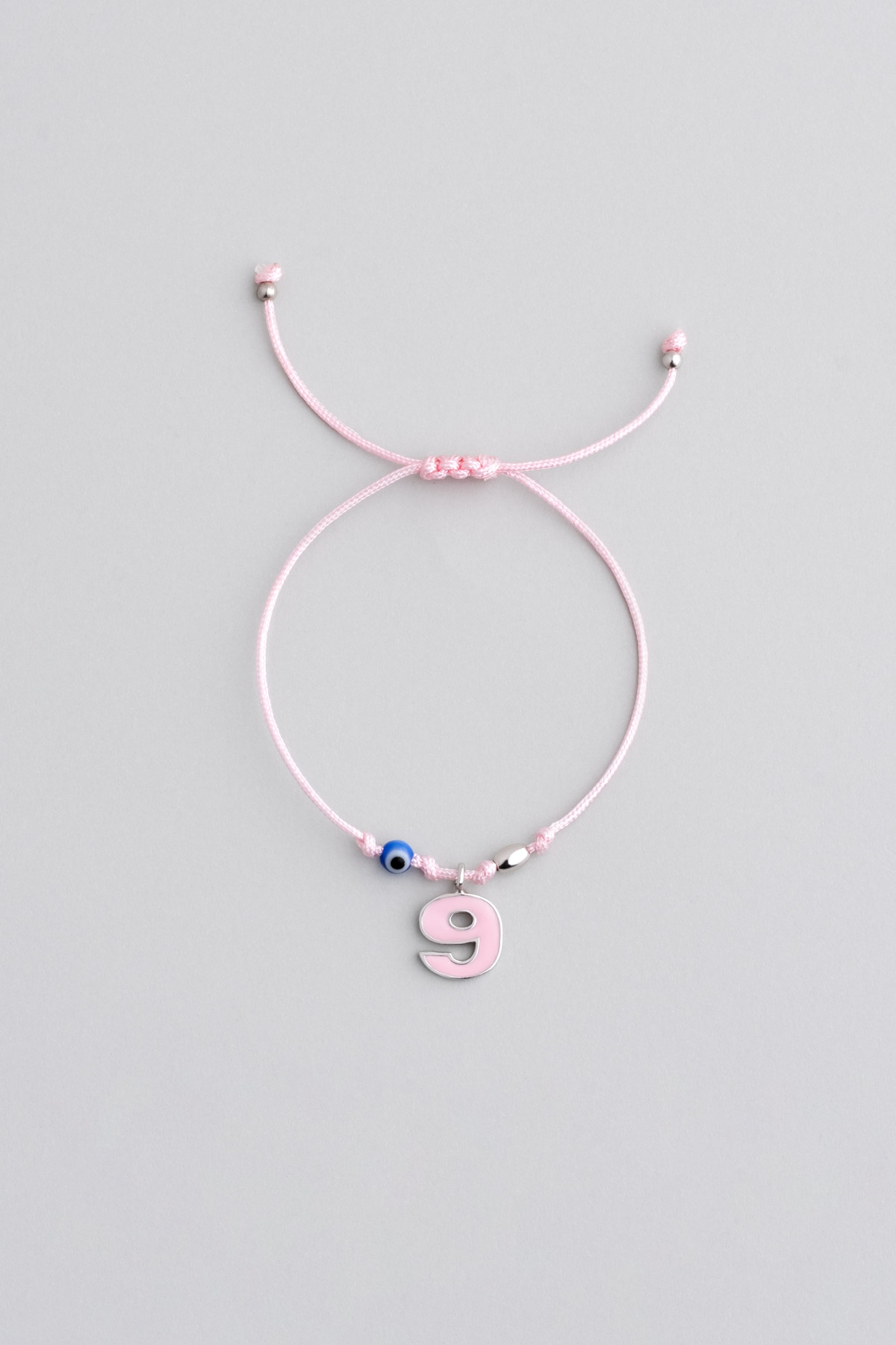 9 Sayısı İkonlu 18 Ayar Beyaz Altın Kaplama Ayarlanabilir Gümüş İpli Bileklik
