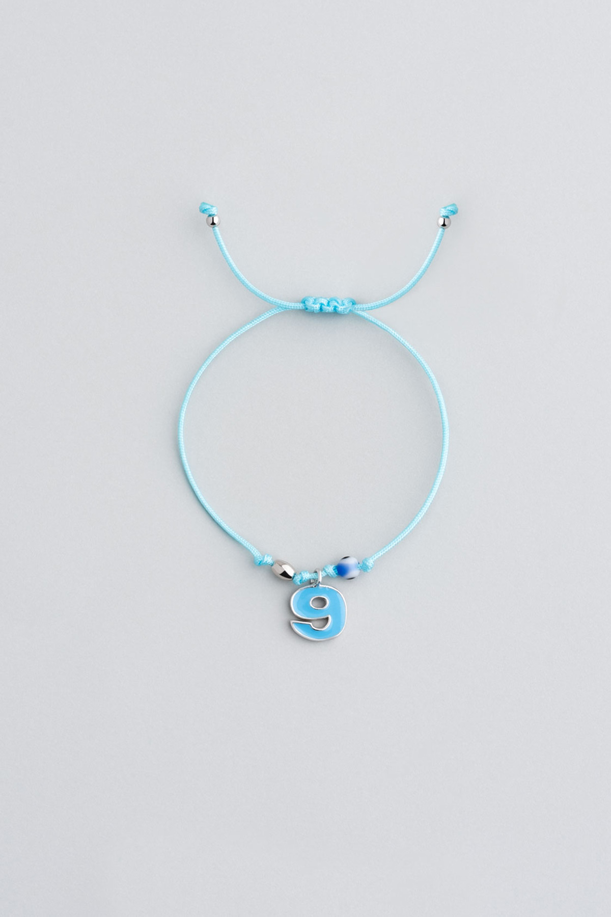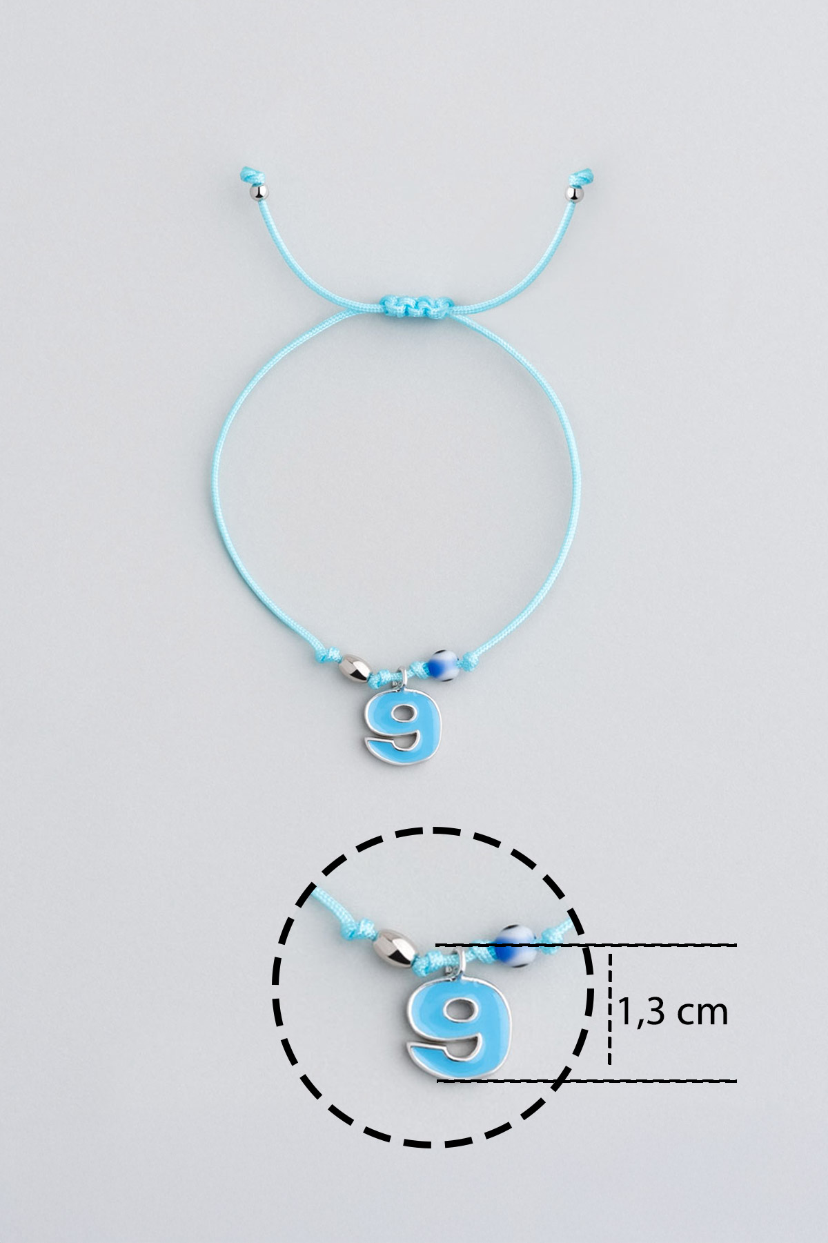 9 Sayısı İkonlu 18 Ayar Beyaz Altın Kaplama Ayarlanabilir Gümüş İpli Bileklik