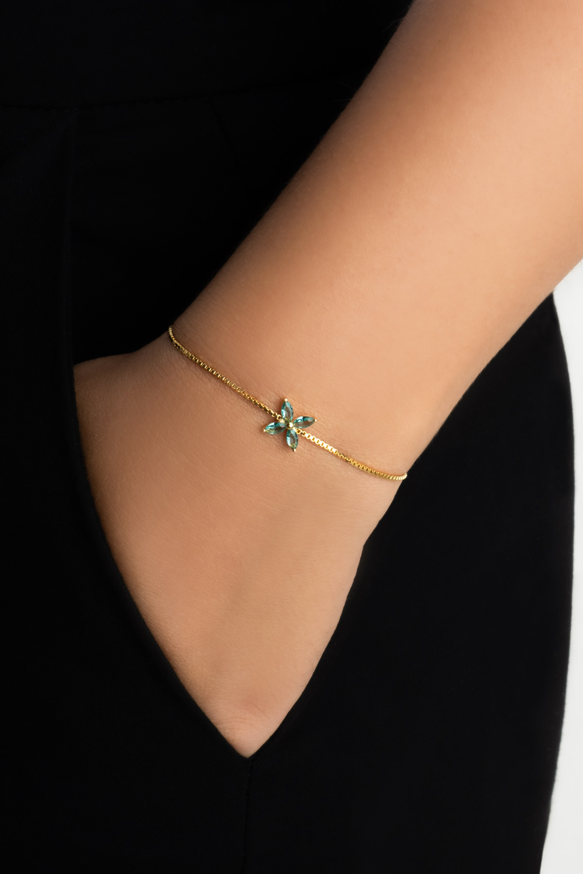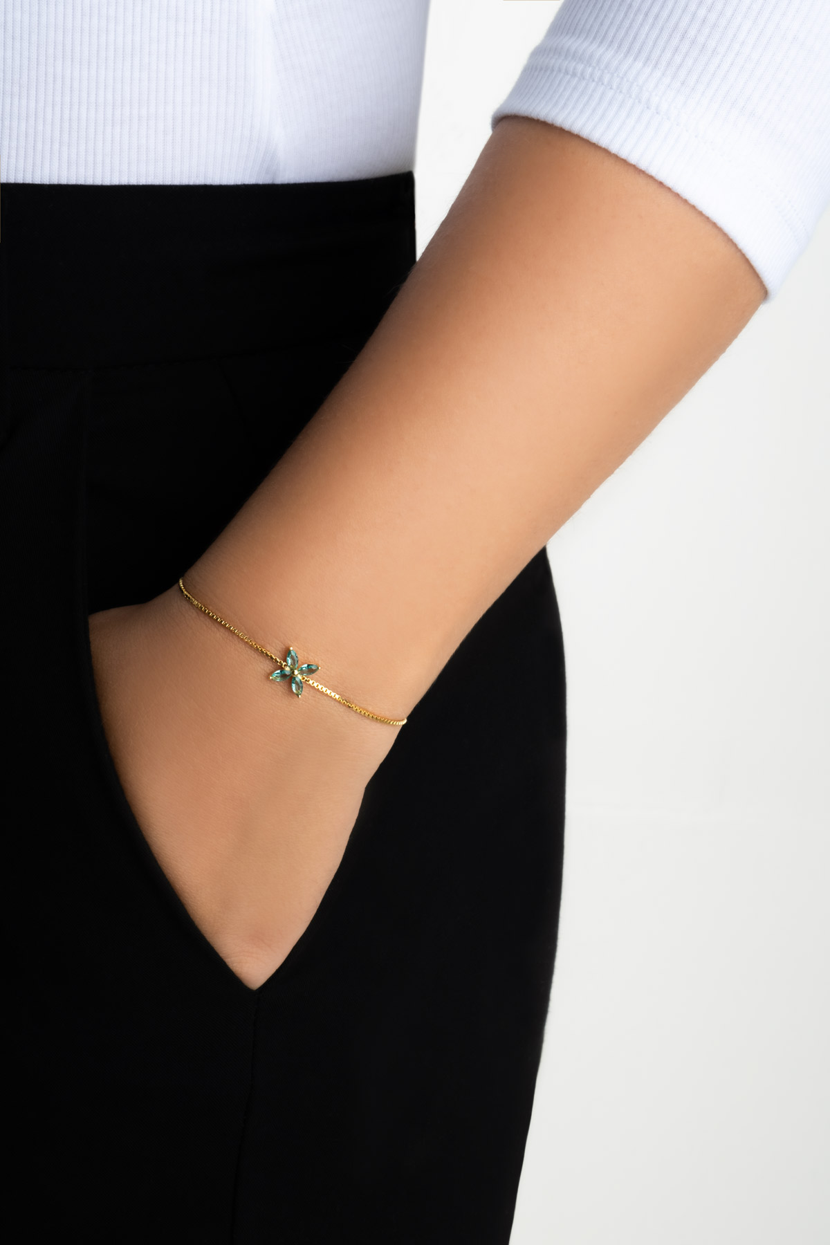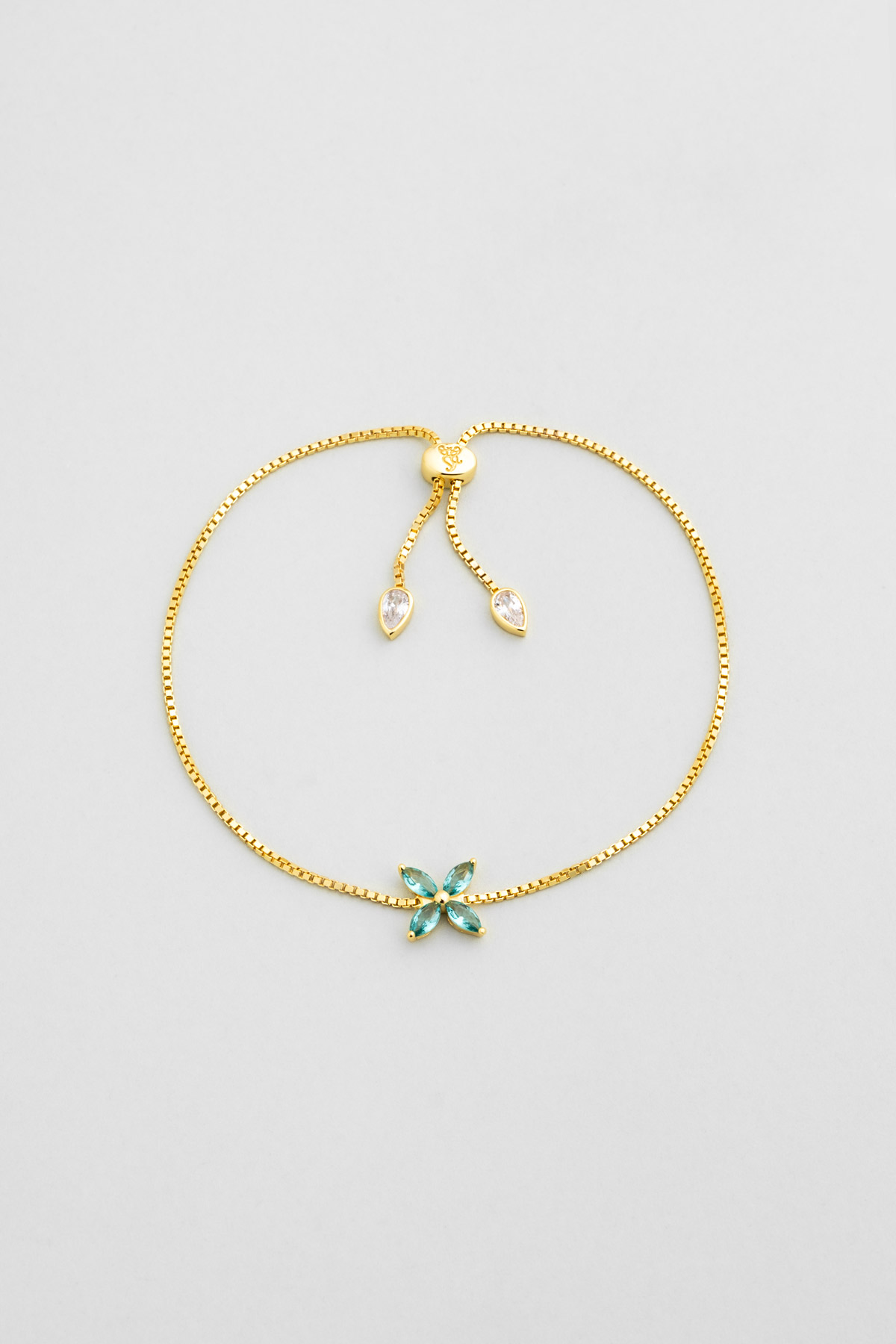 Afrodit 18 Ayar Sarı Altın Kaplama Ayarlanabilir Gümüş Papatya Bileklik