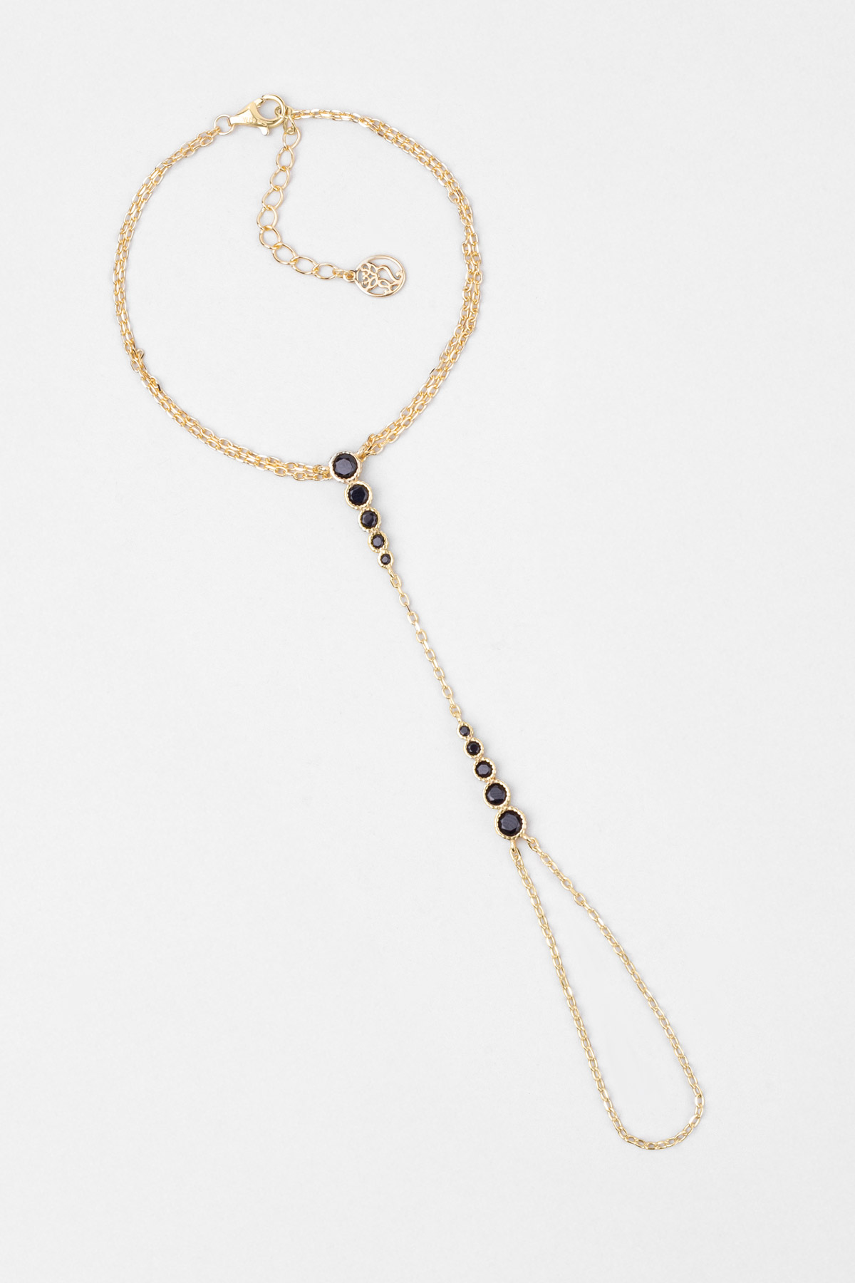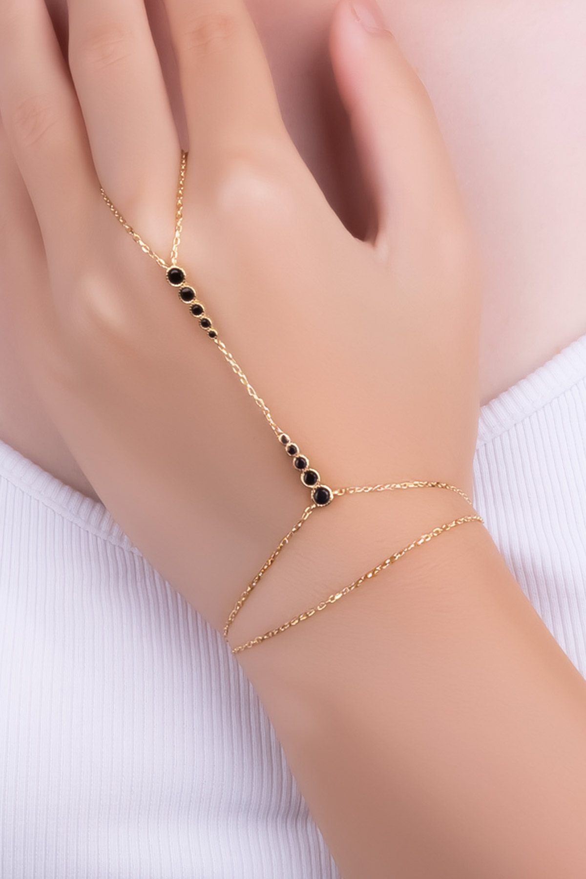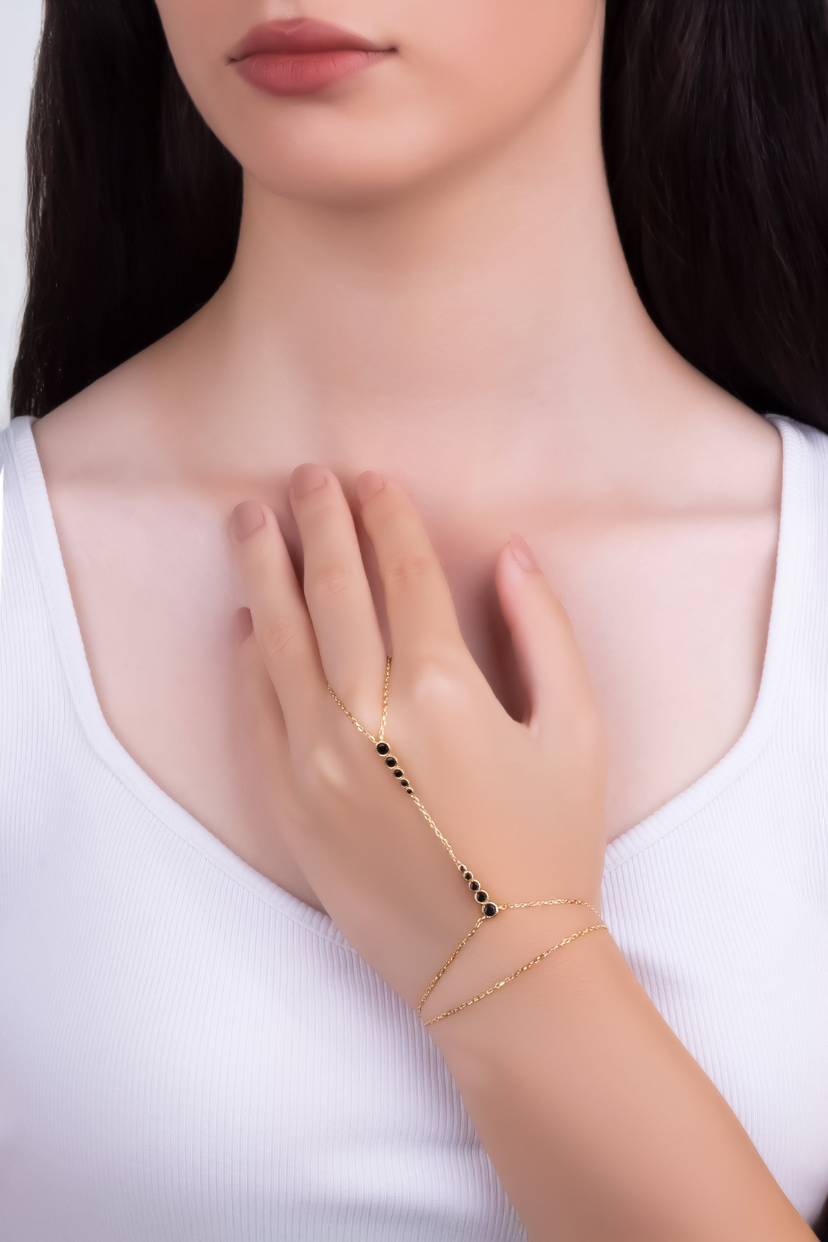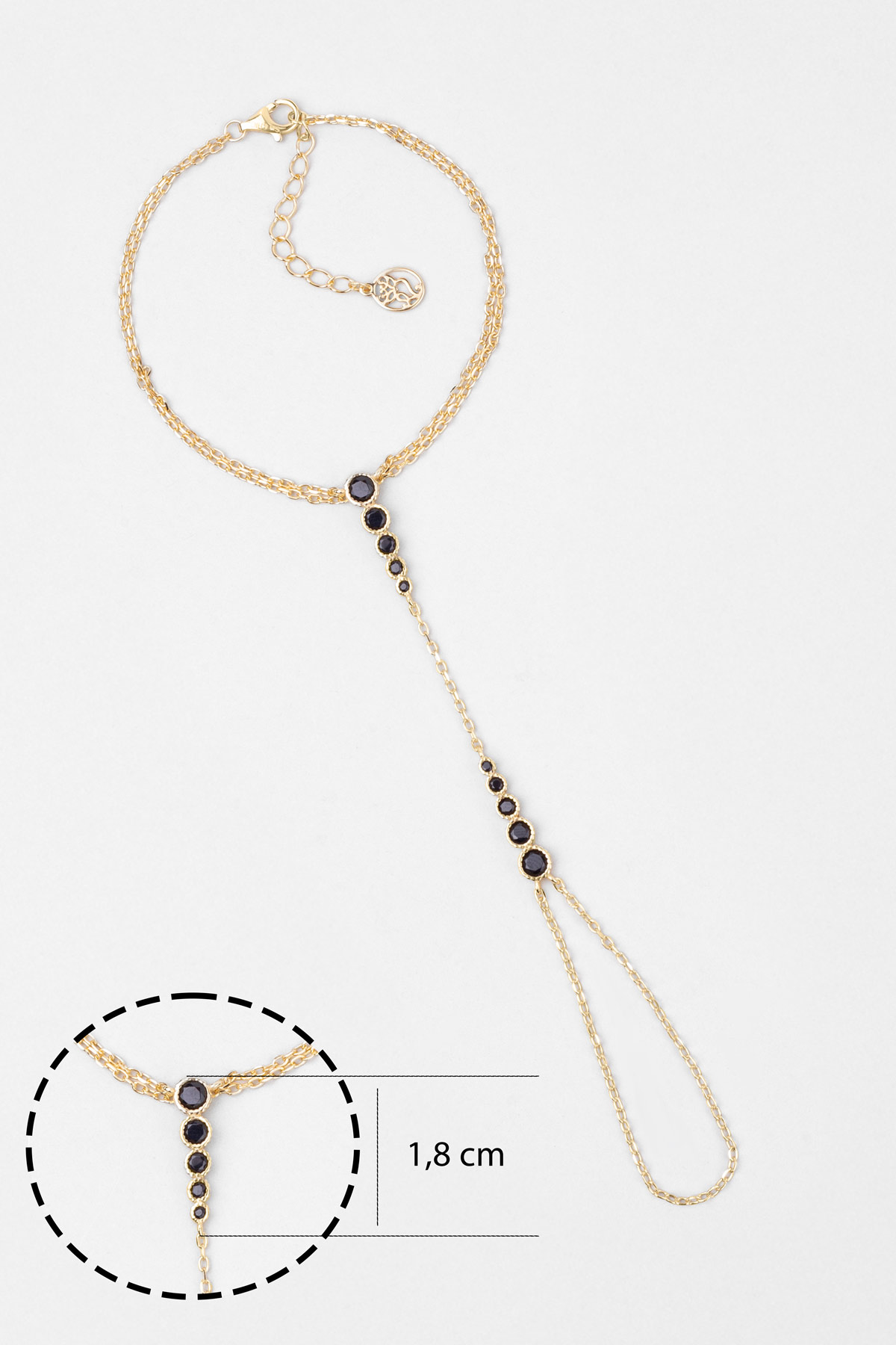Avangard Siyah Taşlı 18 Ayar Sarı Altın Kaplama 21 Cm Gümüş Şahmeran