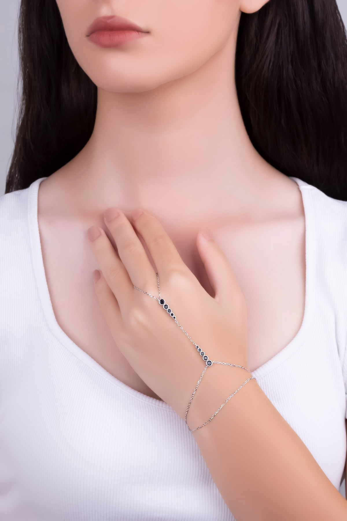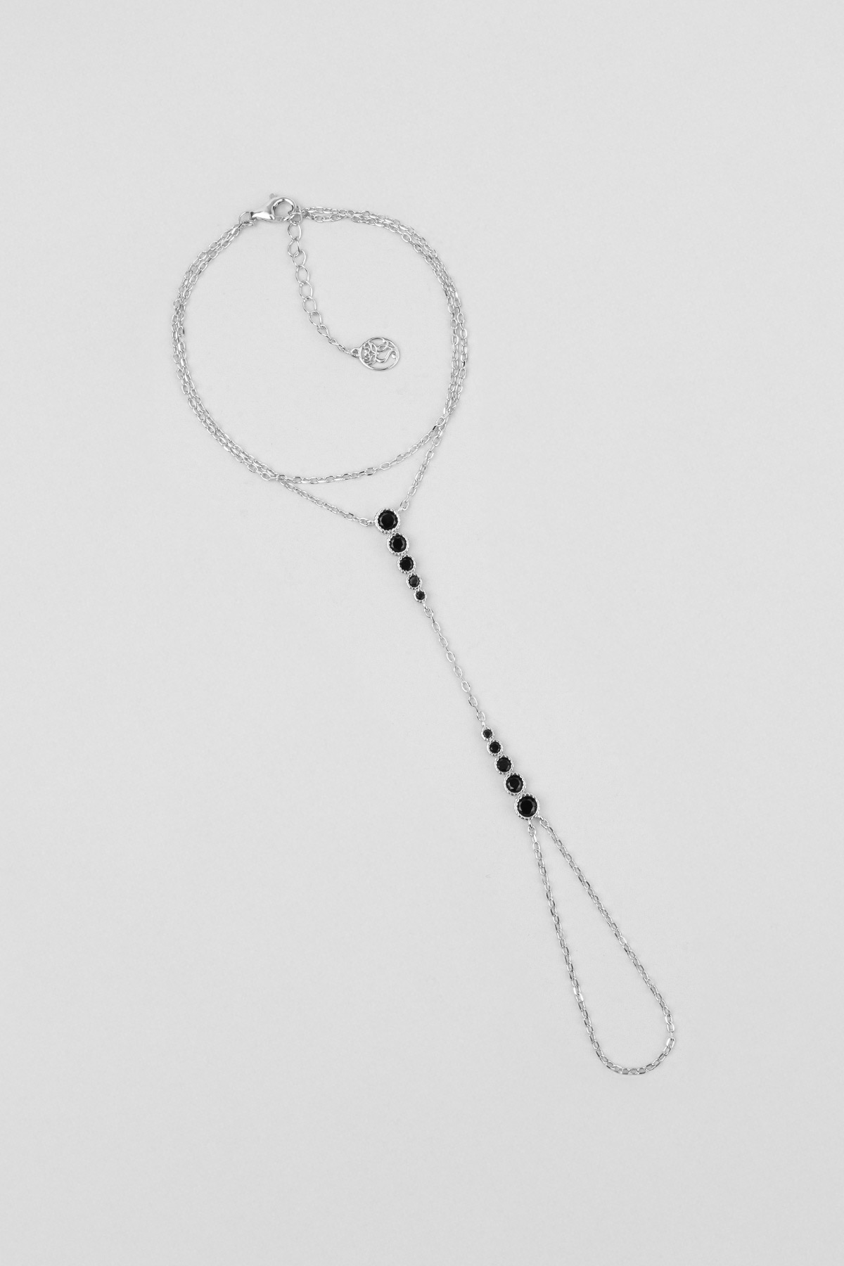 Siyah Taşlı Beyaz Altın Kaplama
