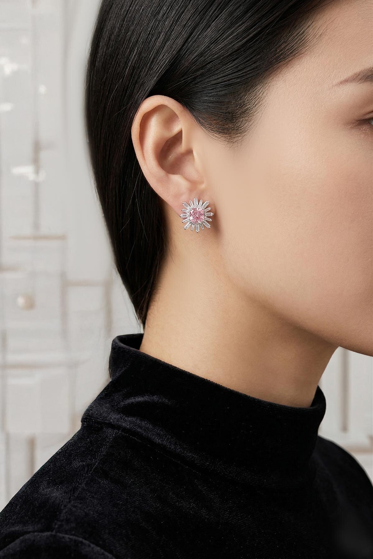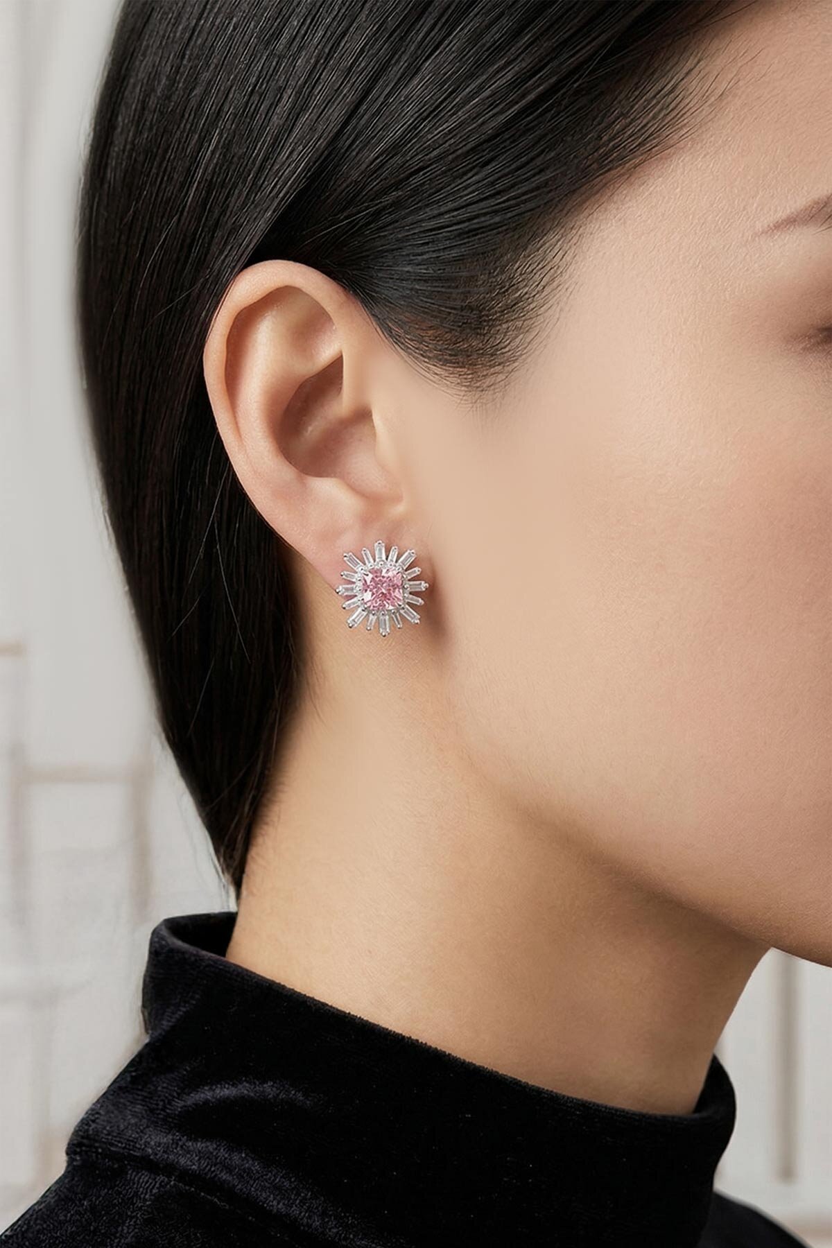 Pembe Taşlı Beyaz Altın Kaplama