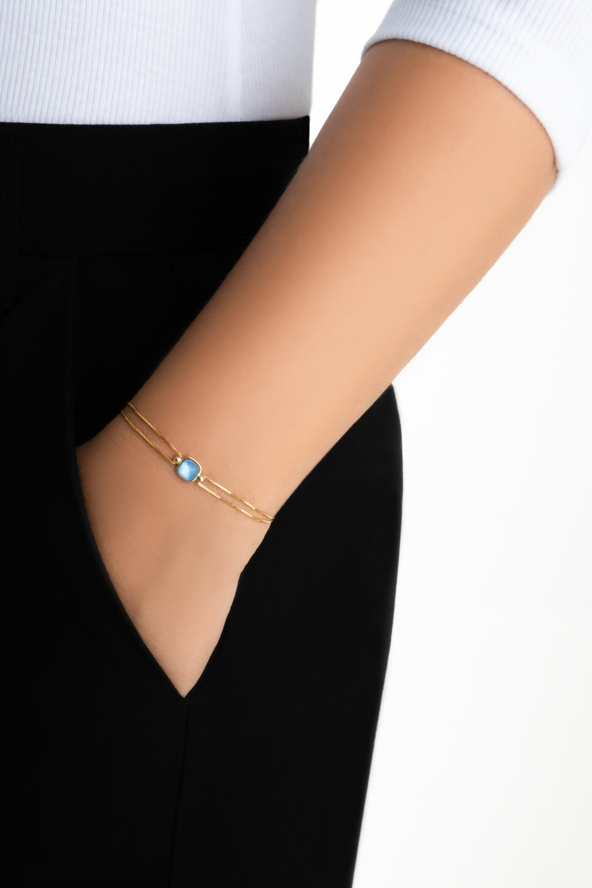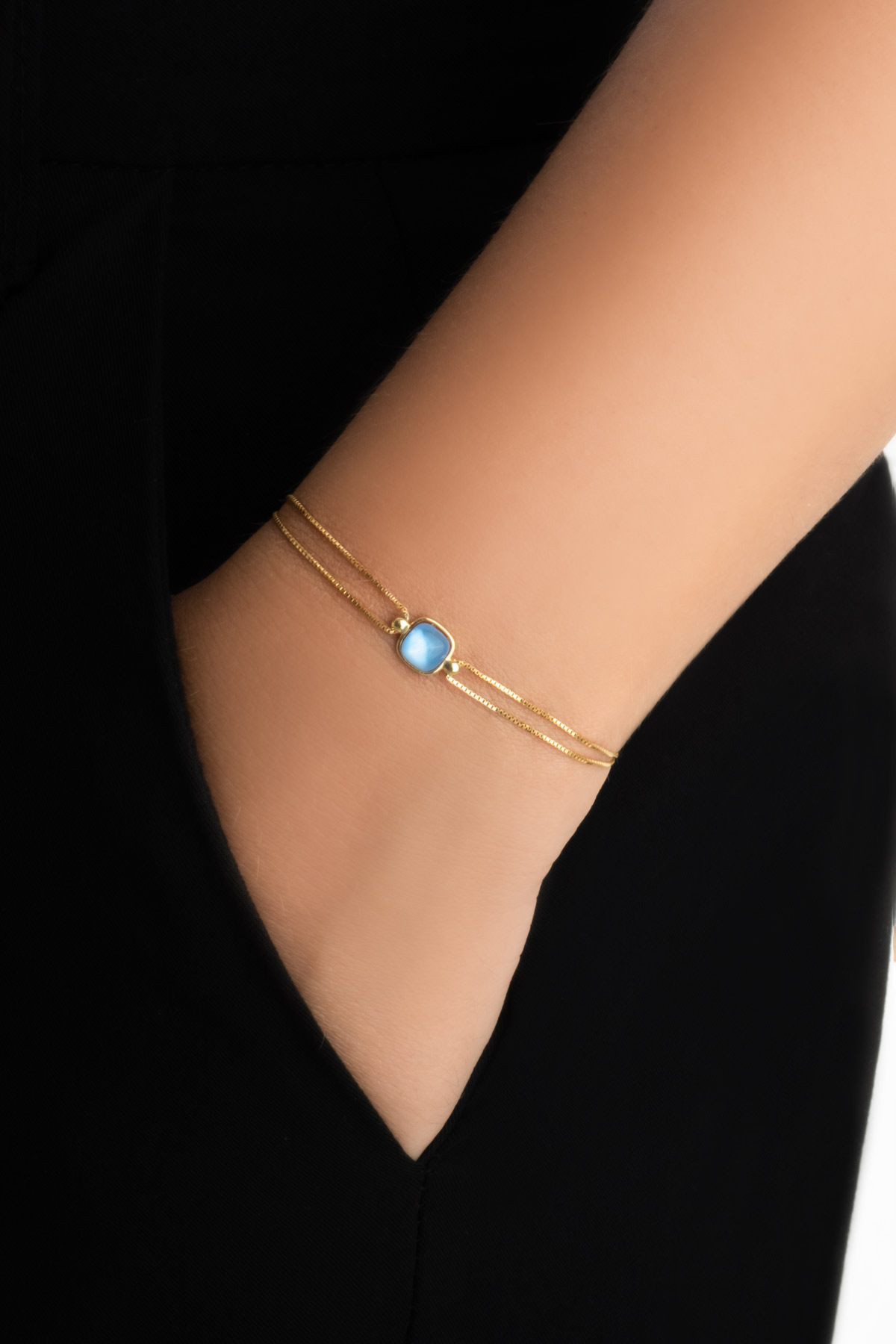 Açık Mavi Taşlı Sarı Altın Kaplama