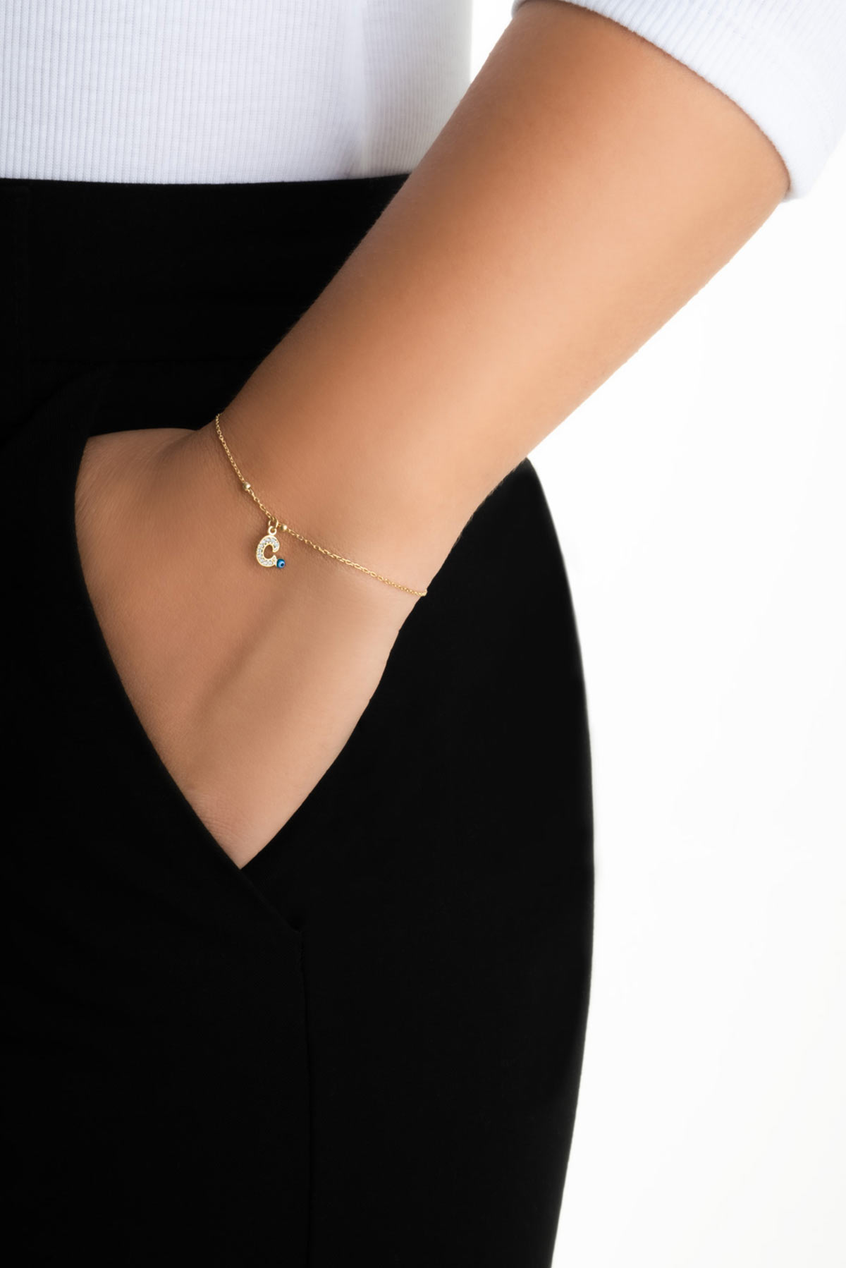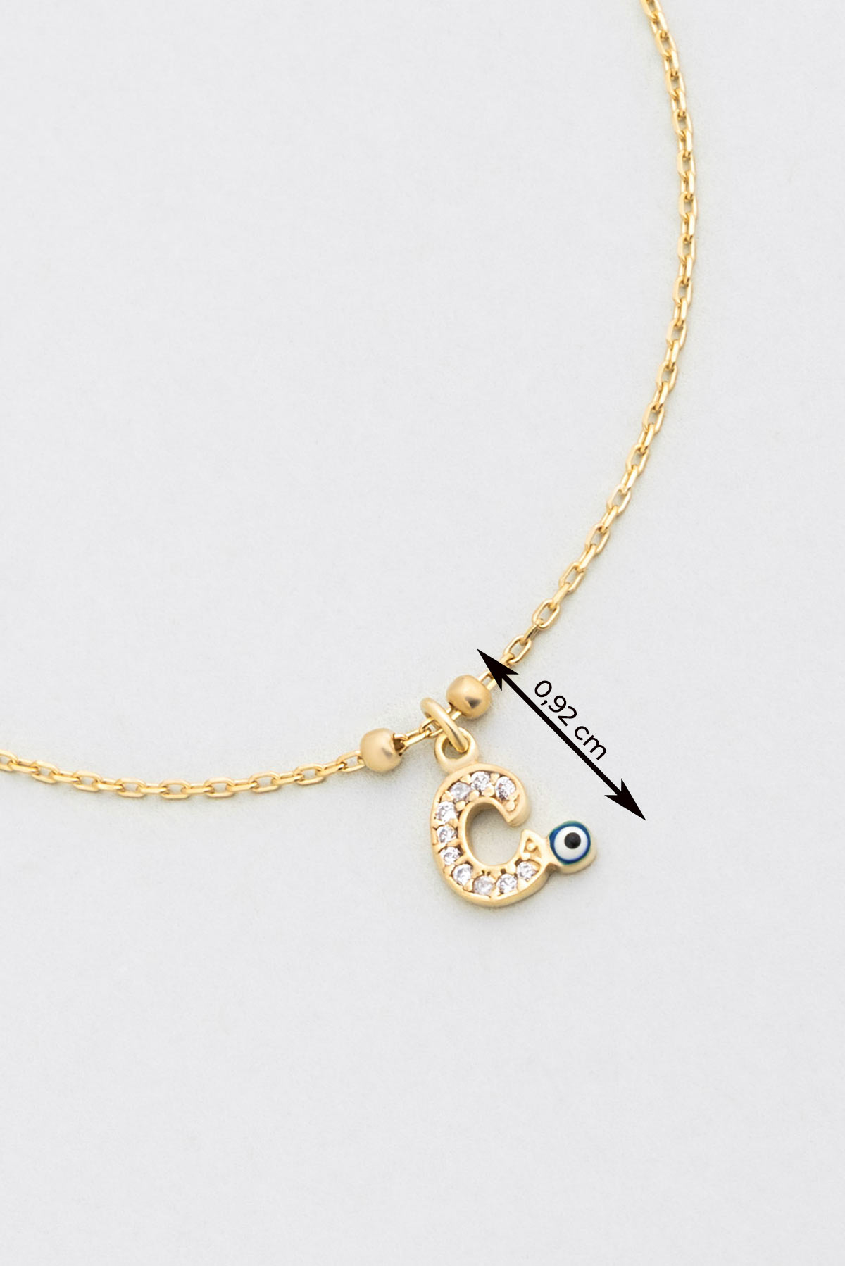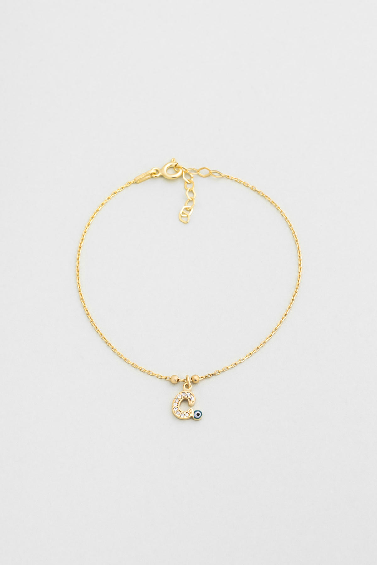 C Harfi 18 Ayar Sarı Altın Kaplama 19 Cm Gümüş Nazar Bileklik