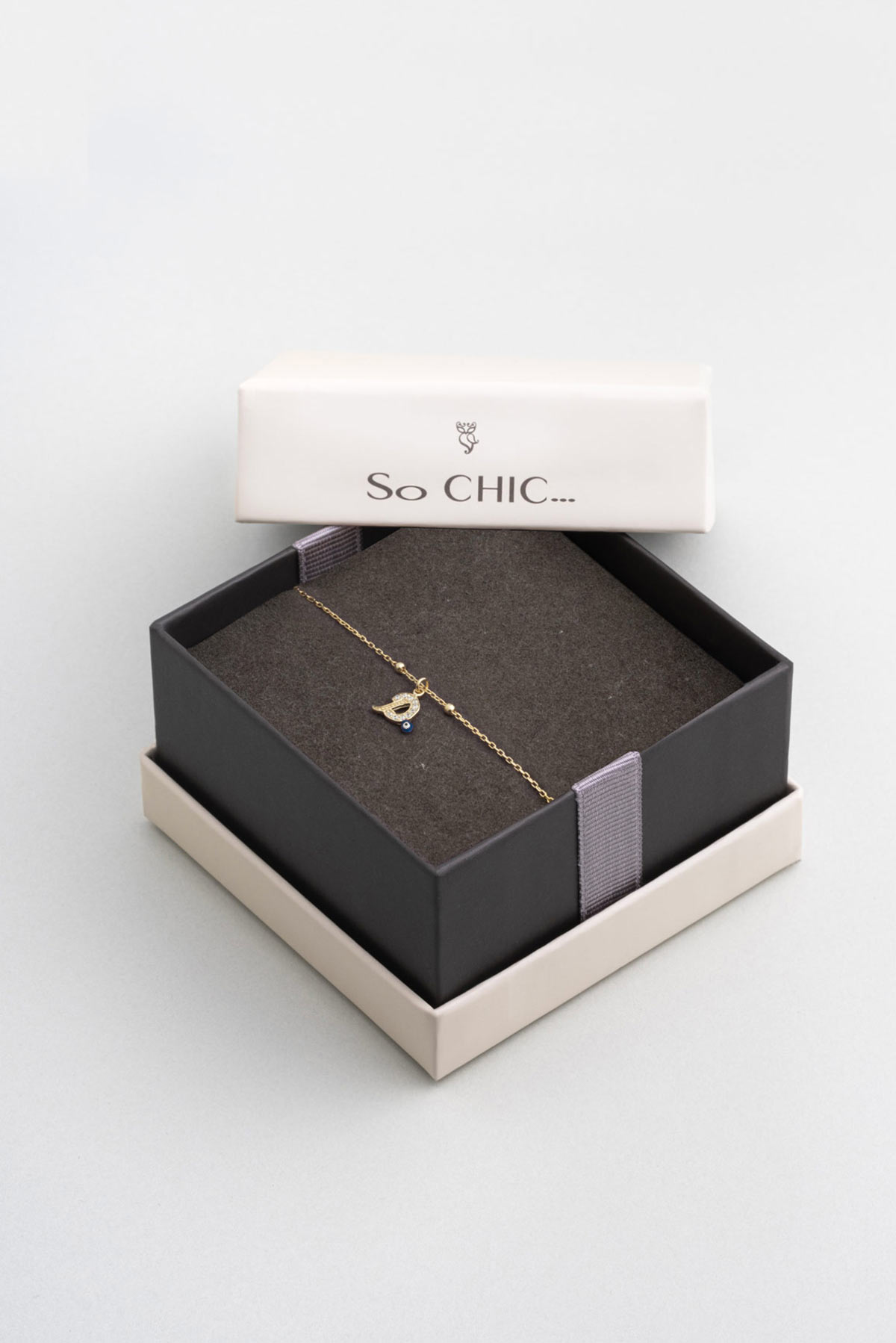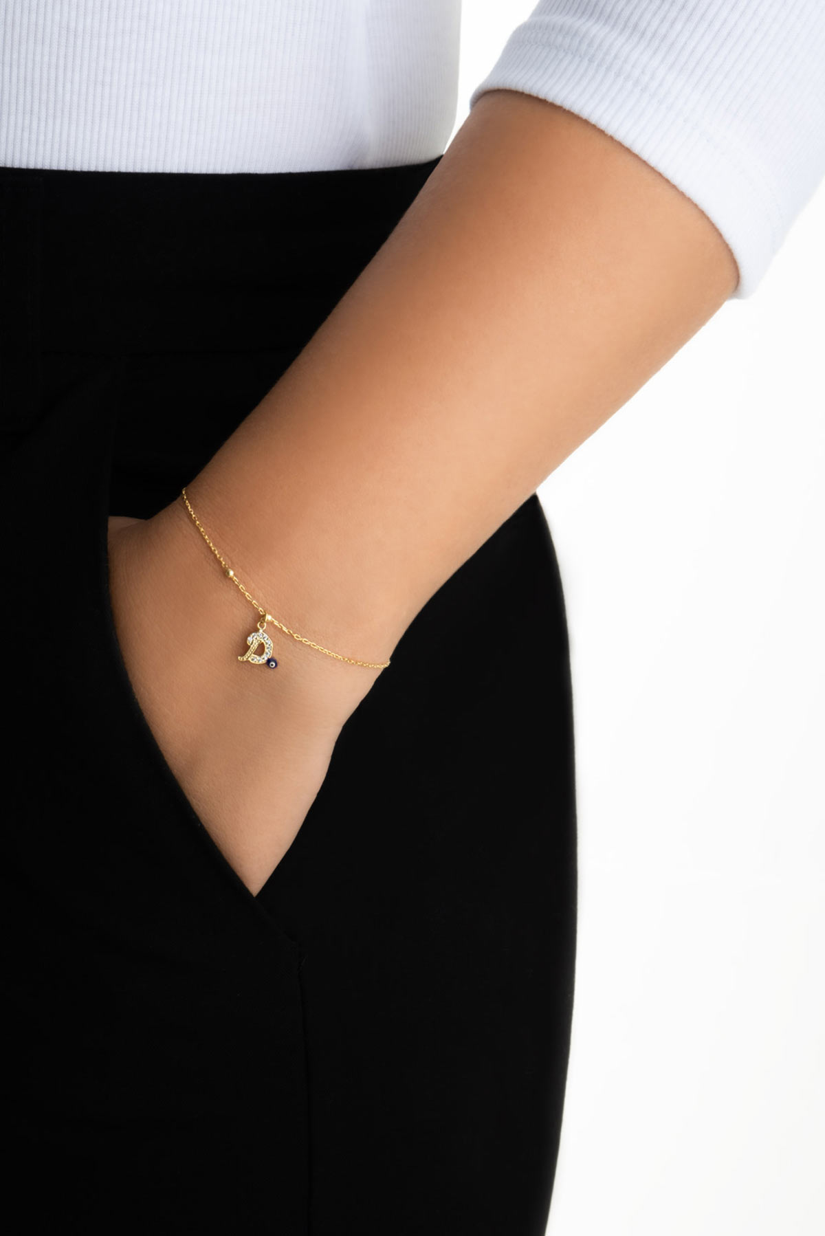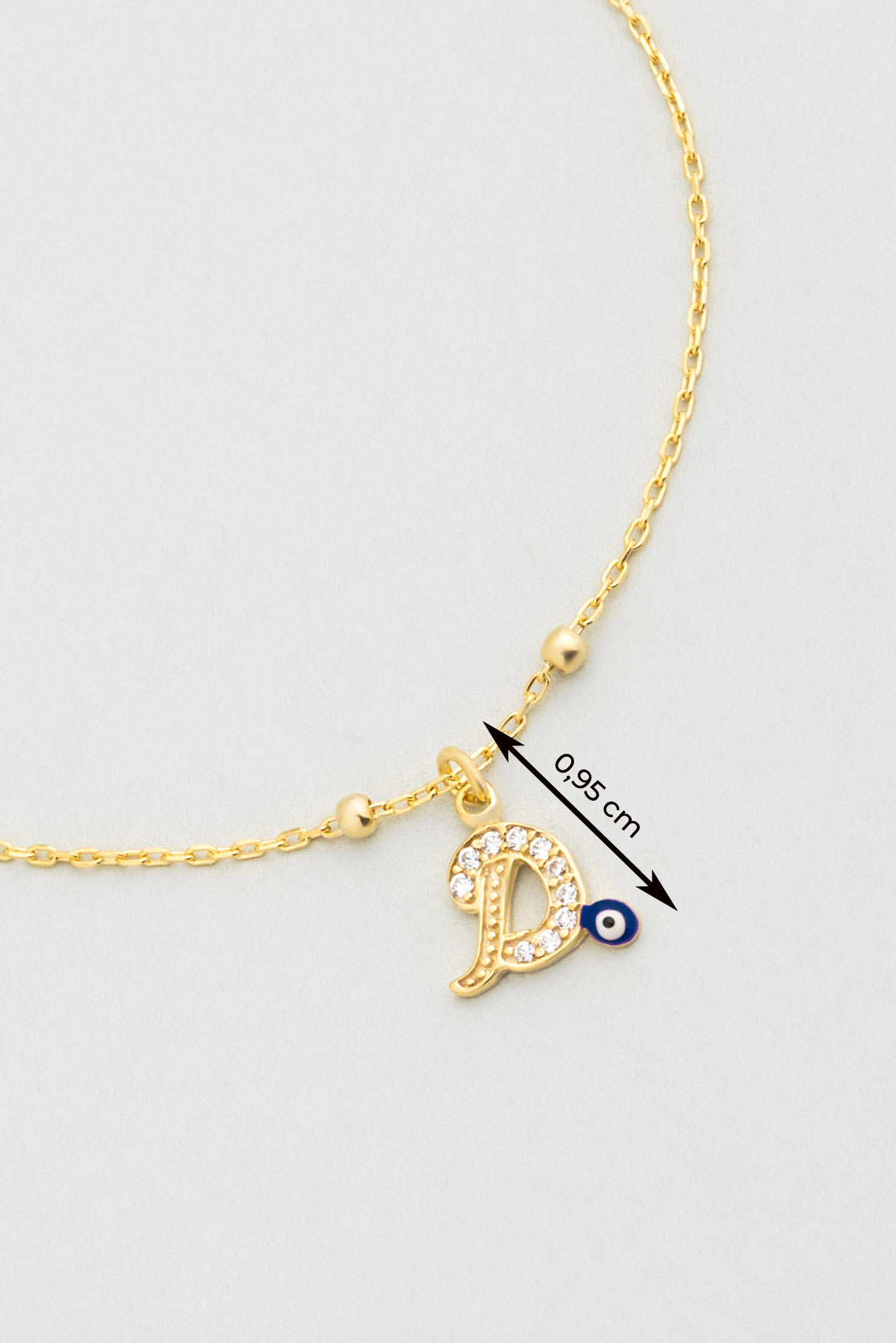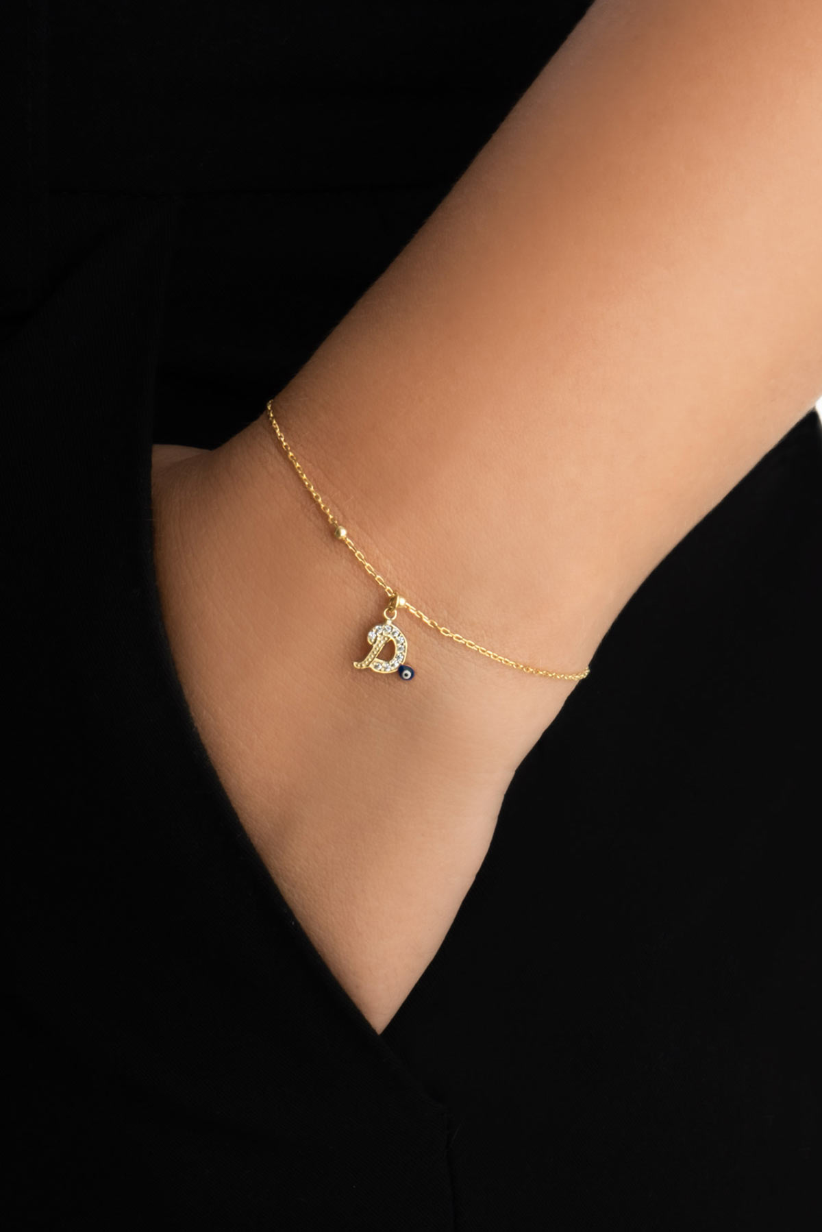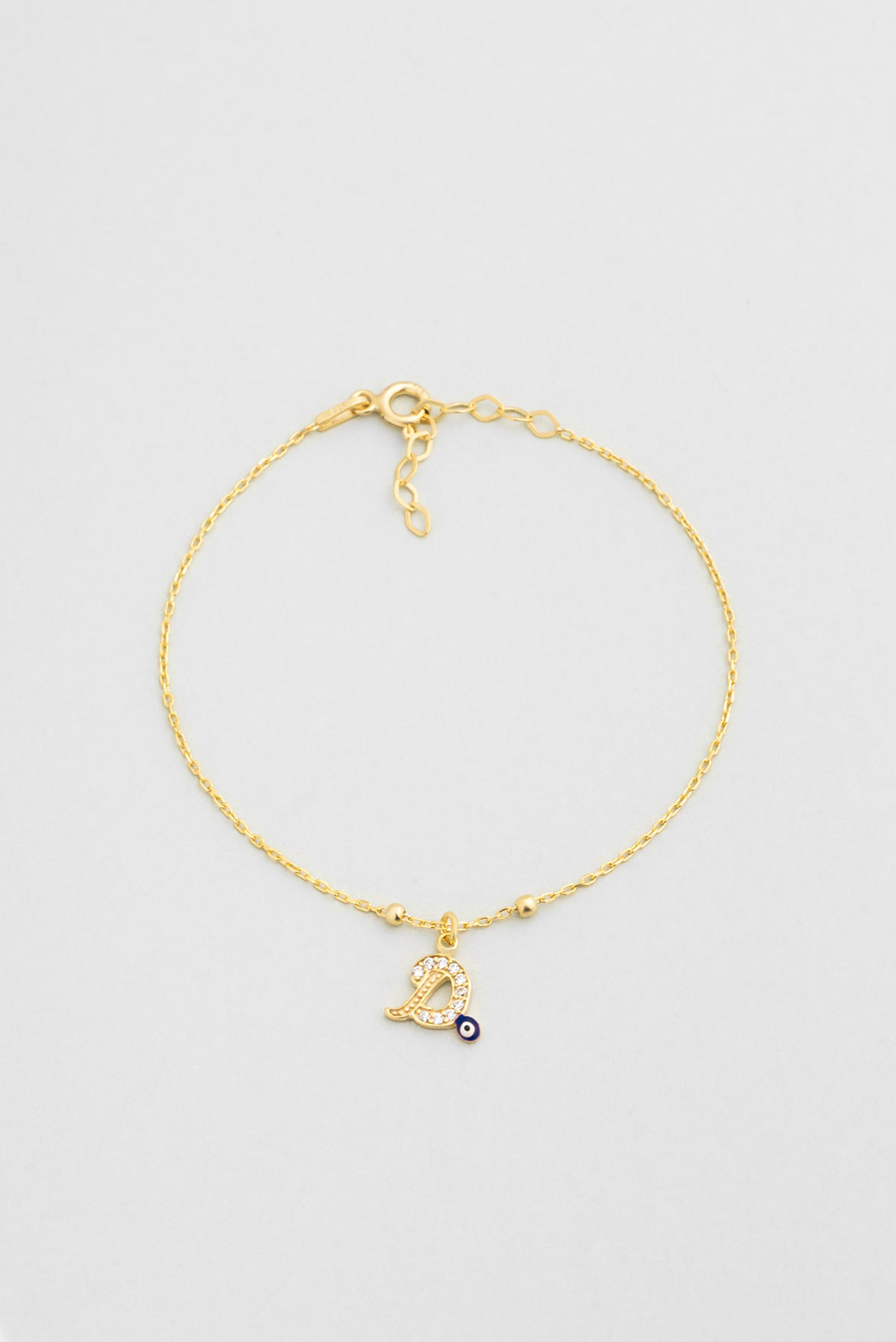 D Harfi 18 Ayar Sarı Altın Kaplama 19 Cm Gümüş Nazar Bileklik
