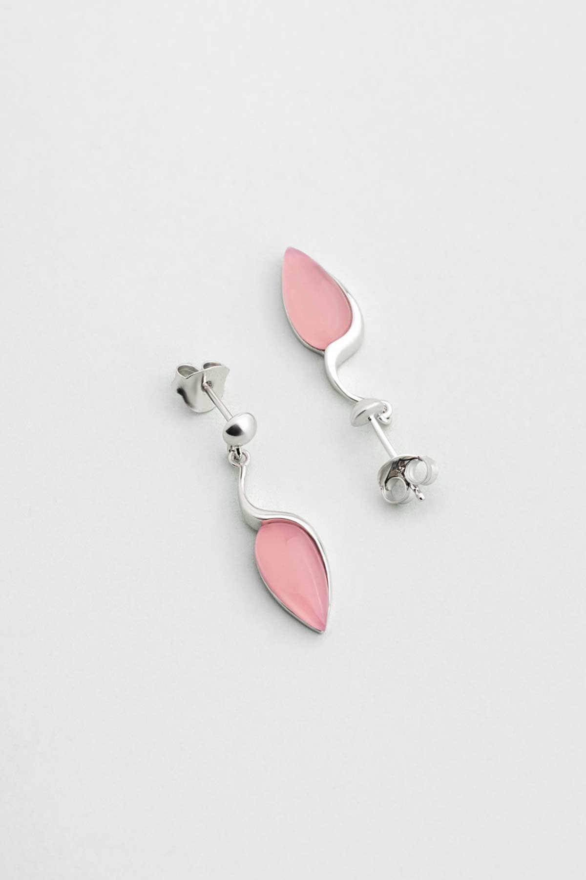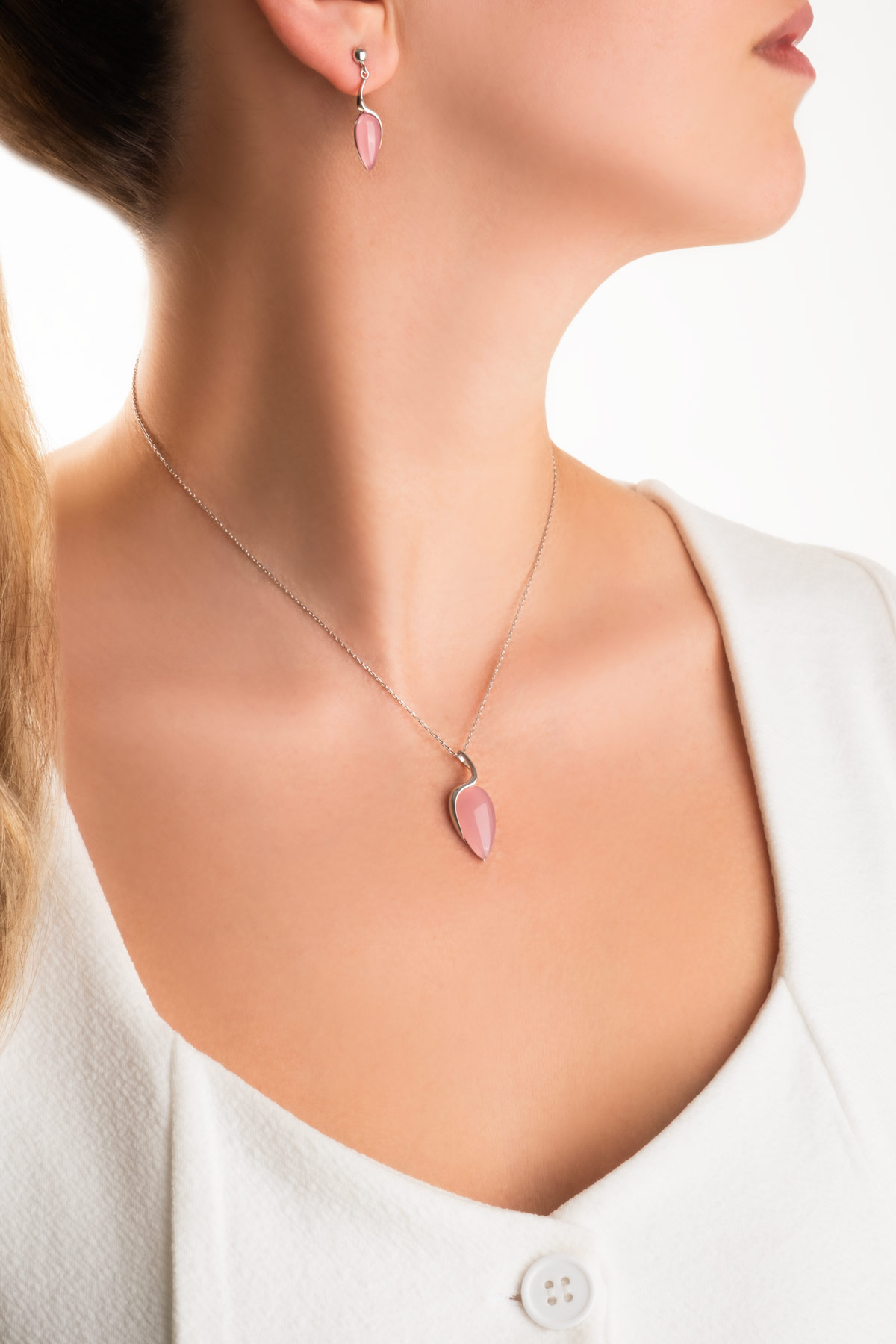 Pembe Kalsedon Taşlı Beyaz Altın Kaplama