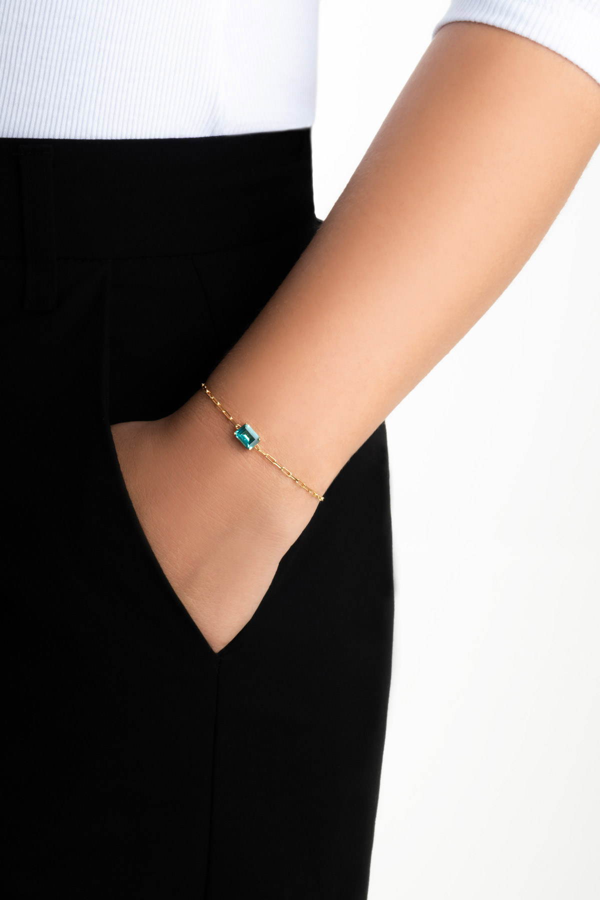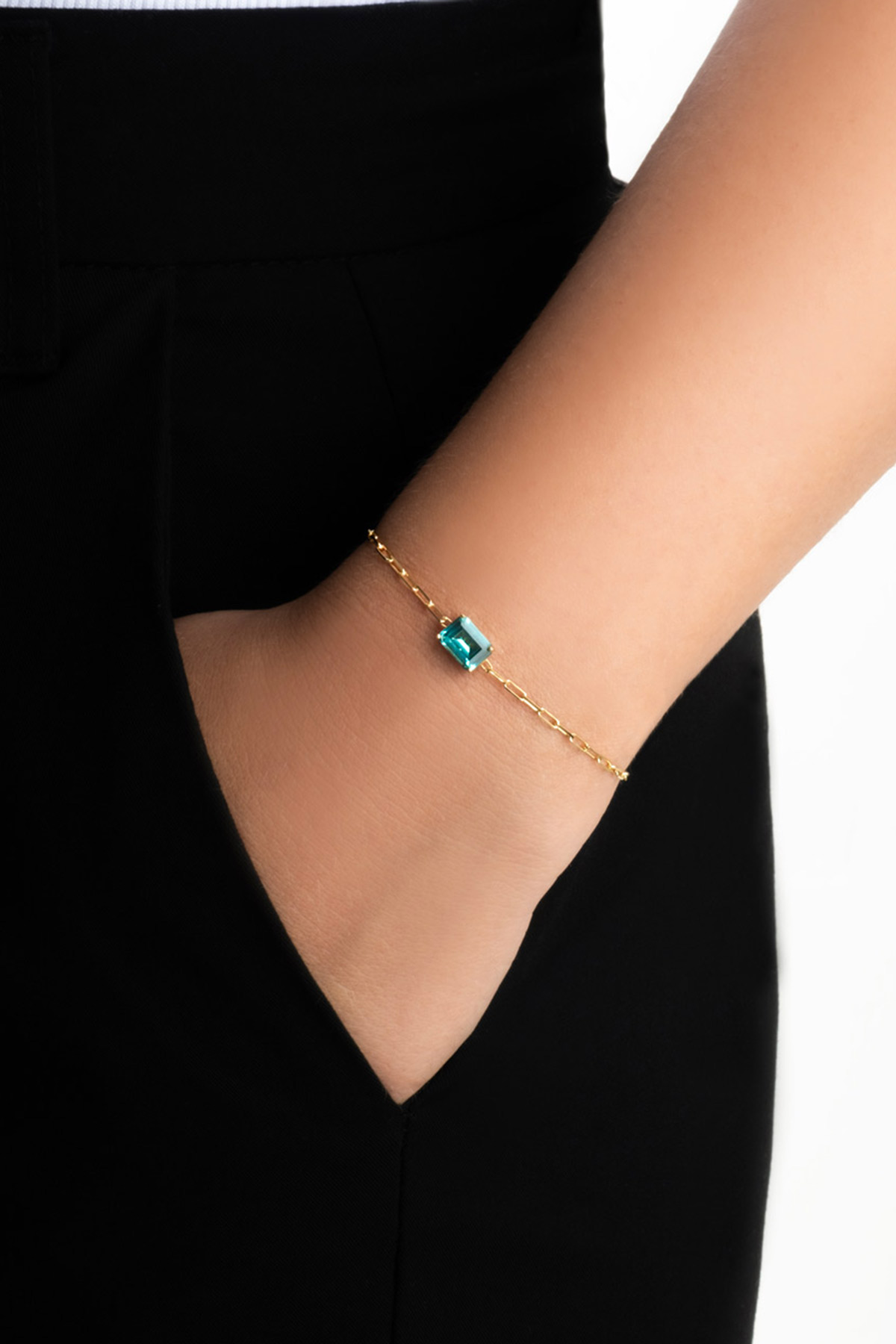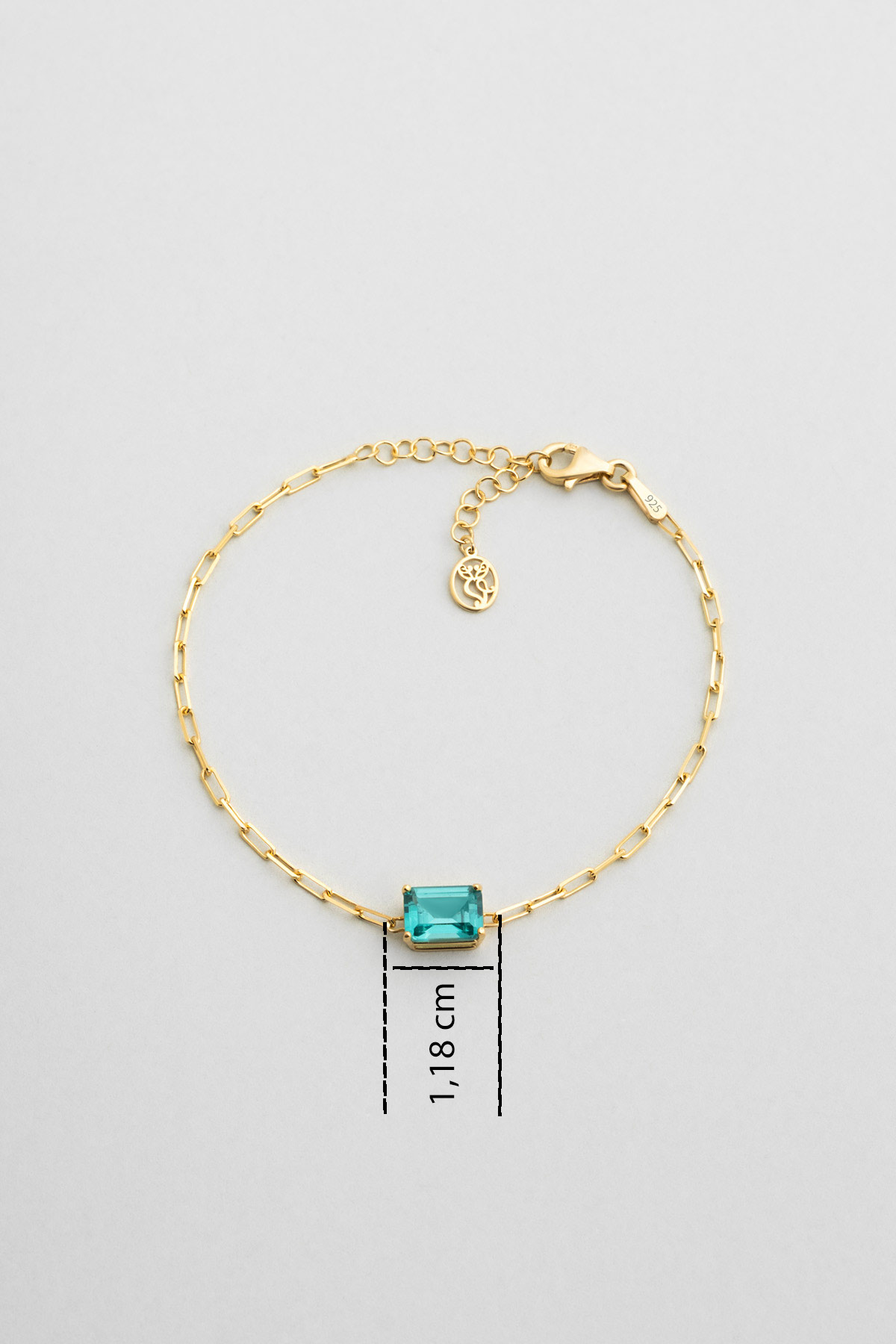Derin Paraiba 18 Ayar Sarı Altın Kaplama 19 Cm Gümüş Baget Bileklik