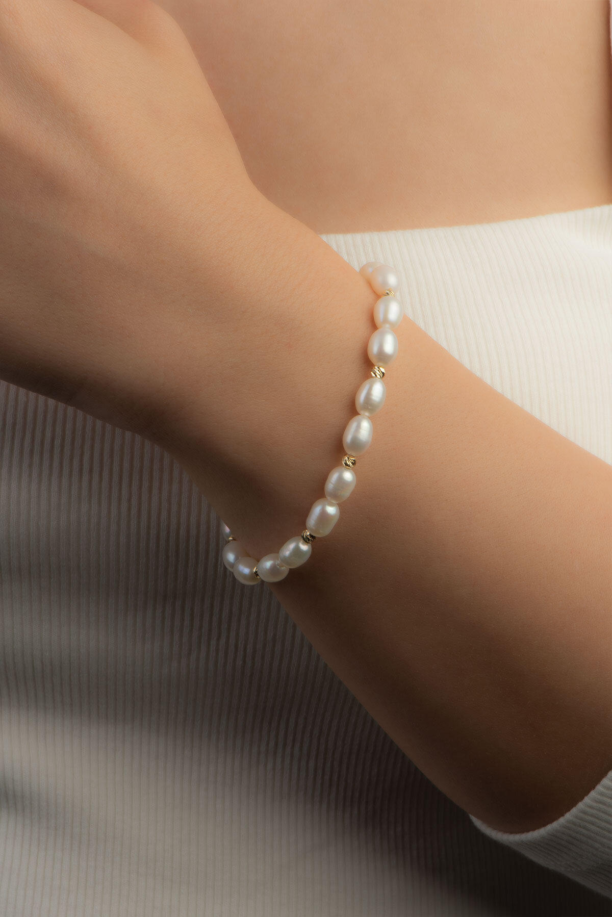 Doğal incinin eşsiz dokusu, altının zarif ışıltısıyla buluşarak zamansız bir şıklık sunuyor. Sade ama etkileyici duruşuyla her ana sofistike bir dokunuş katıyor.