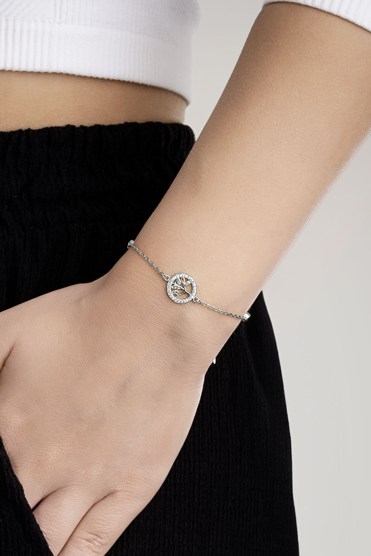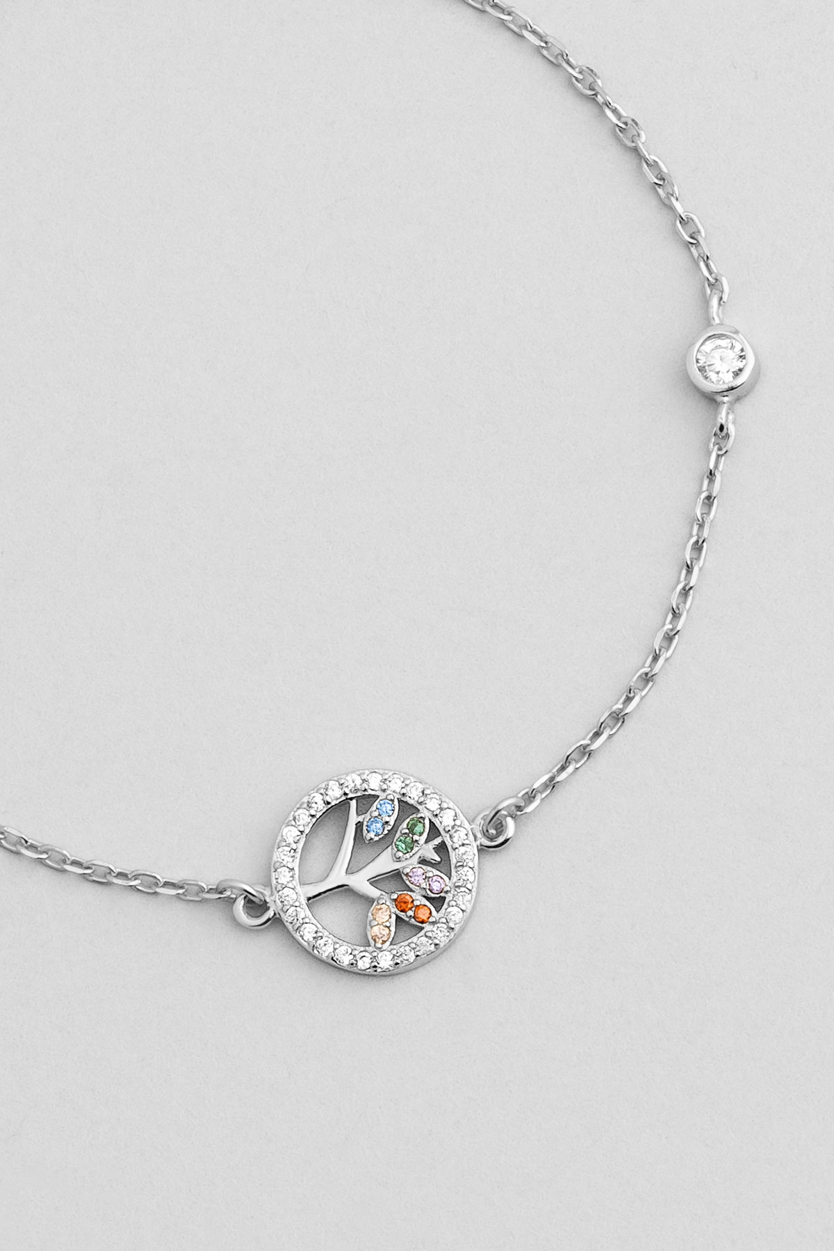 Hayat Ağacı 18 Ayar Beyaz Altın Kaplama 19 Cm Gümüş Minimal Bileklik