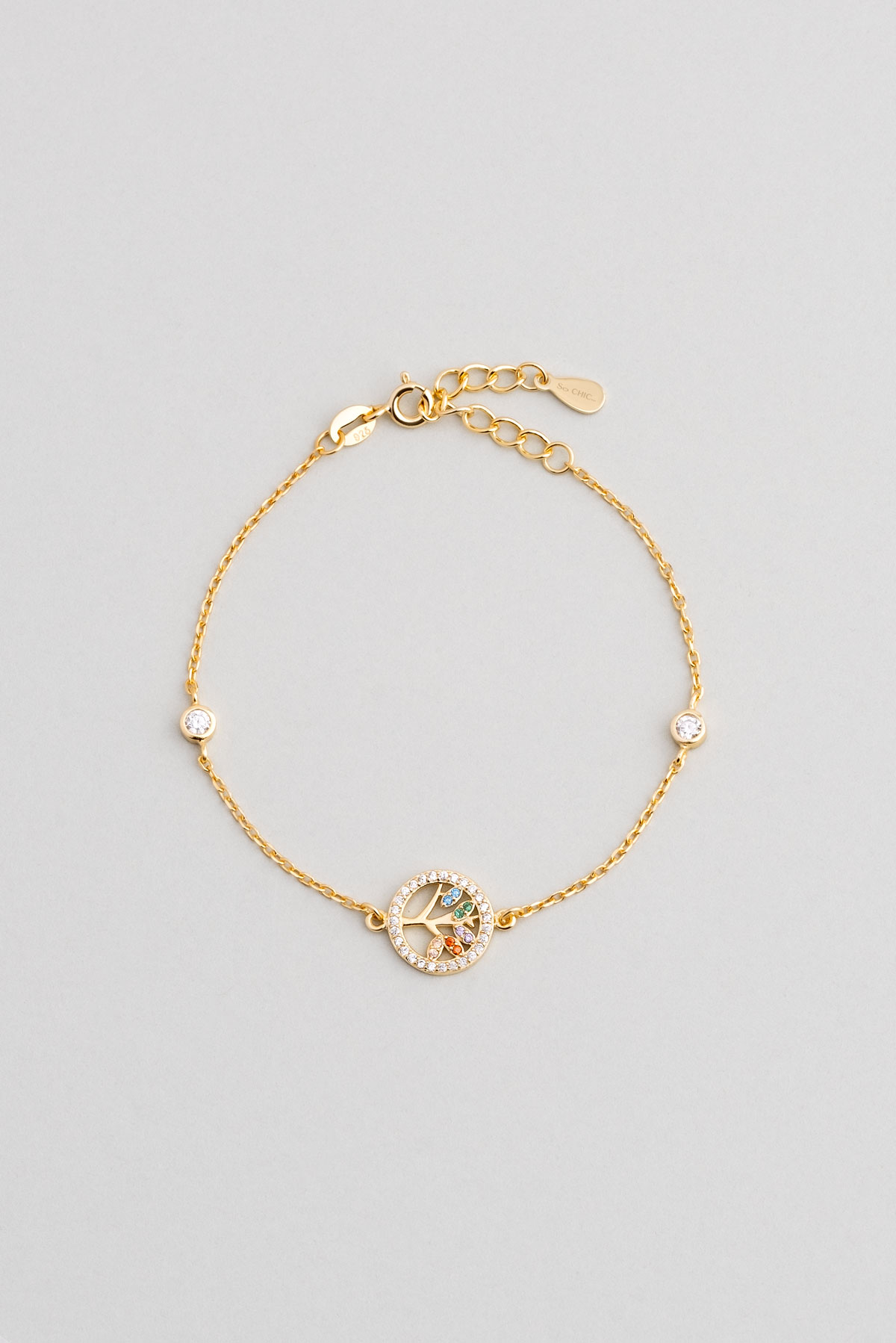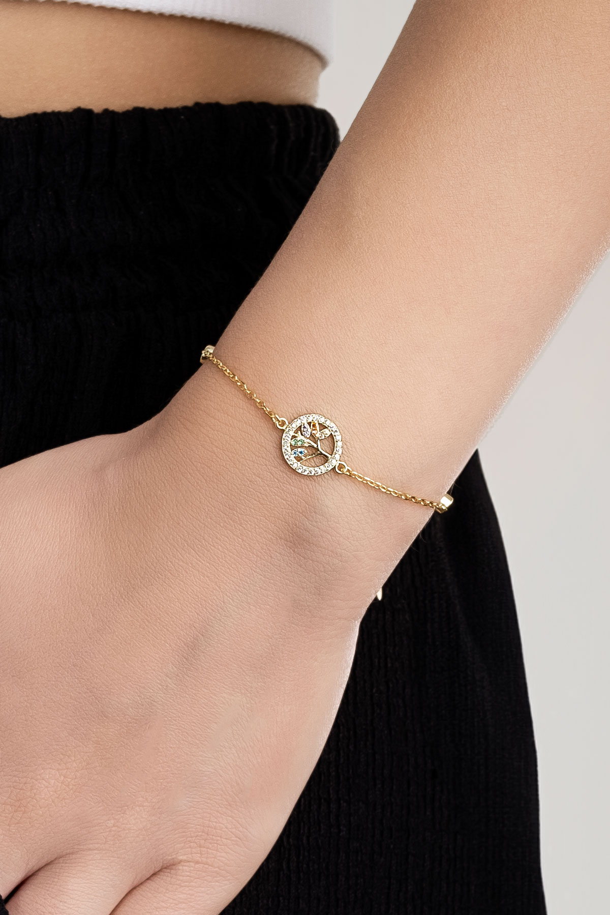 Hayat Ağacı 18 Ayar Sarı Altın Kaplama 19 Cm Gümüş Minimal Bileklik