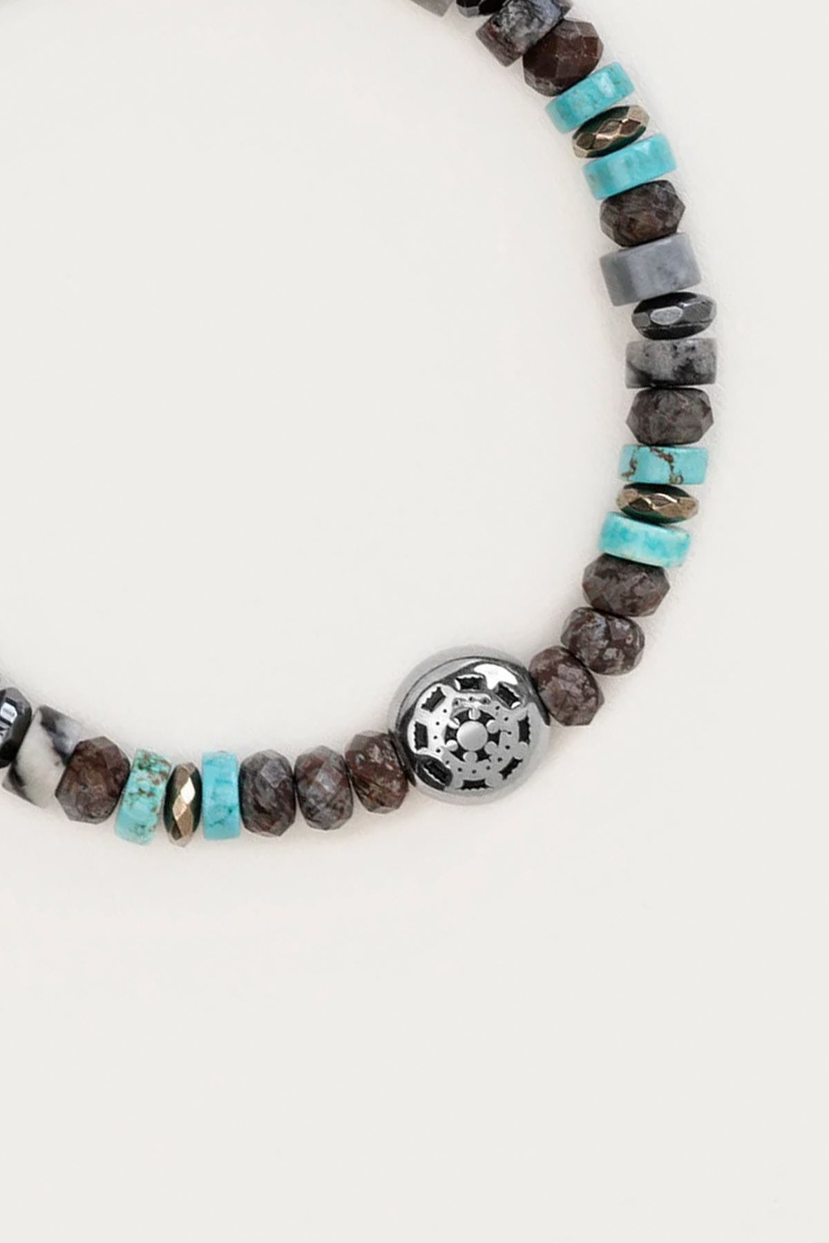 Hematit Ve Kalsedon Taşlı Çelik Erkek Ayarlanabilir Bileklik