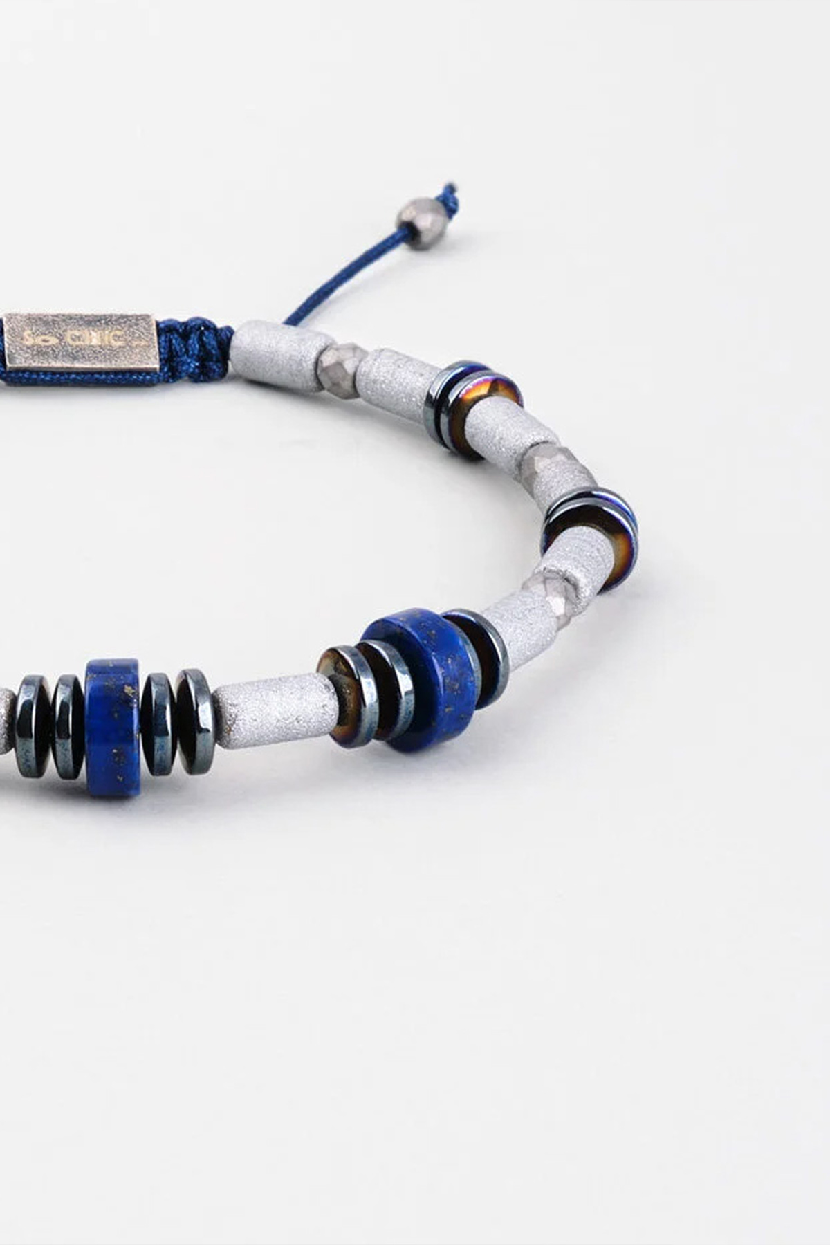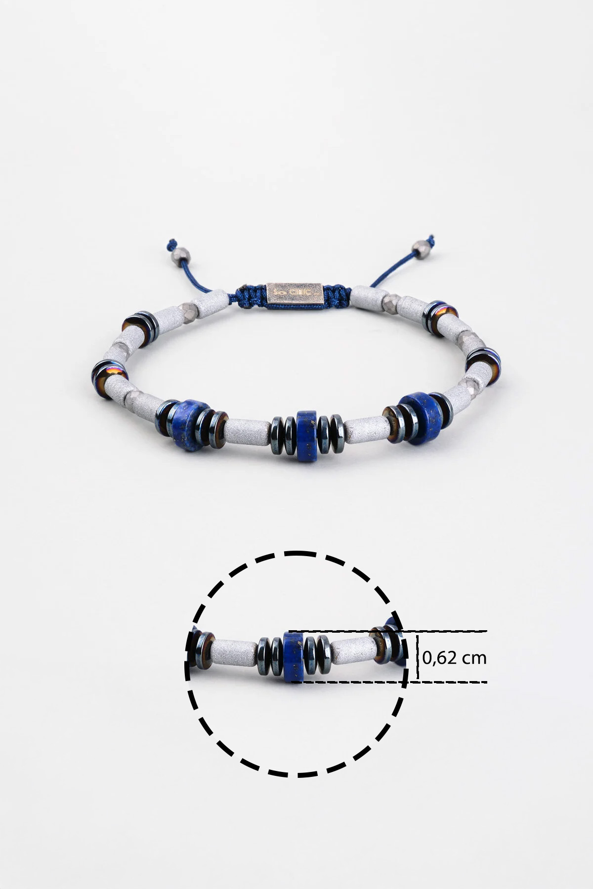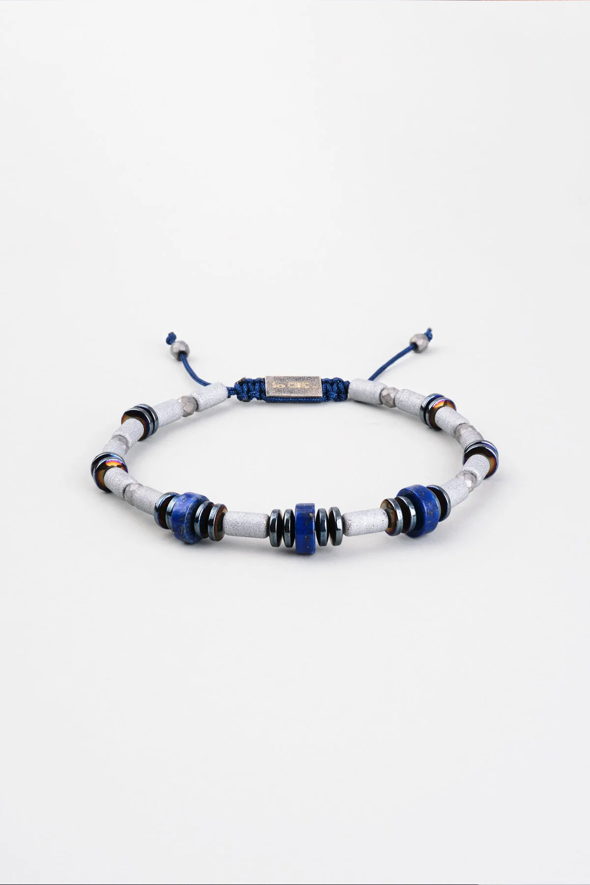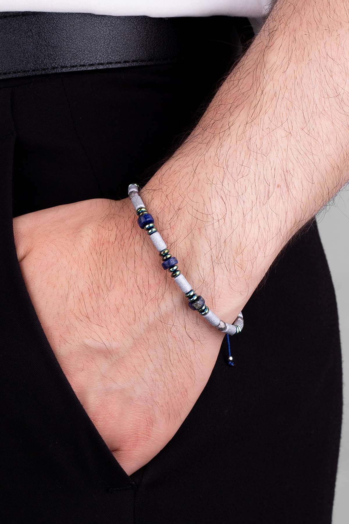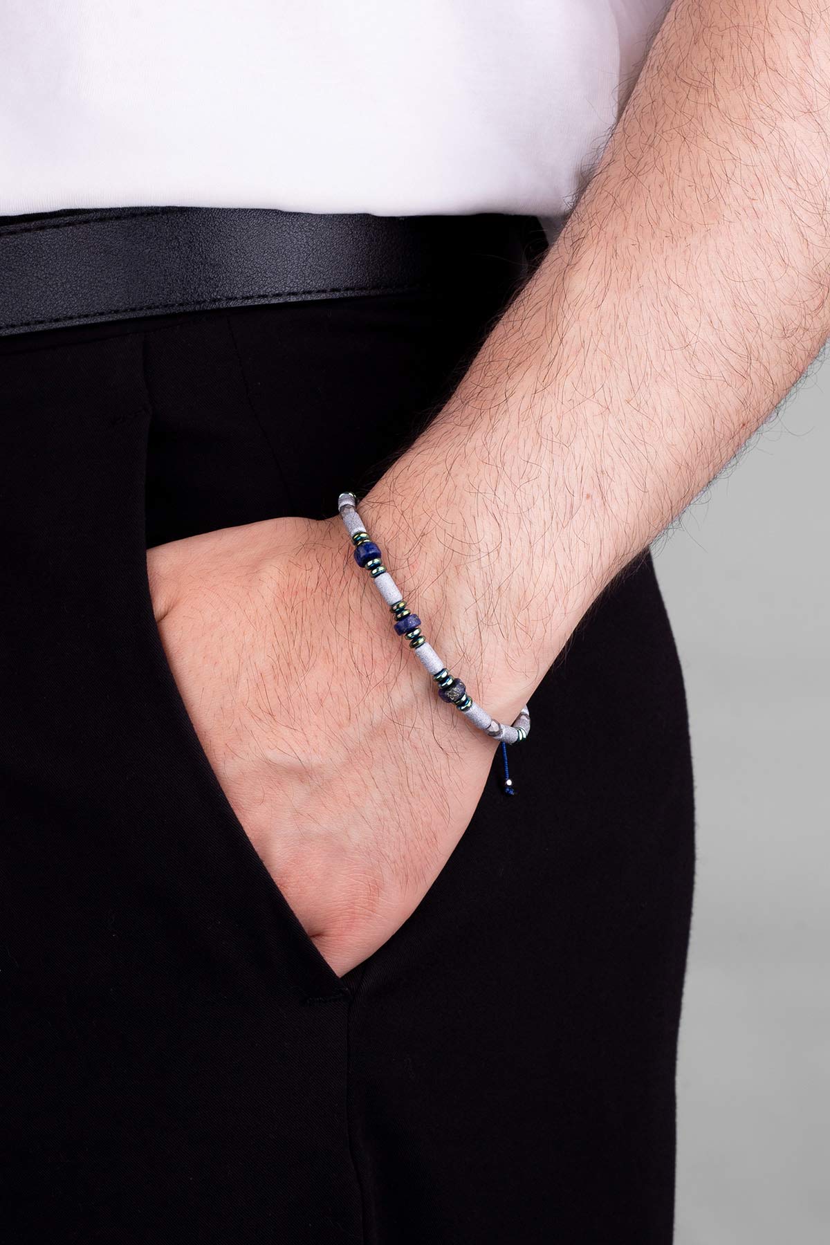 Hematit Ve Lapis Taşlı 18 Ayar Beyaz Altın Kaplama Gümüş Erkek Bileklik