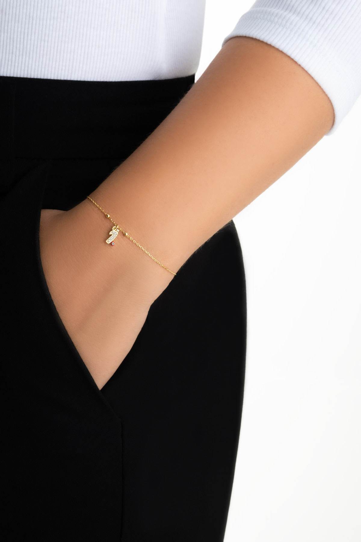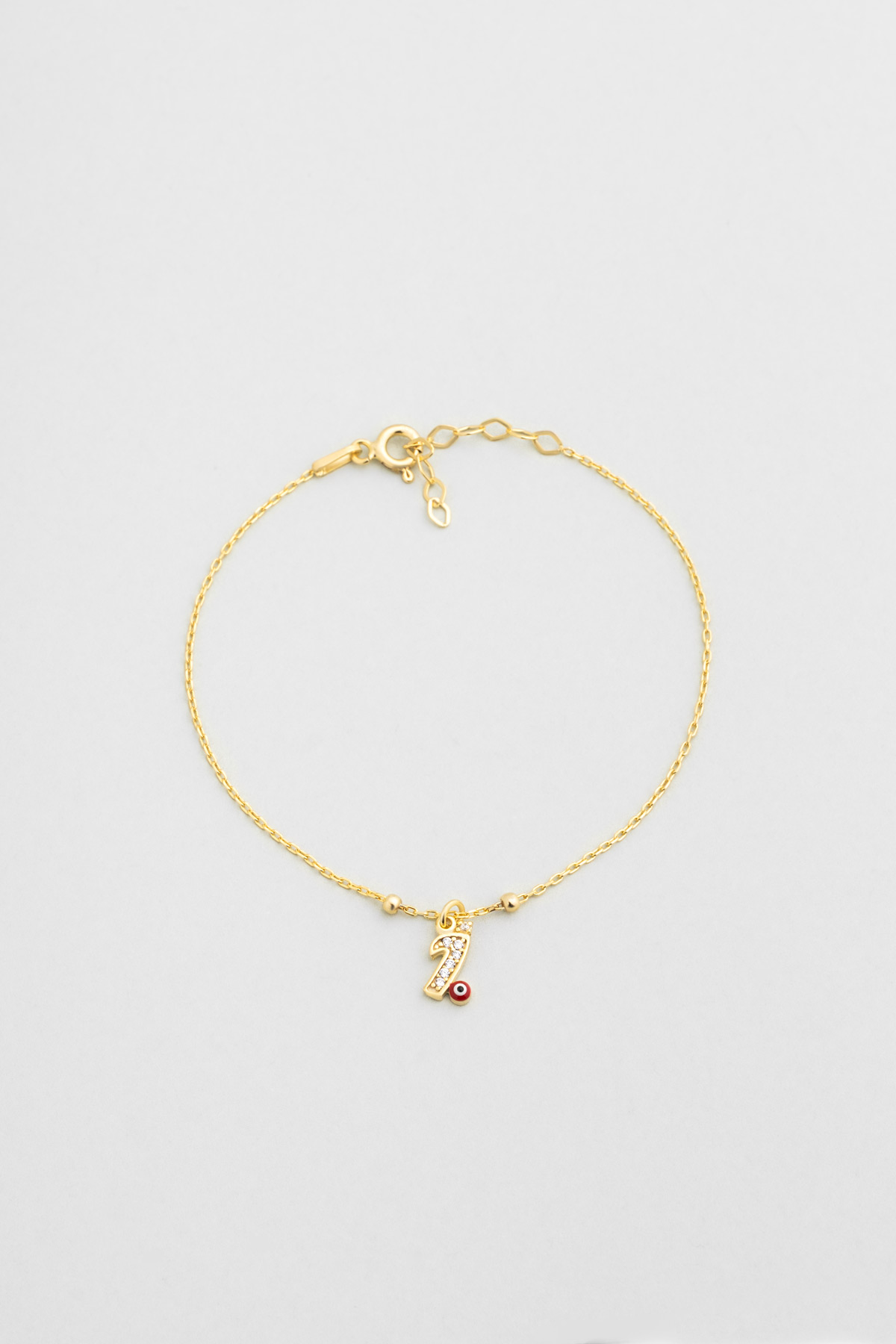 I Harfi 18 Ayar Sarı Altın Kaplama 19 Cm Gümüş Nazar Bileklik