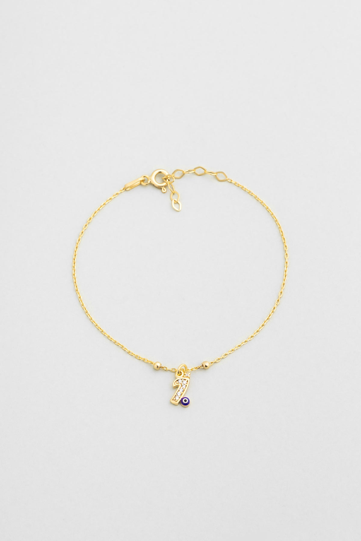 I Harfi 18 Ayar Sarı Altın Kaplama 19 Cm Gümüş Nazar Bileklik