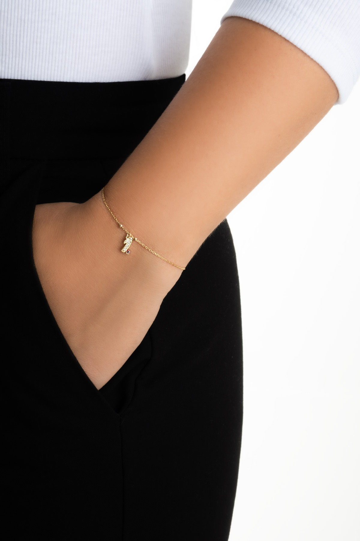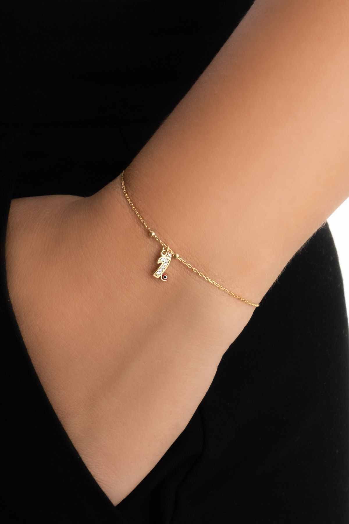 İ Harfi 18 Ayar Sarı Altın Kaplama 19 Cm Gümüş Nazar Bileklik
