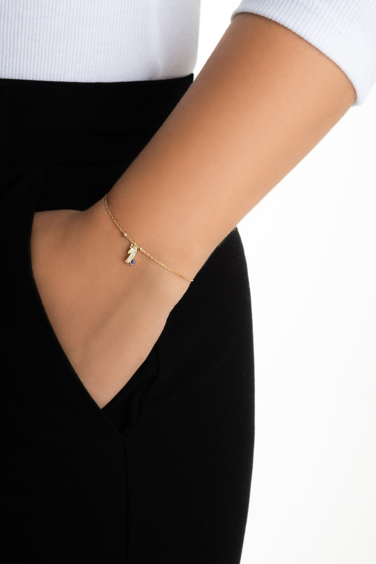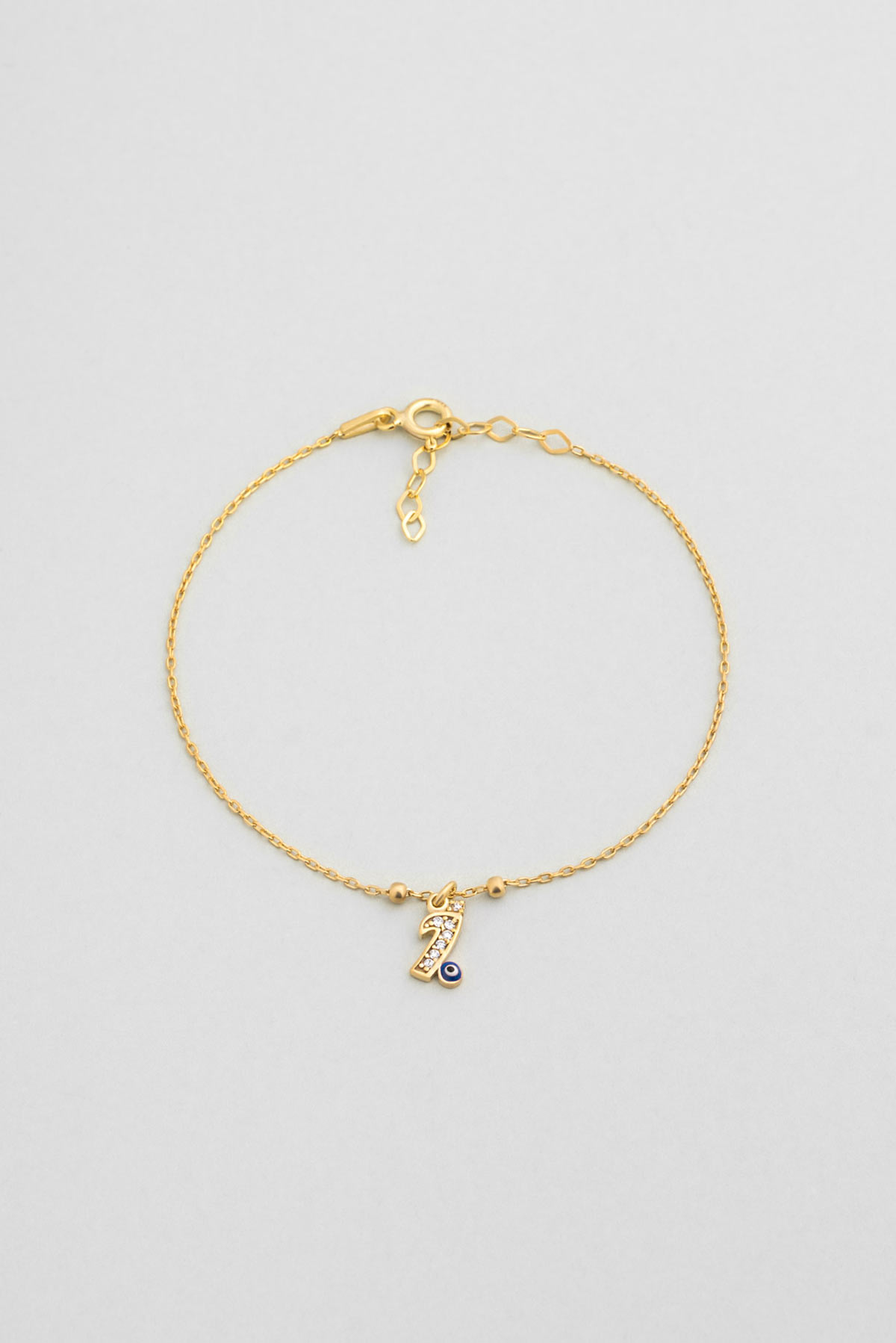 İ Harfi 18 Ayar Sarı Altın Kaplama 19 Cm Gümüş Nazar Bileklik