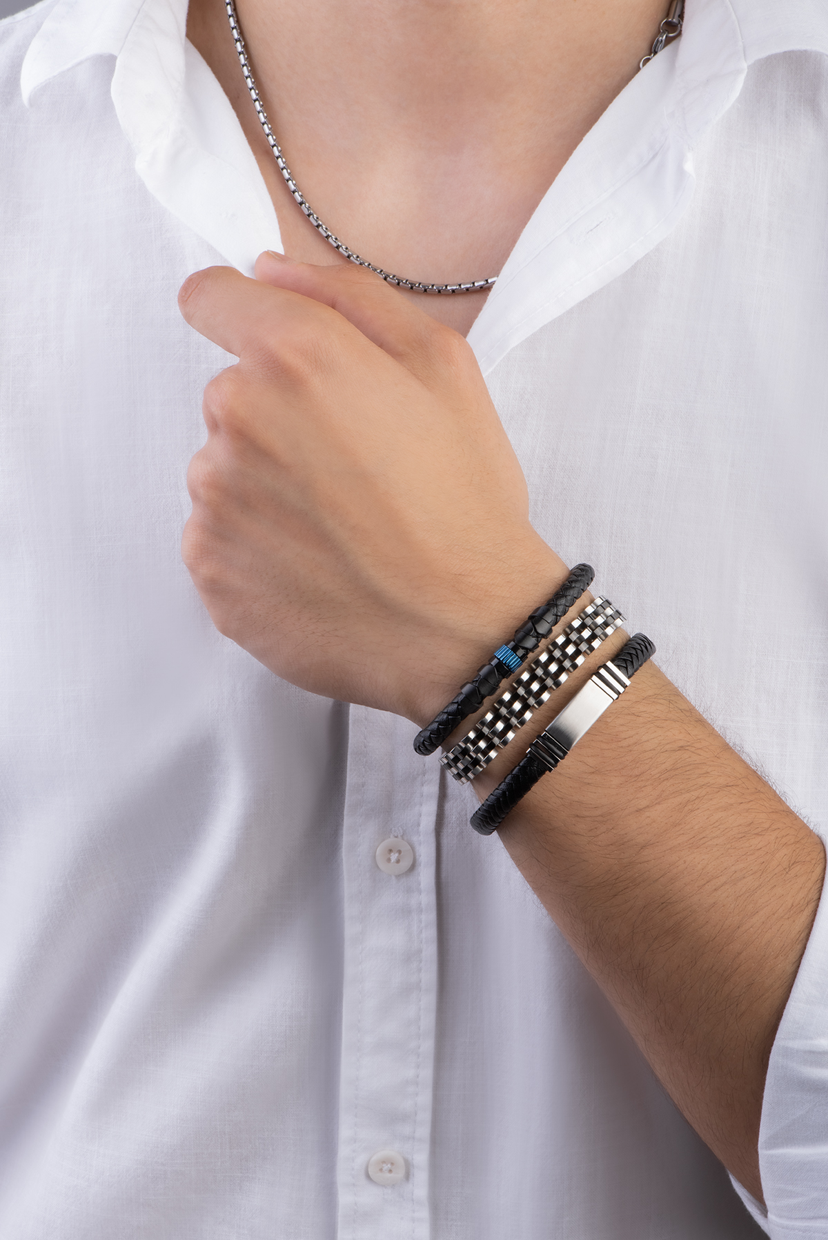 İki Renkli Erkek Çelik Zincir Bileklik