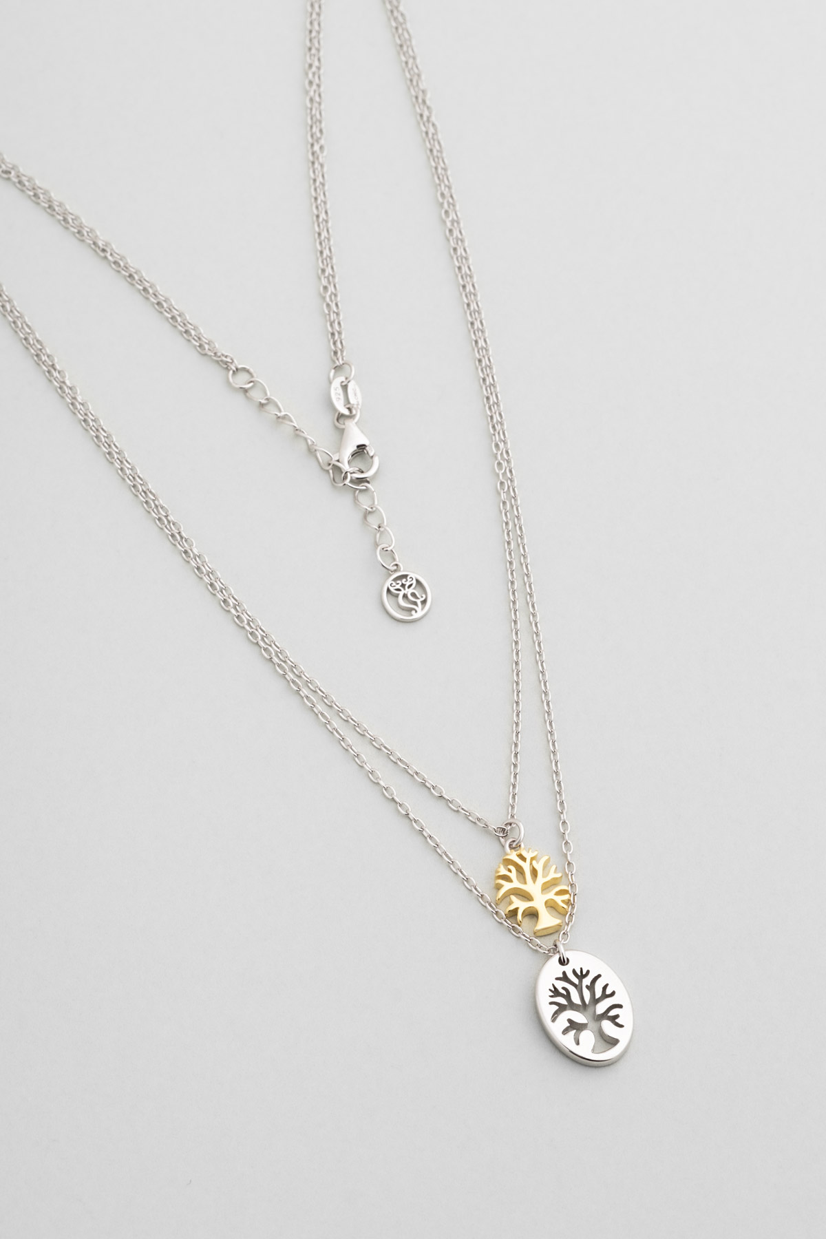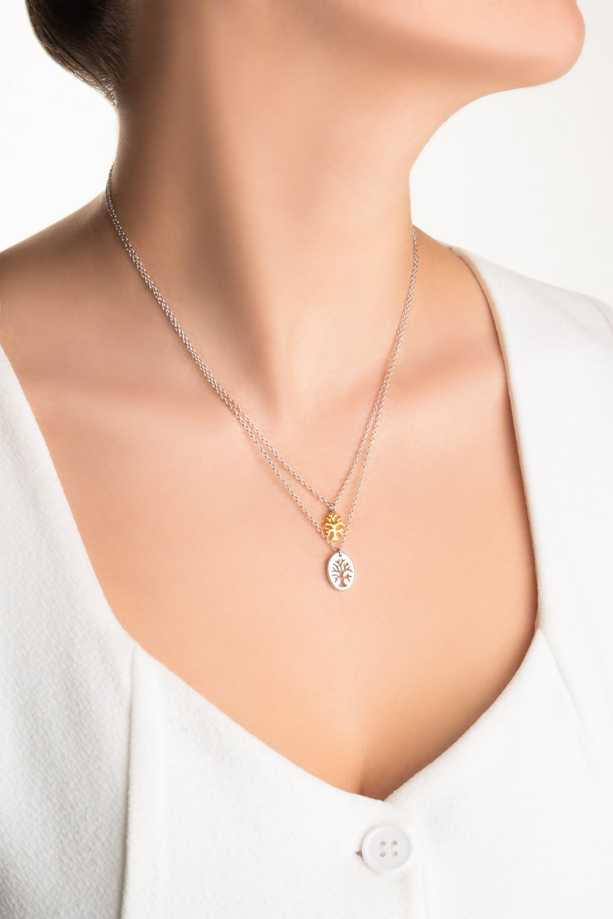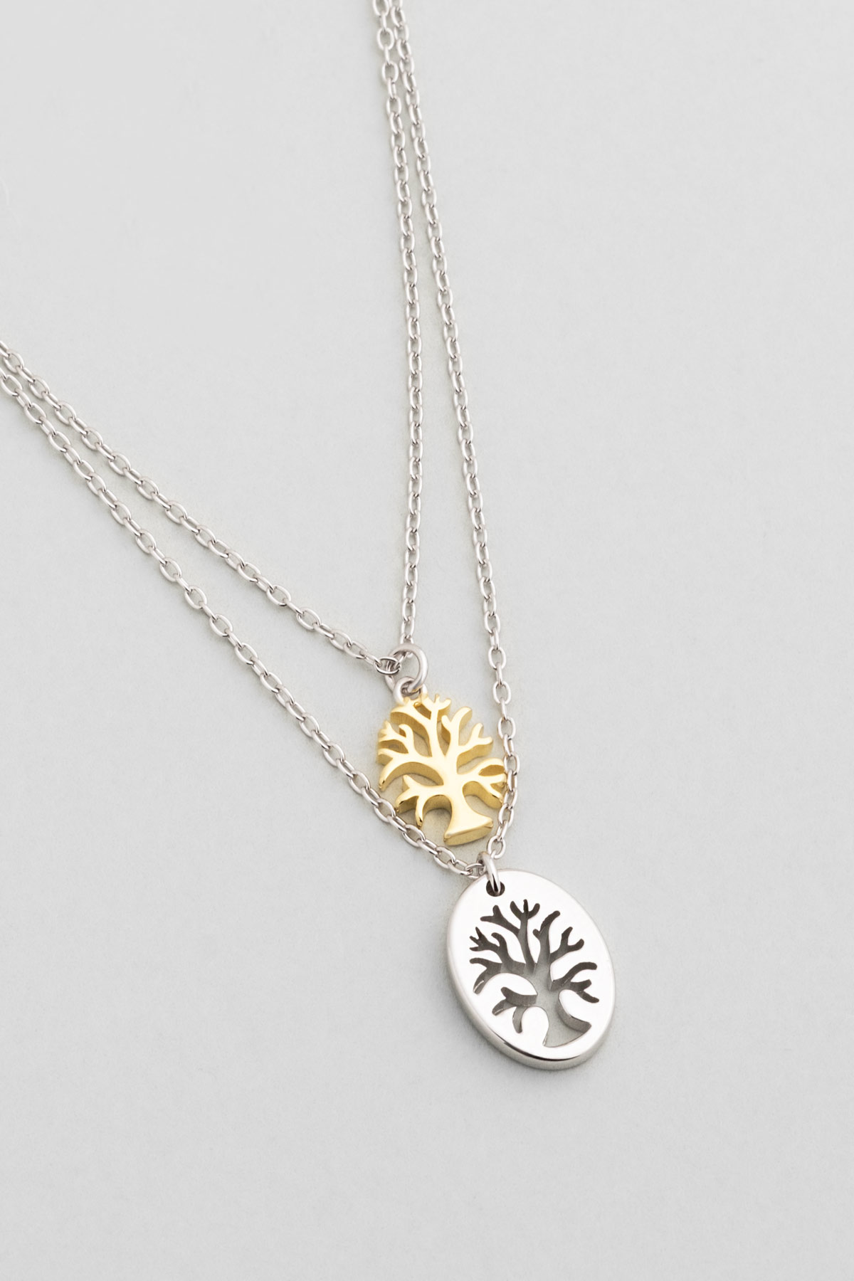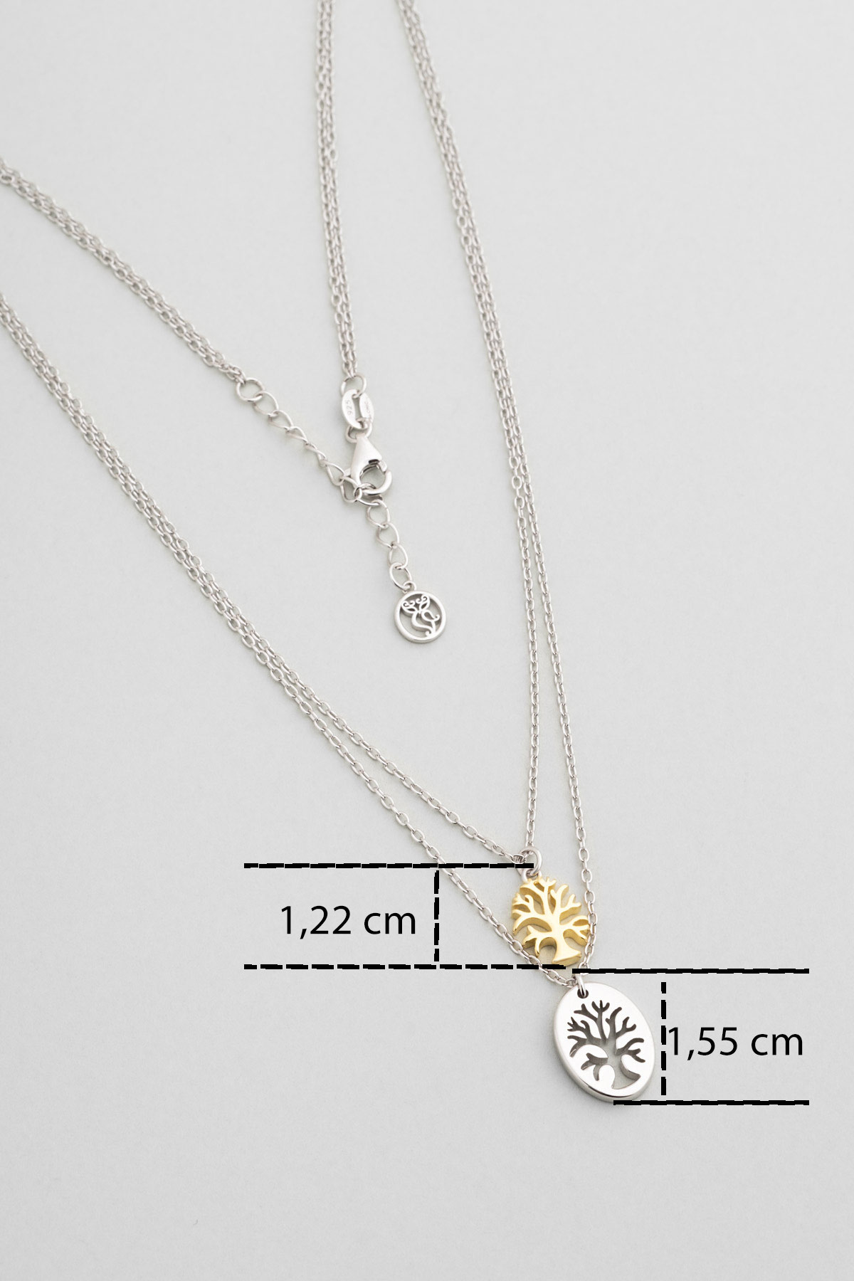 İki Renkli Hayat Ağacı 18 Ayar Sarı Ve Beyaz Altın Kaplama 45 Cm Gümüş Kolye
