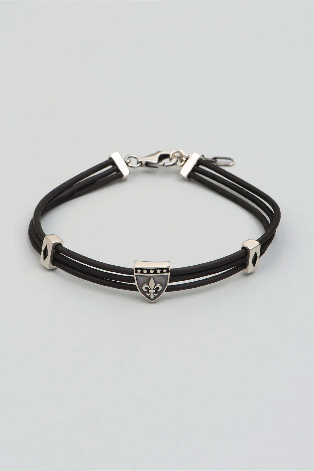 İriş Çiçeği Figürlü Siyah Vegan Deri 20 Cm Gümüş Erkek Bileklik