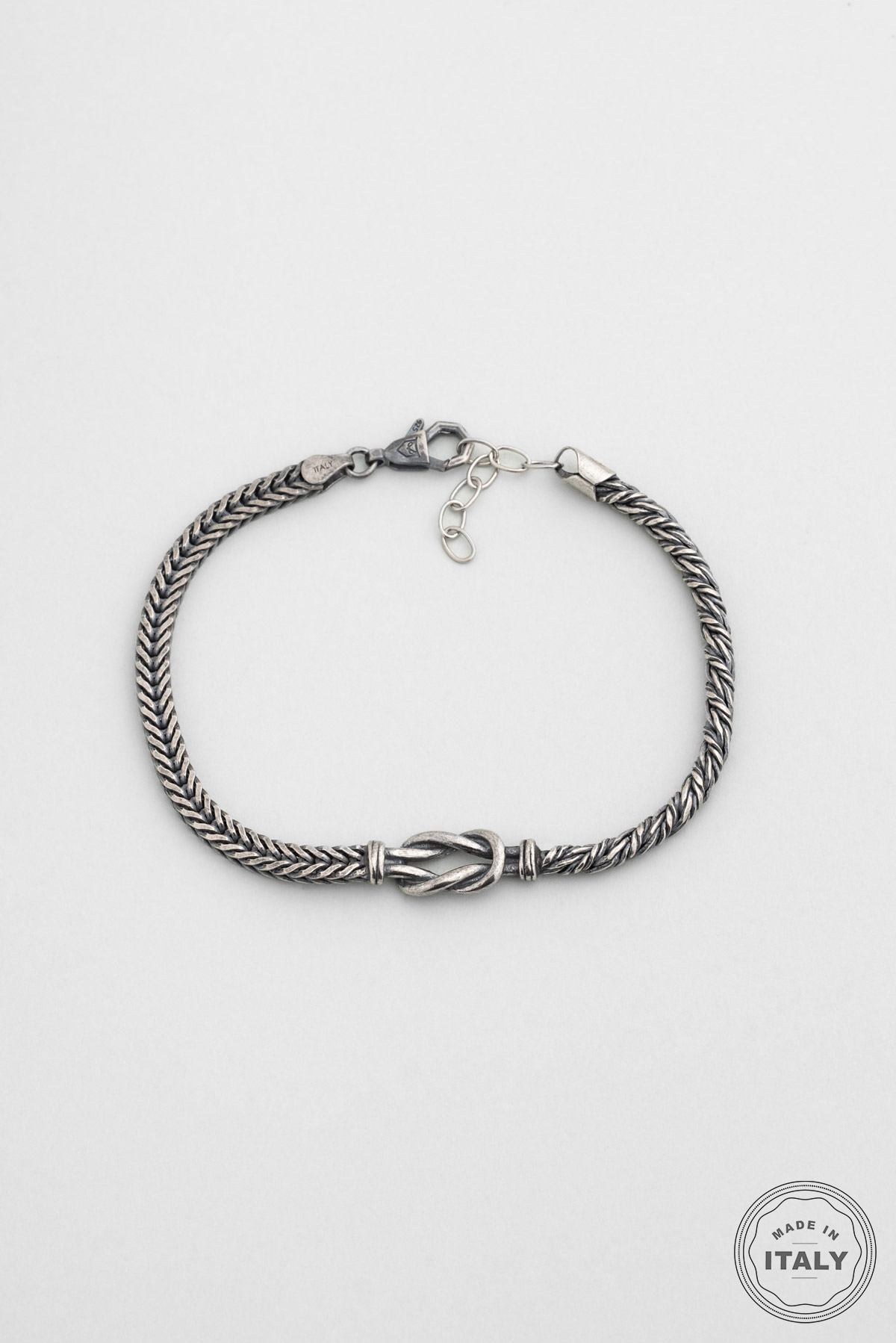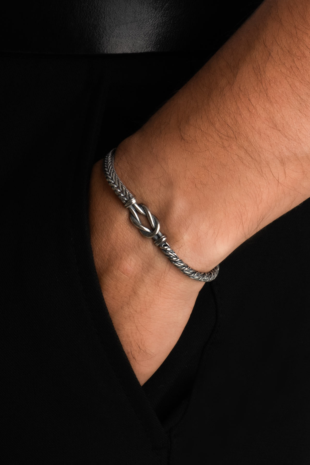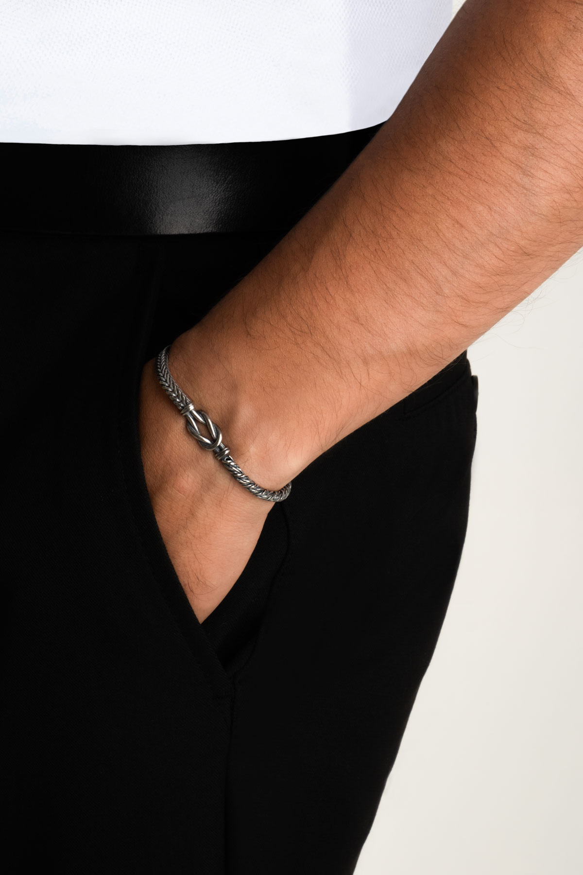 İtalyan Düğüm Detaylı Örgü Model 23 Cm Gümüş Erkek Bileklik