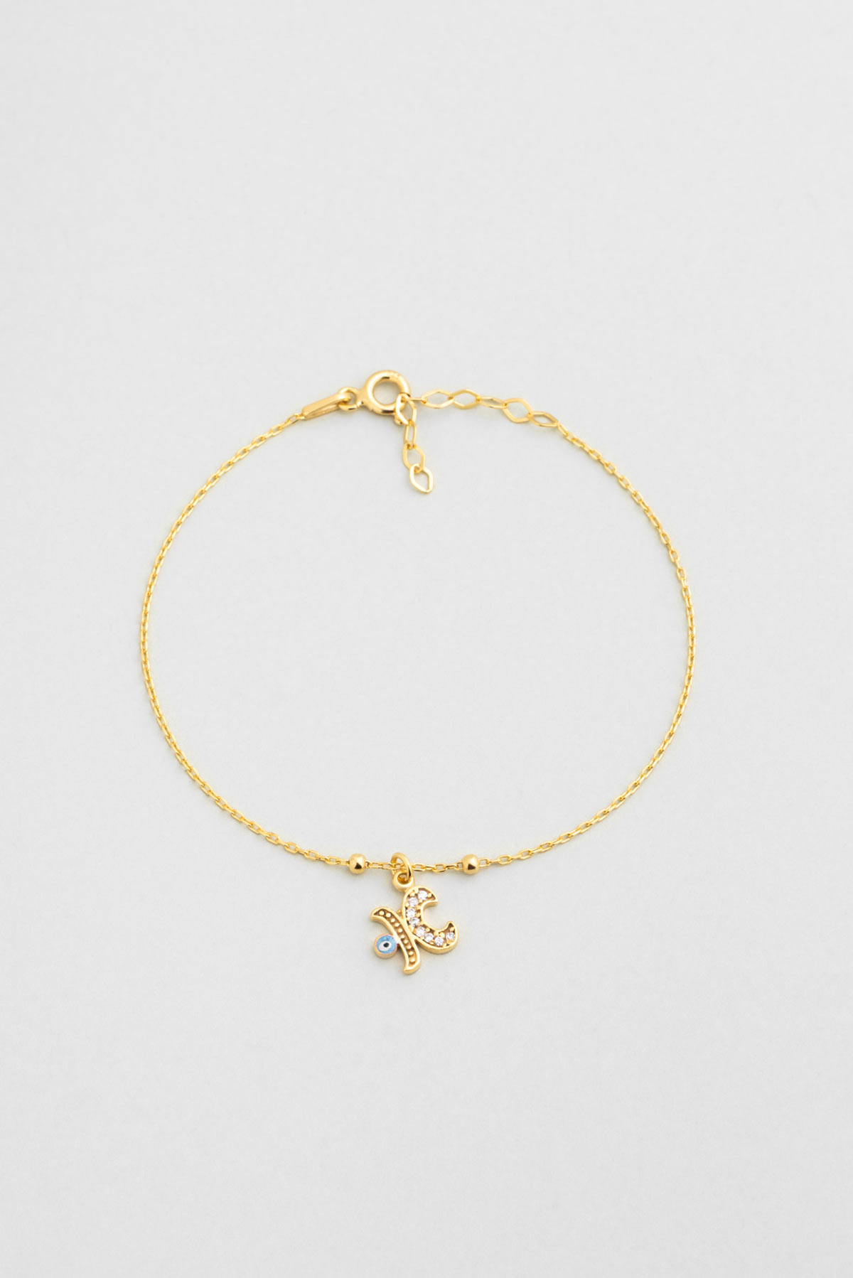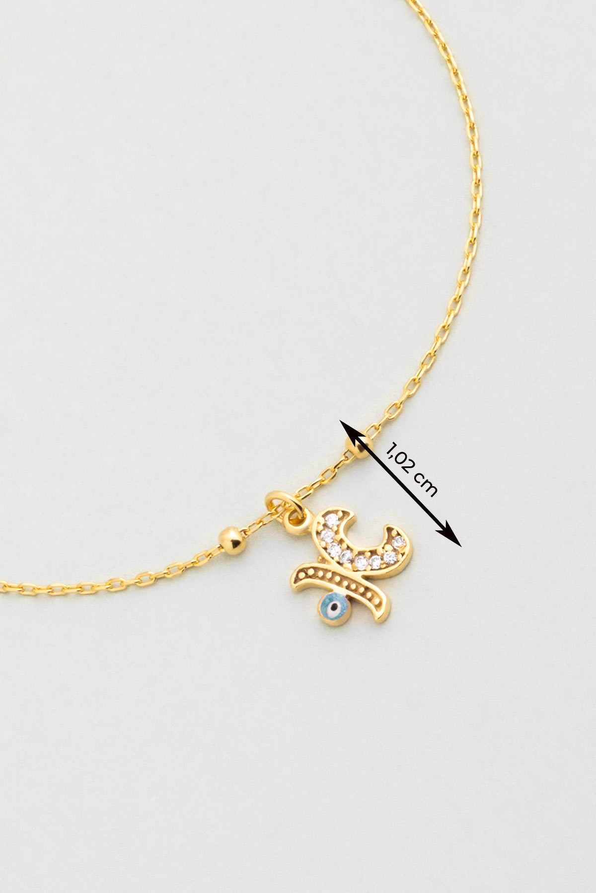 K Harfi 18 Ayar Sarı Altın Kaplama 19 Cm Gümüş Nazar Bileklik