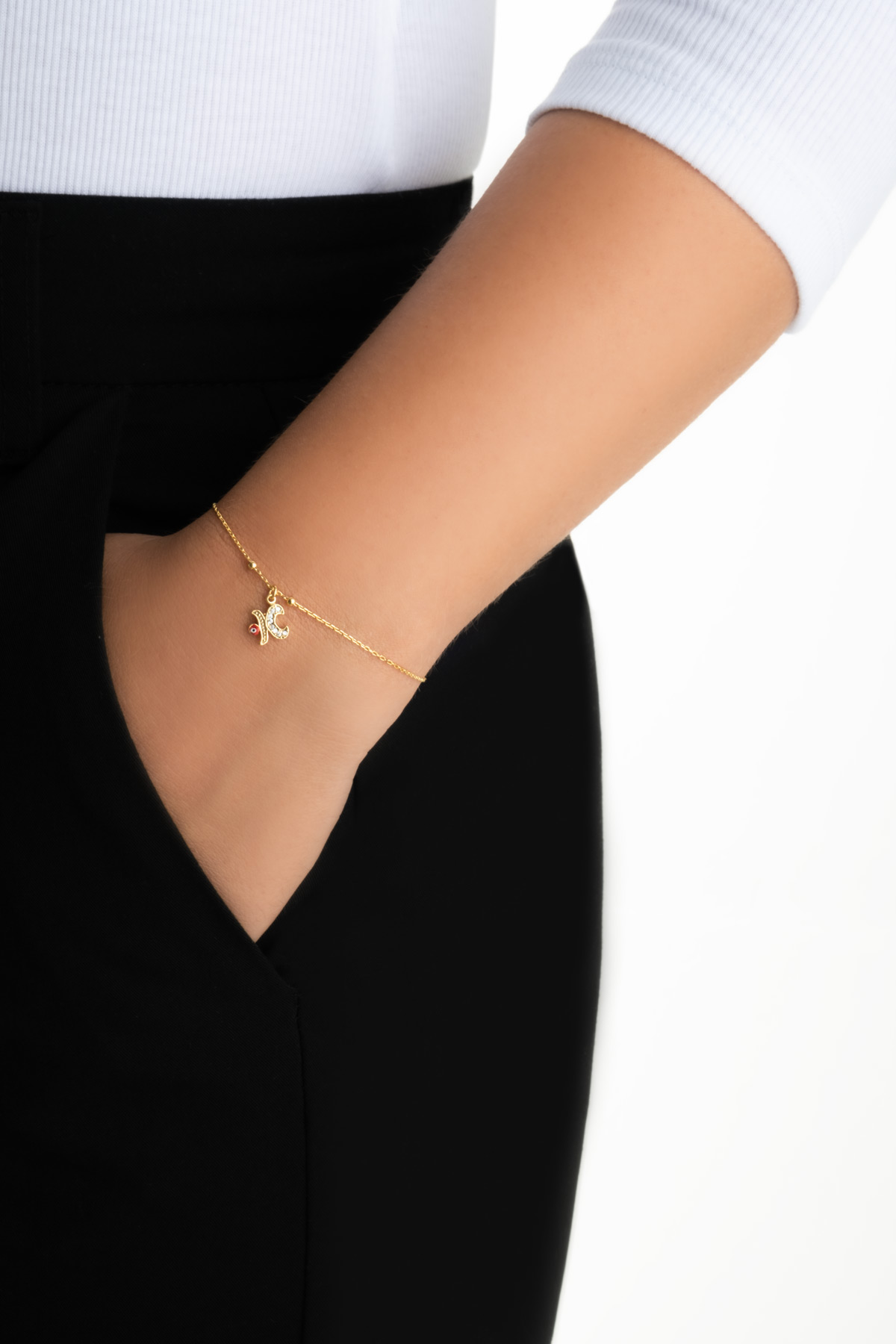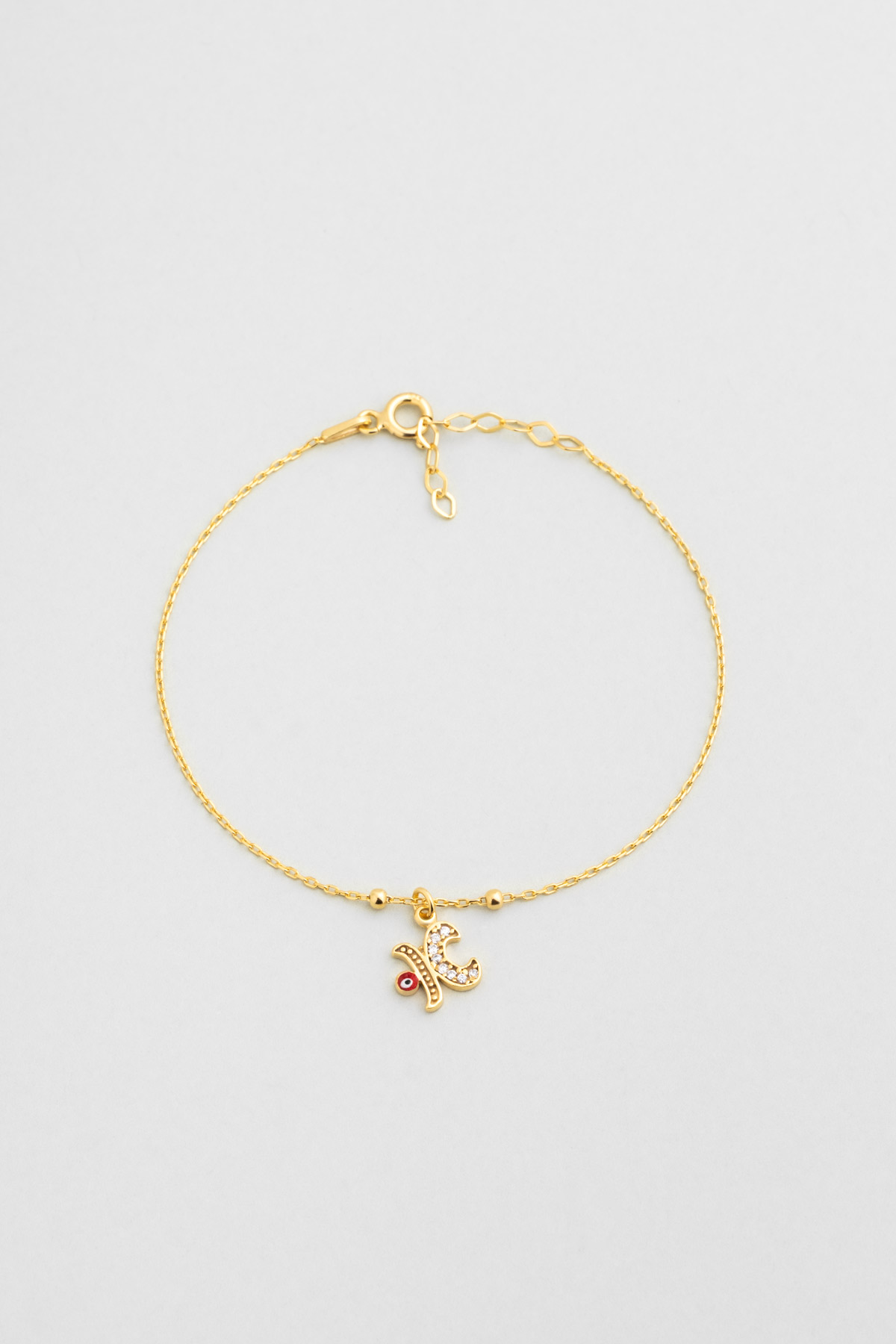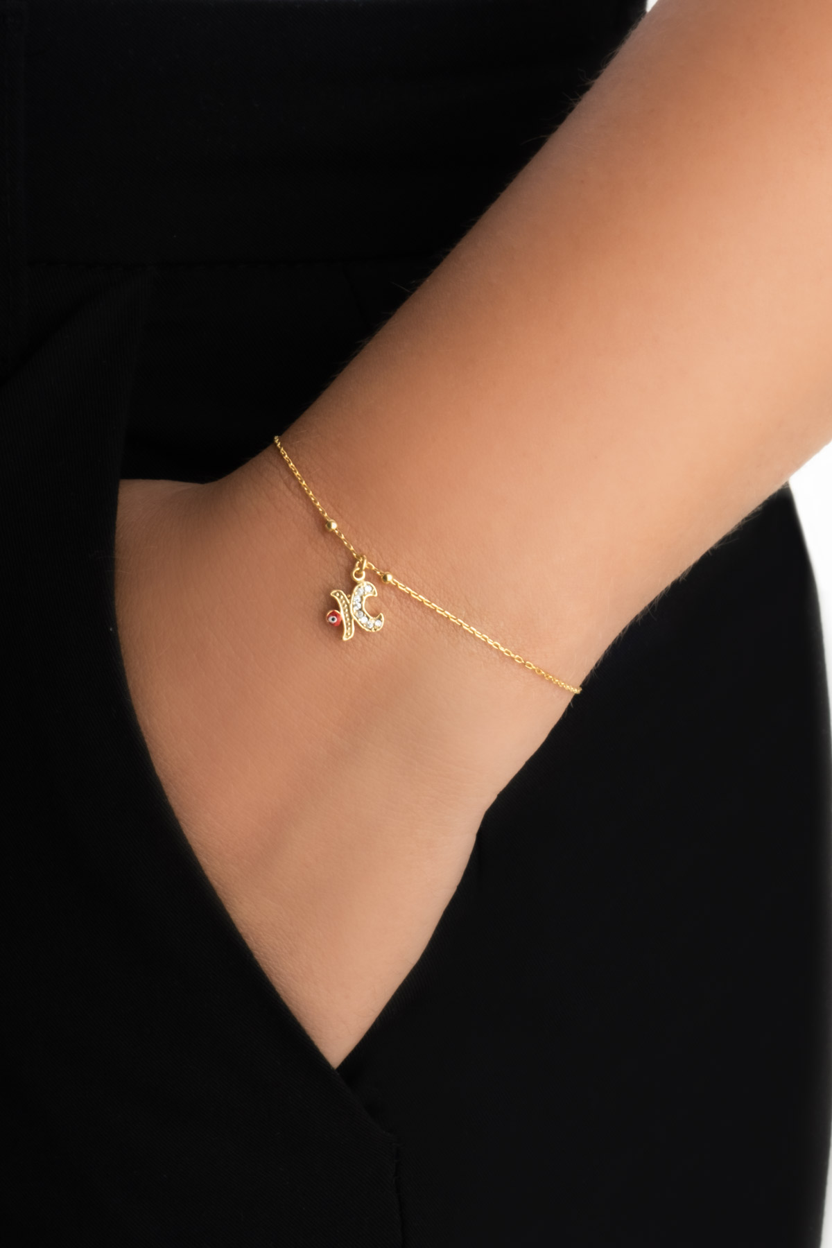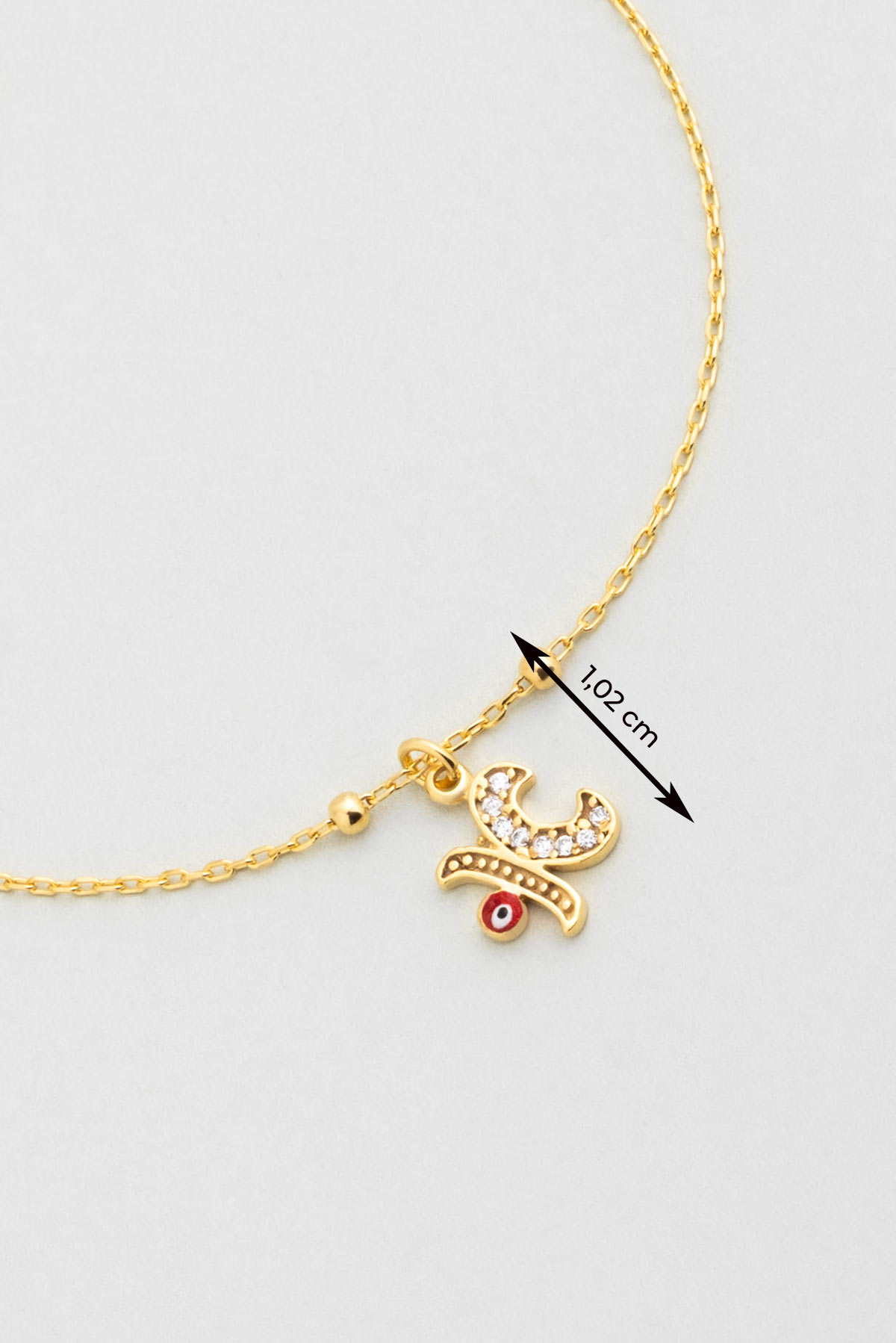 K Harfi 18 Ayar Sarı Altın Kaplama 19 Cm Gümüş Nazar Bileklik