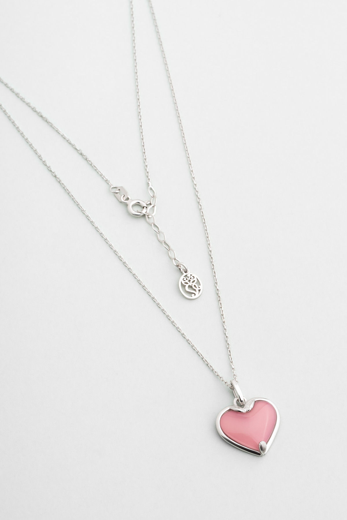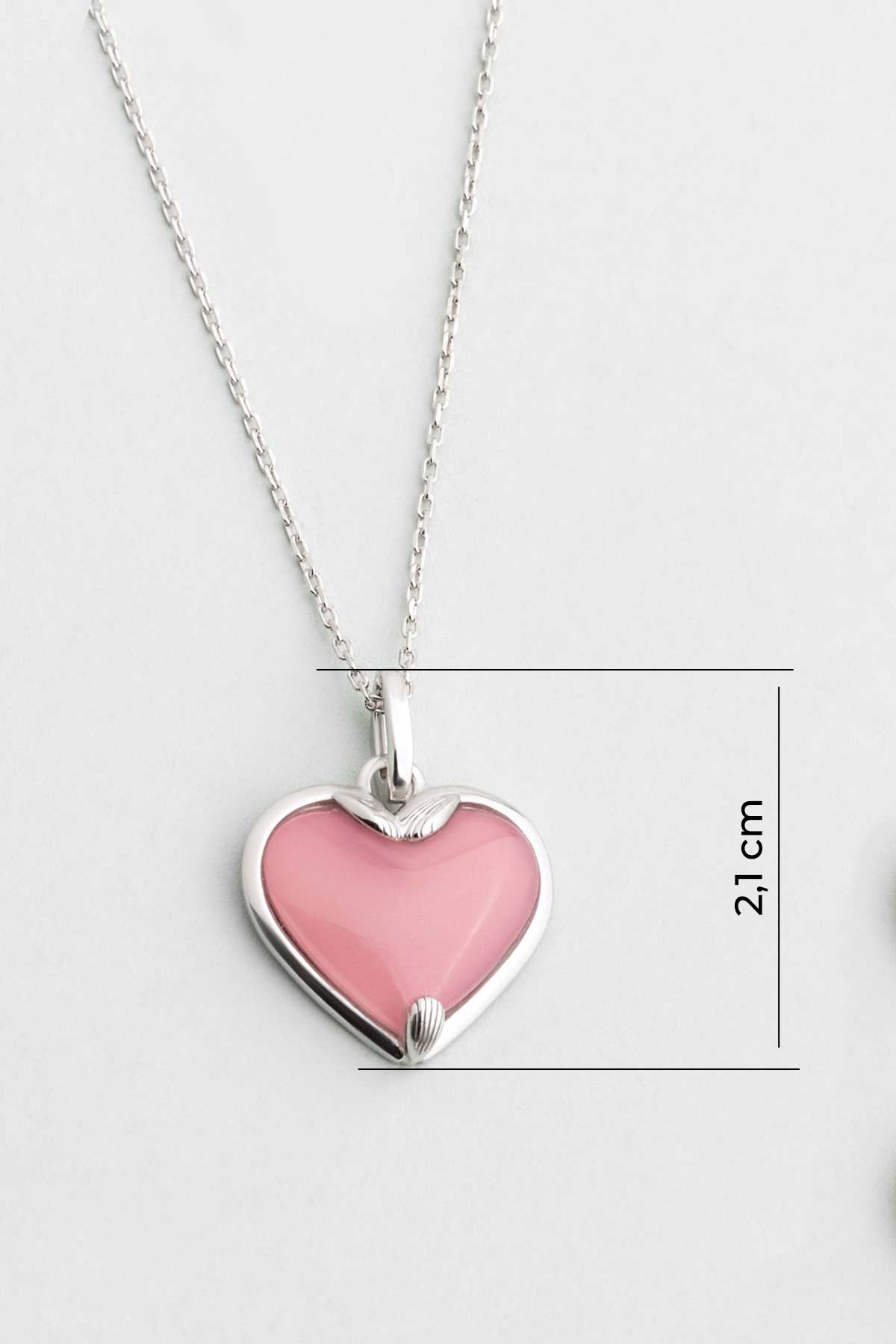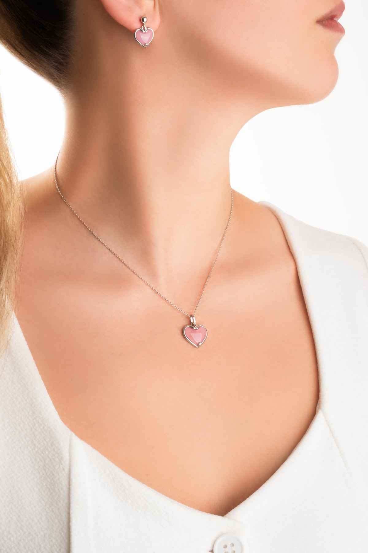Pembe Kalsedon Taşlı Beyaz Altın Kaplama