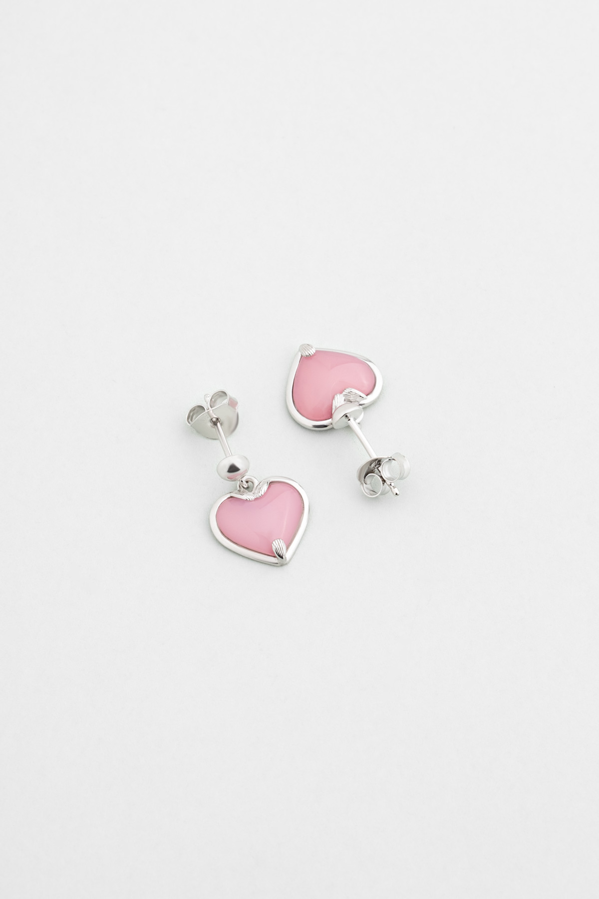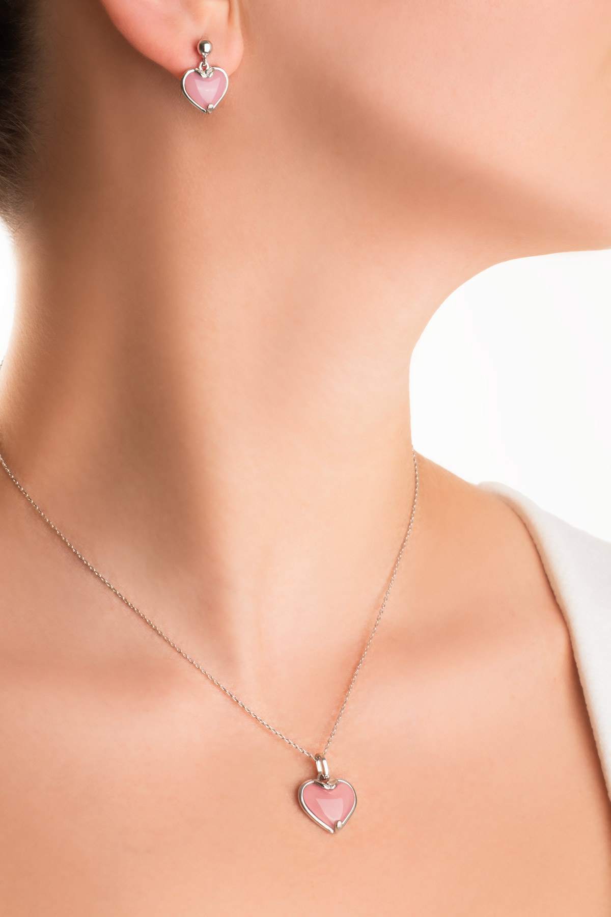 Pembe Kalsedon Taşlı Beyaz Altın Kaplama