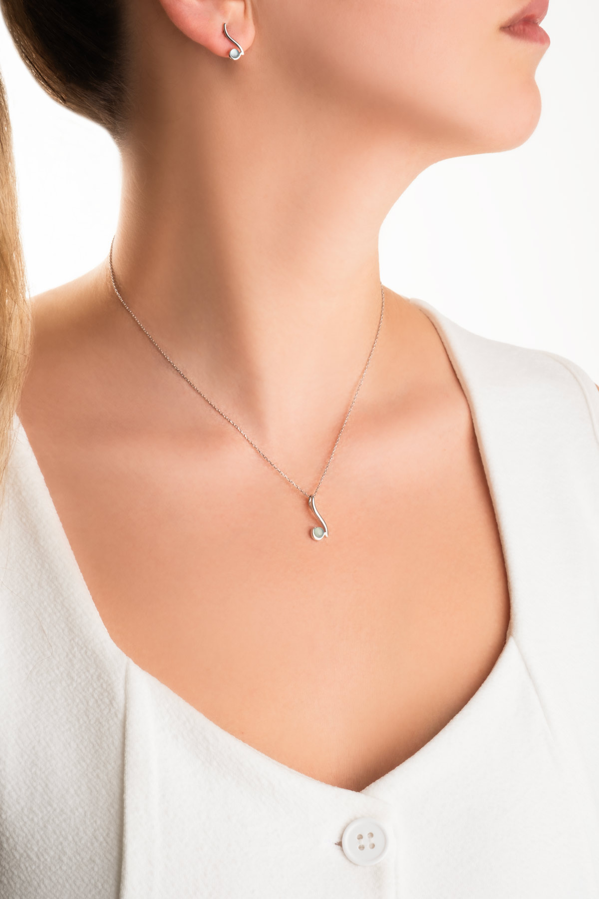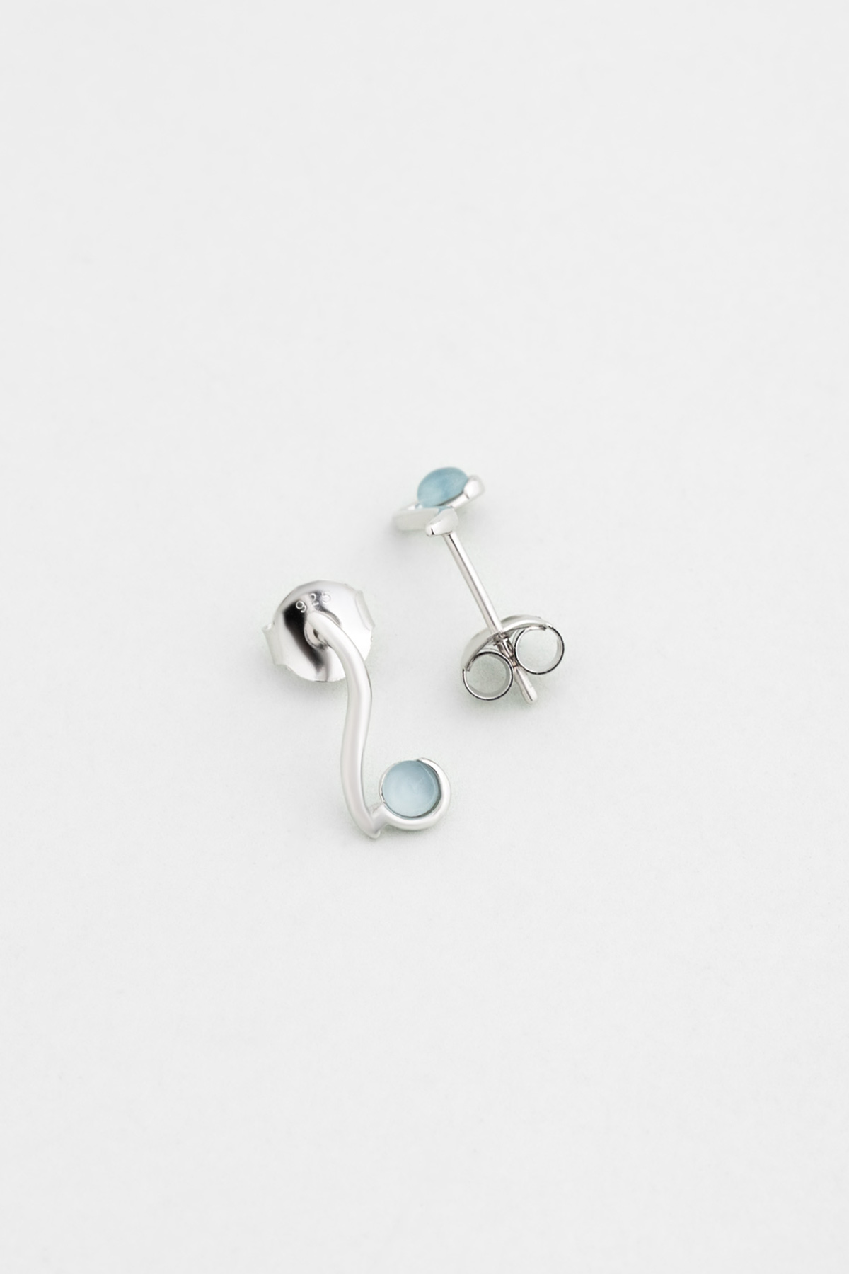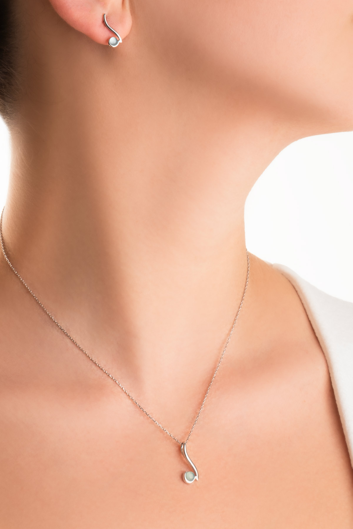 Mavi Kalsedon Taşlı Beyaz Altın Kaplama