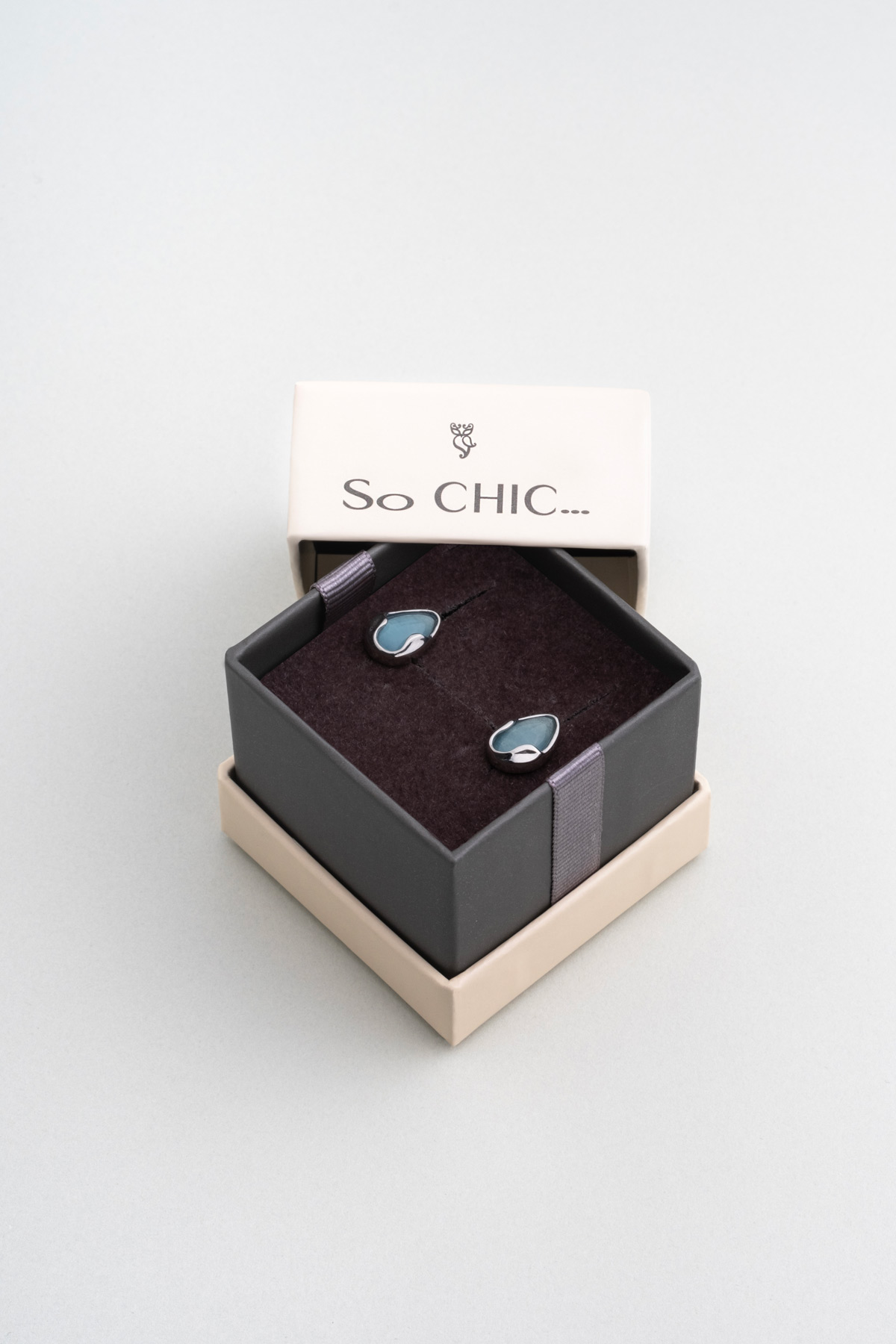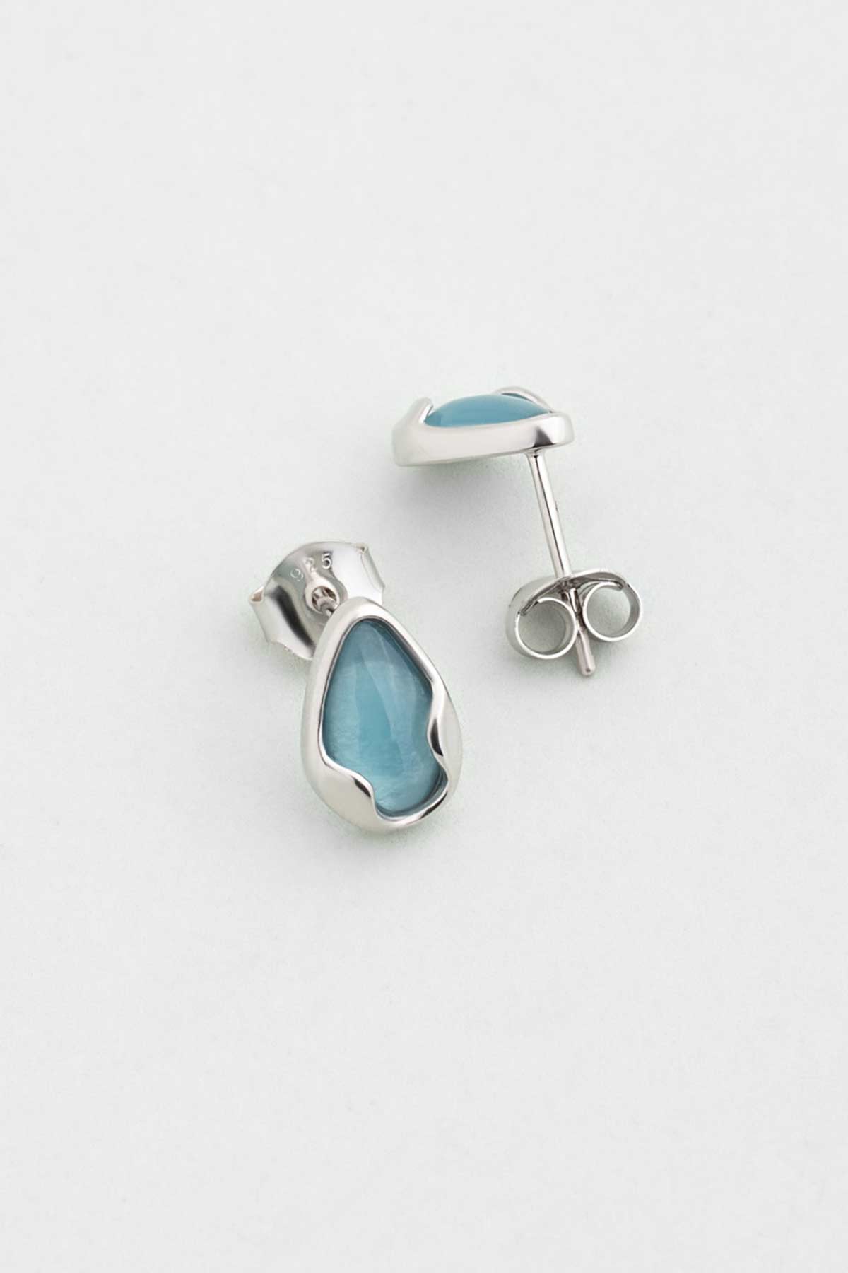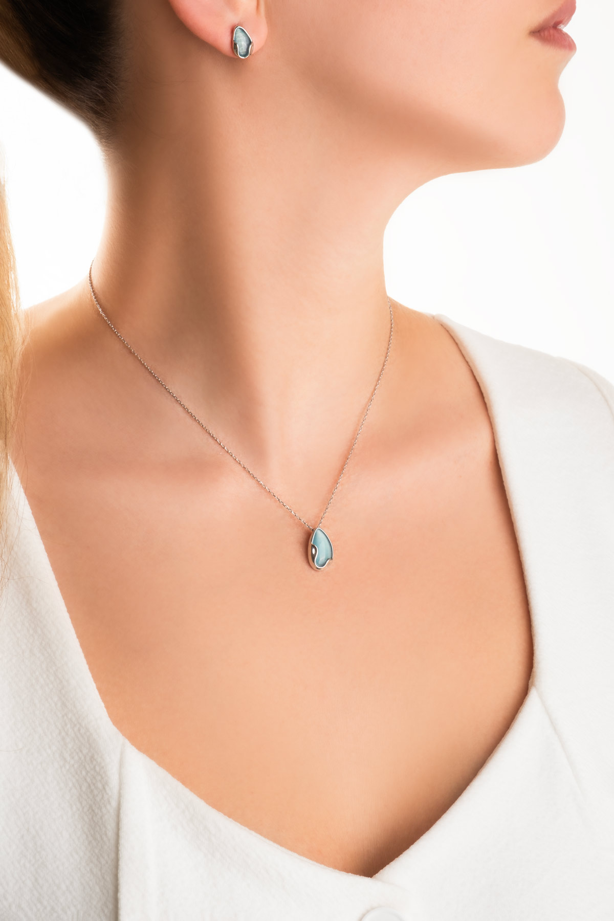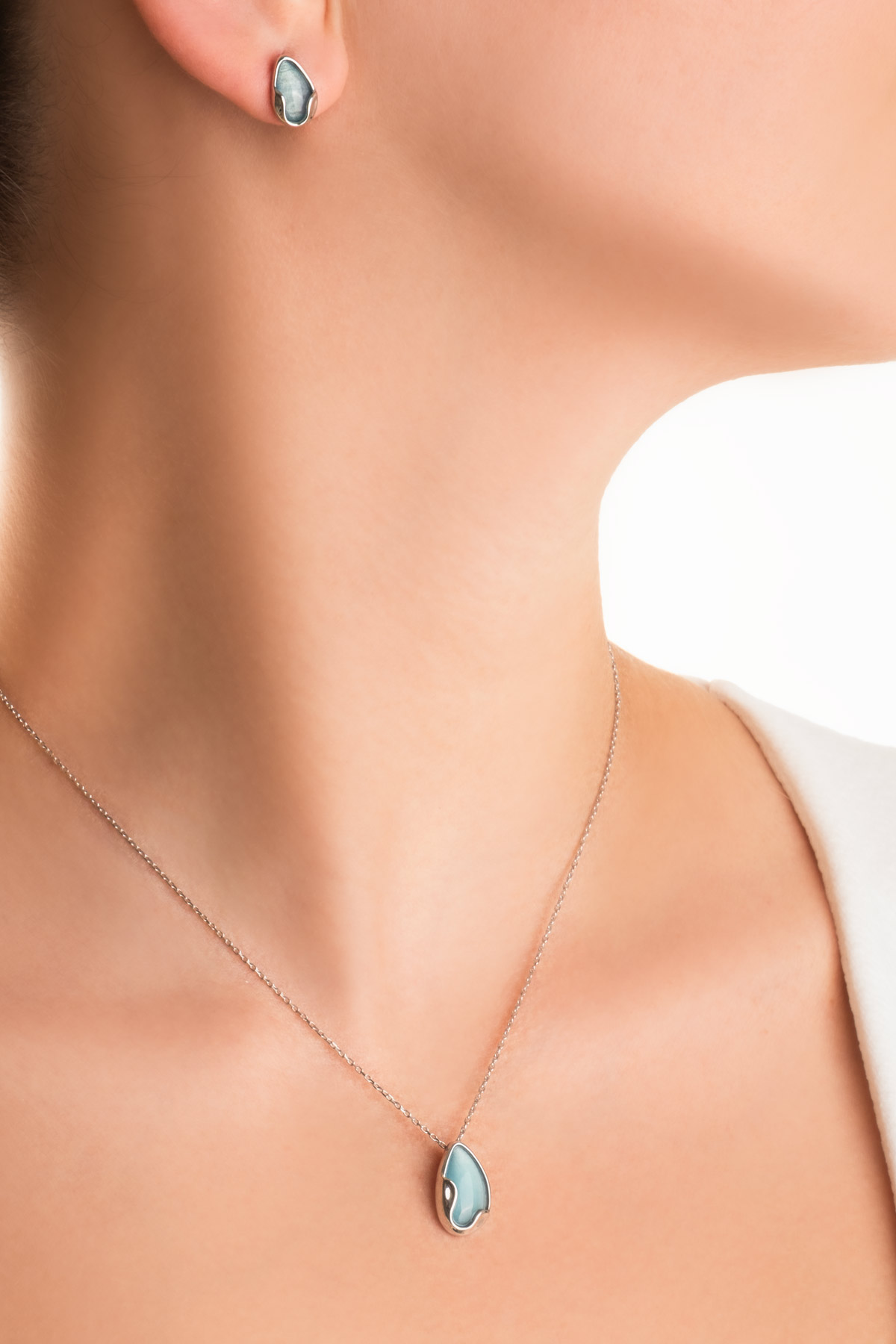 Mavi Kalsedon Taşlı Beyaz Altın Kaplama