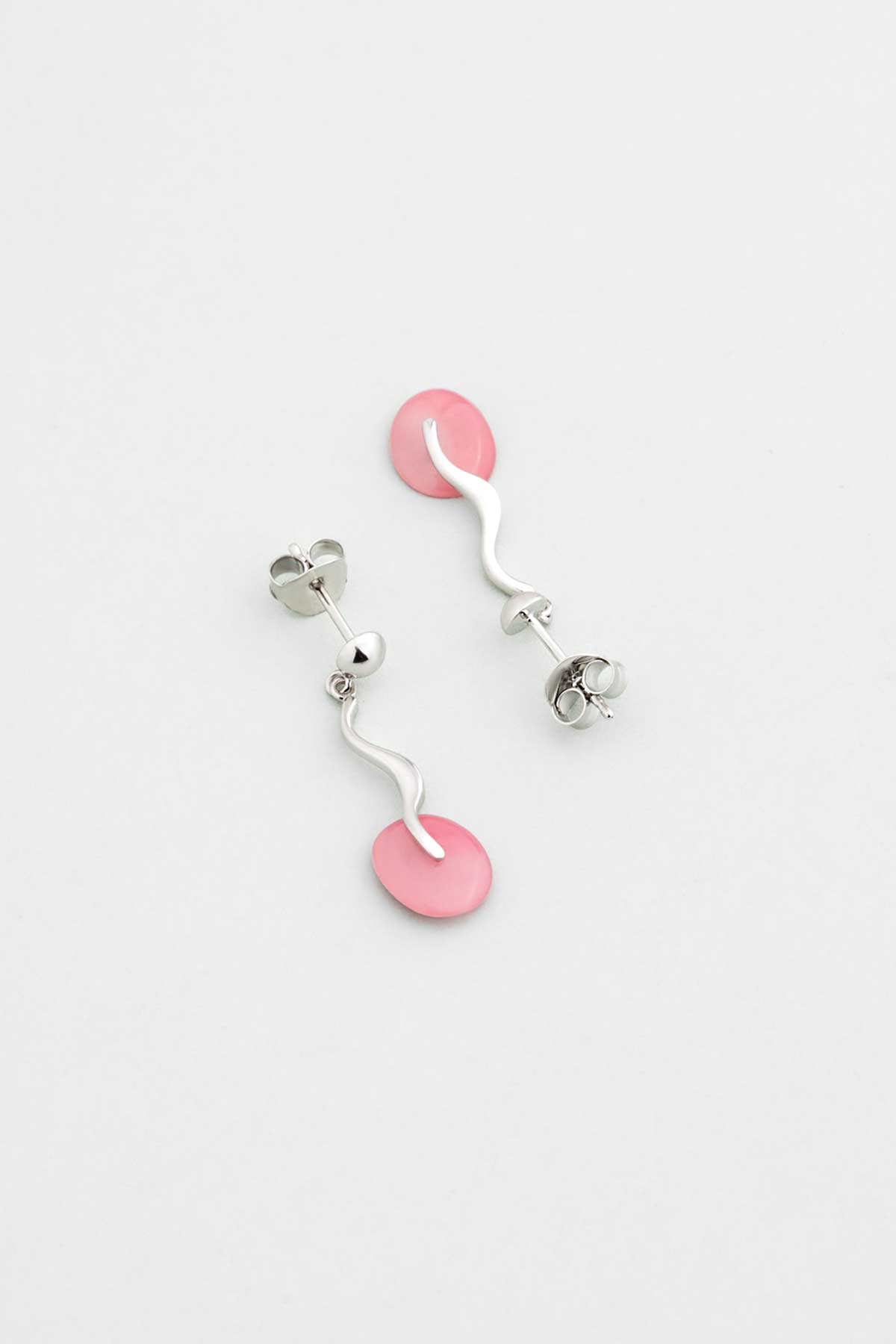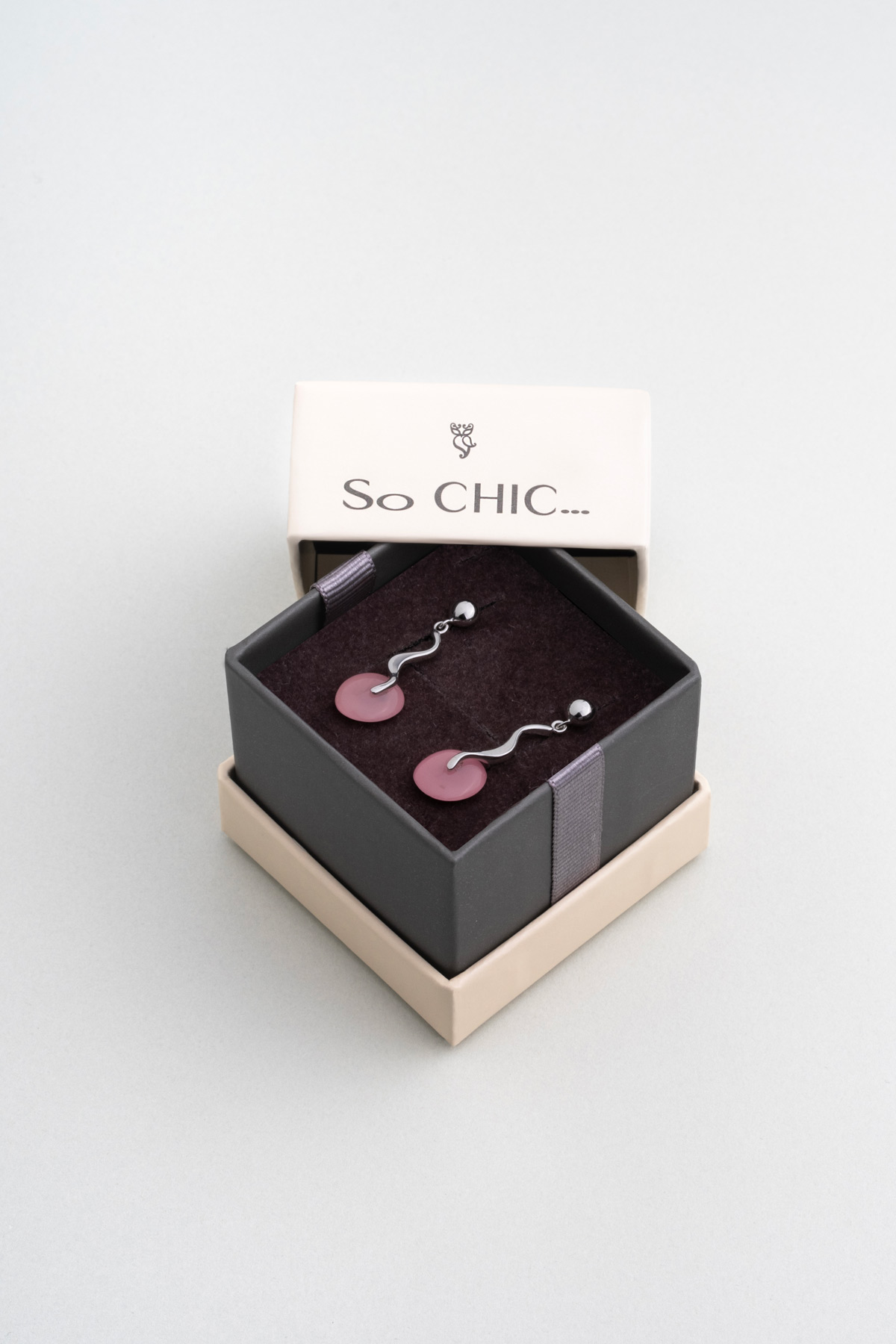 Pembe Kalsedon Taşlı Beyaz Altın Kaplama