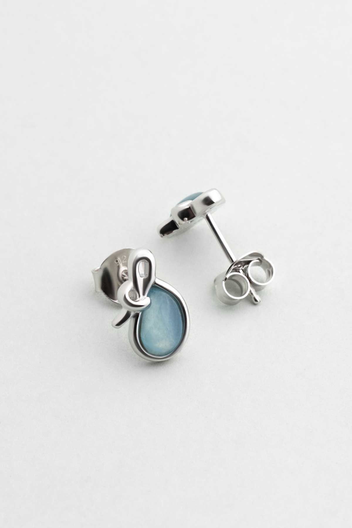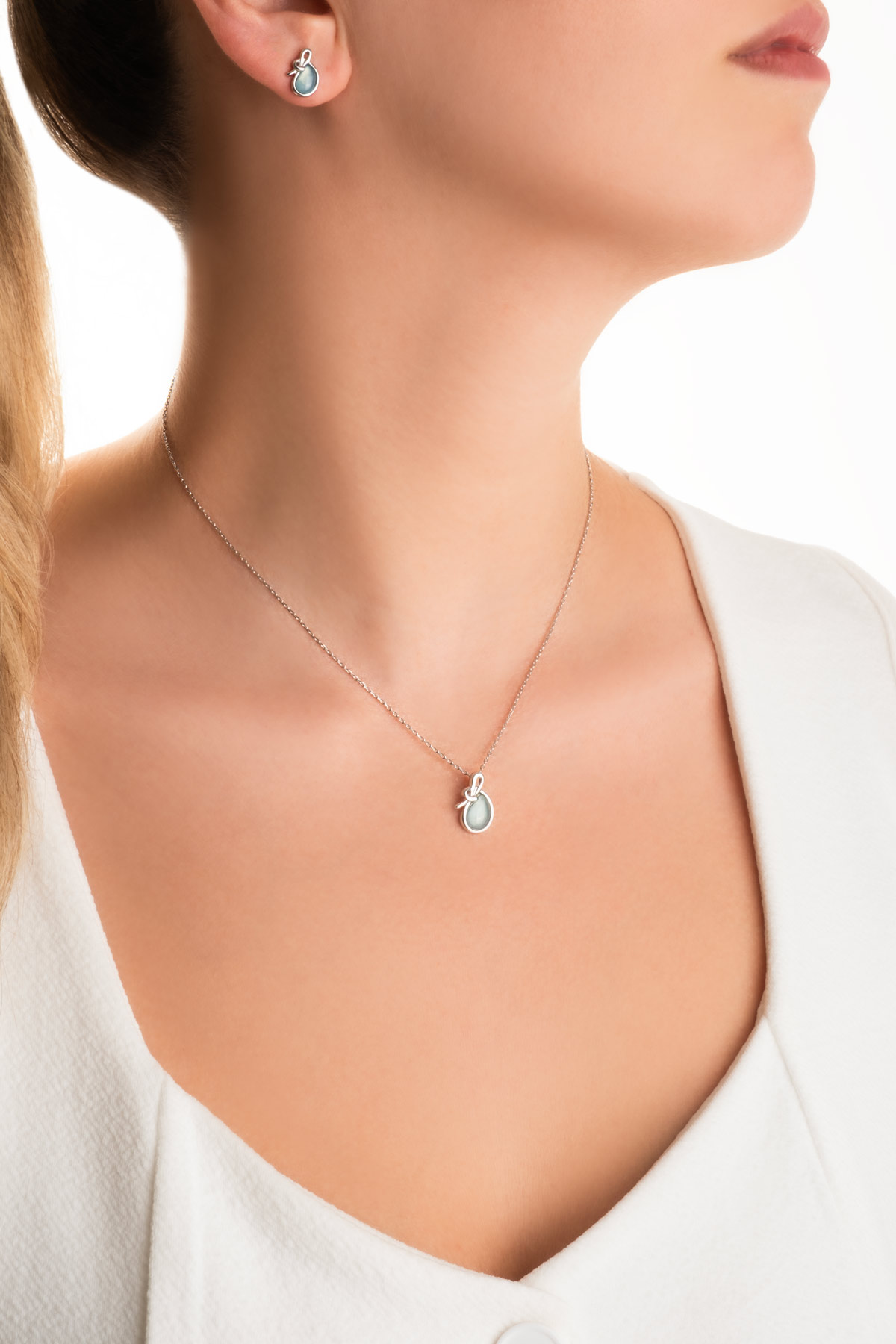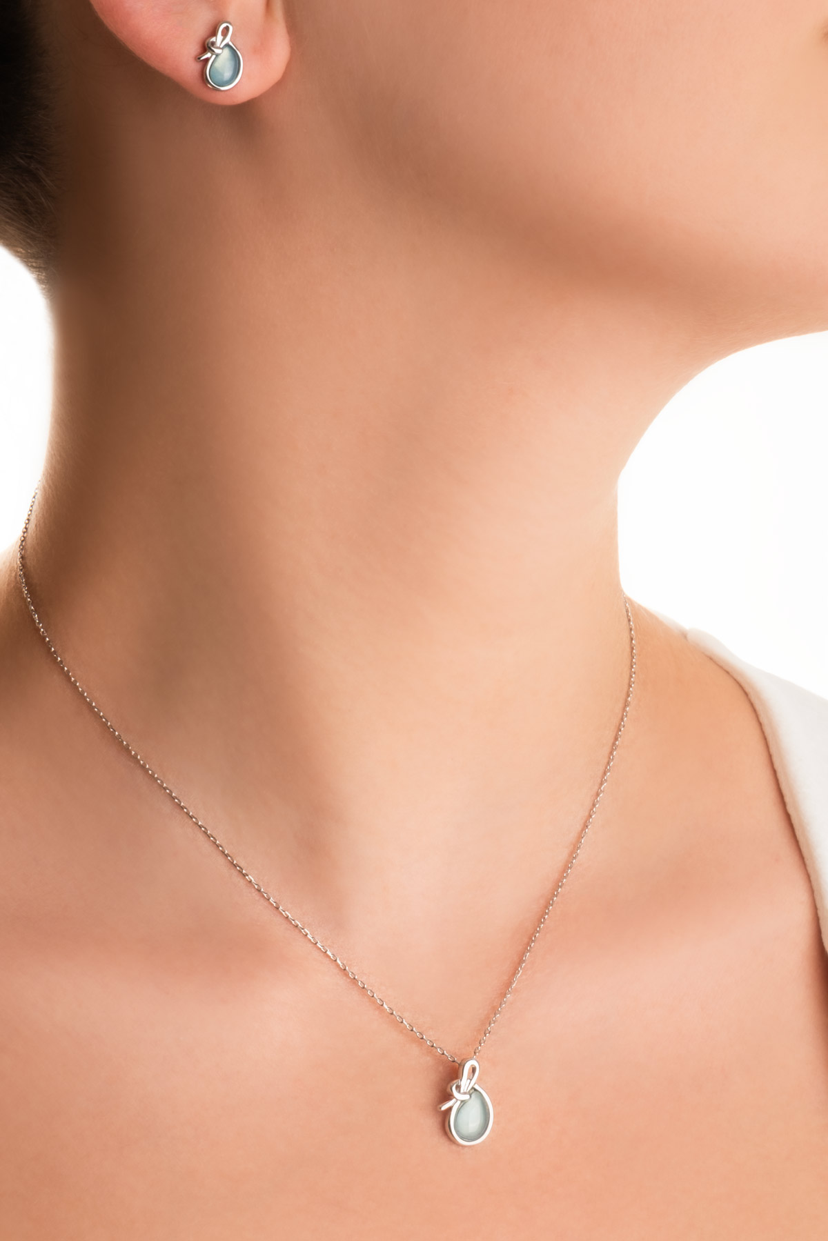 Mavi Kalsedon Taşlı Beyaz Altın Kaplama