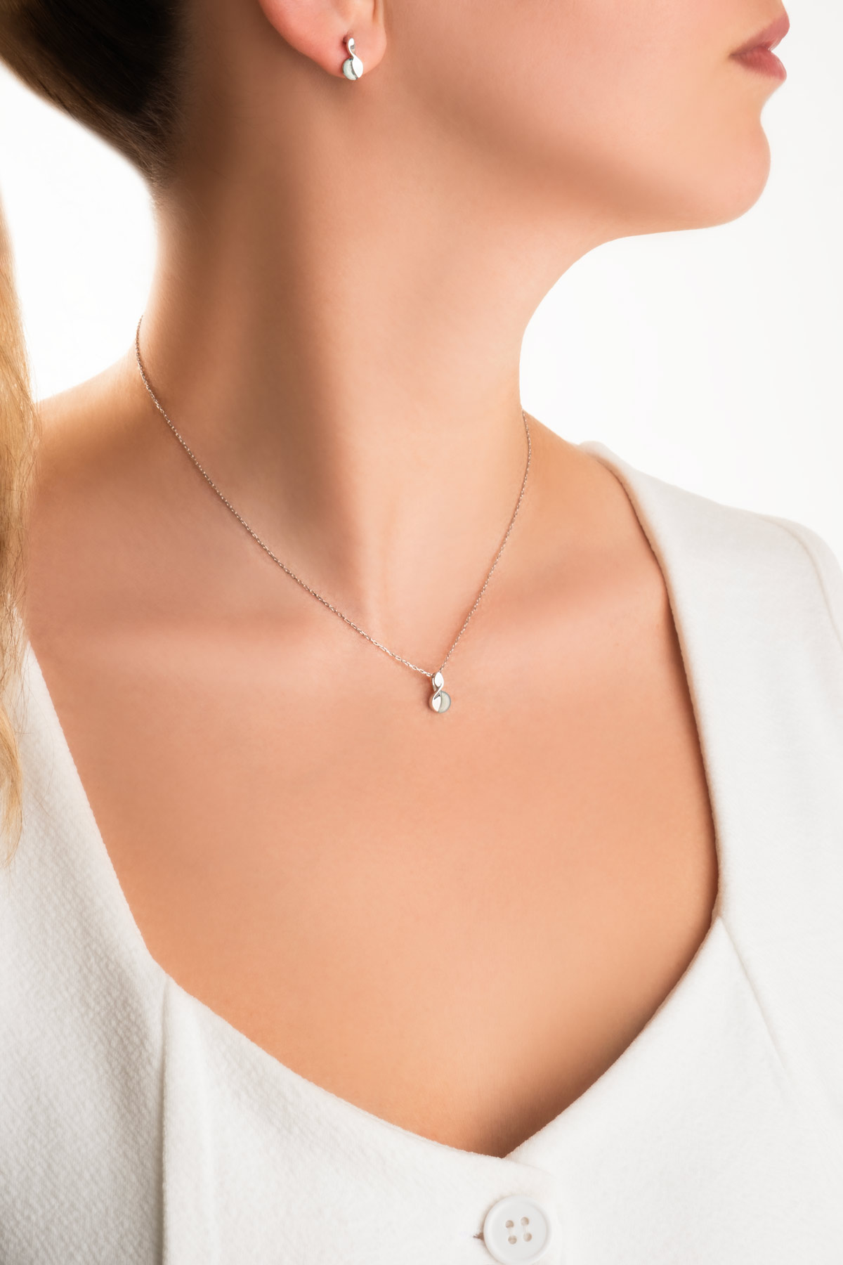 Pembe Kalsedon Taşlı Beyaz Altın Kaplama