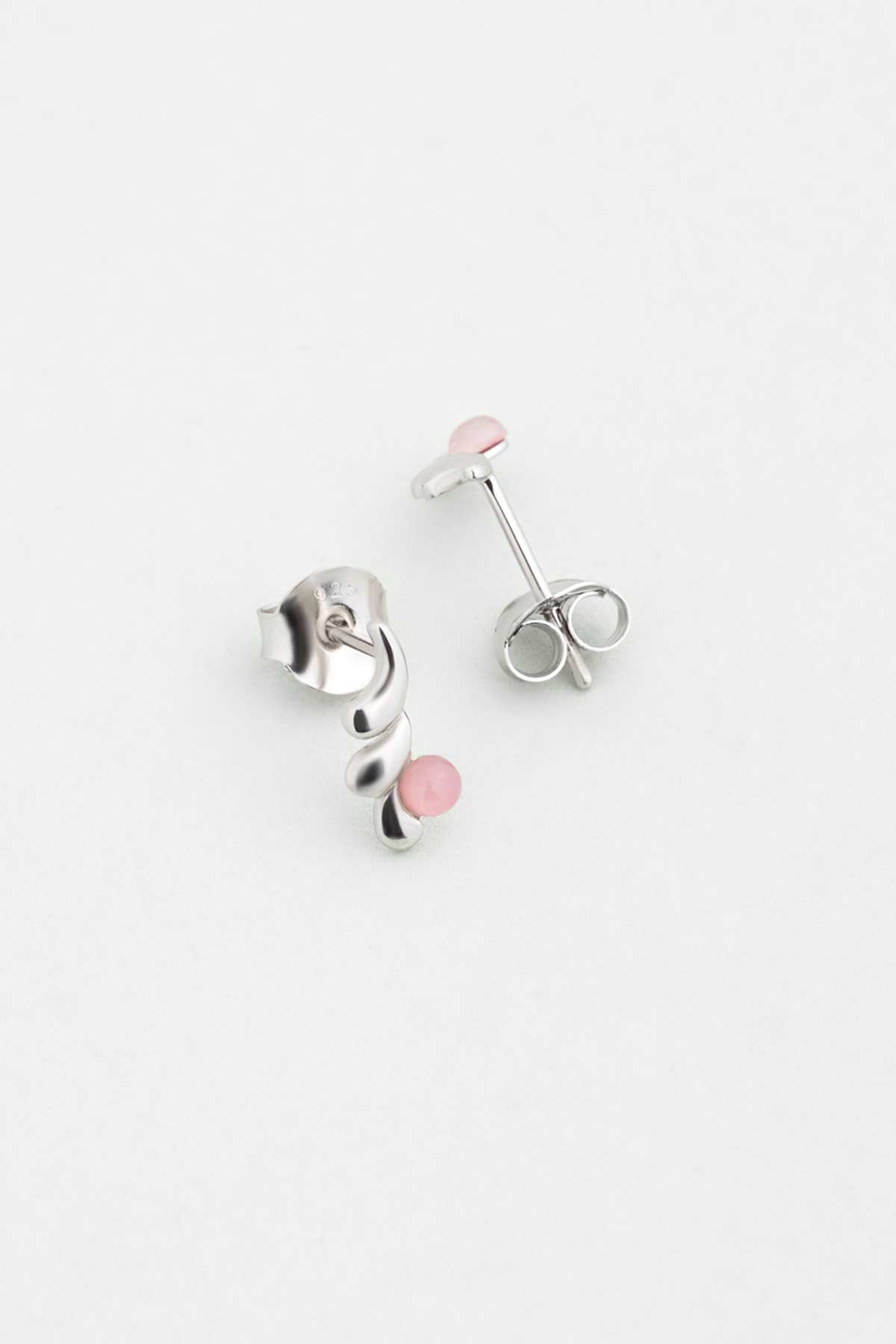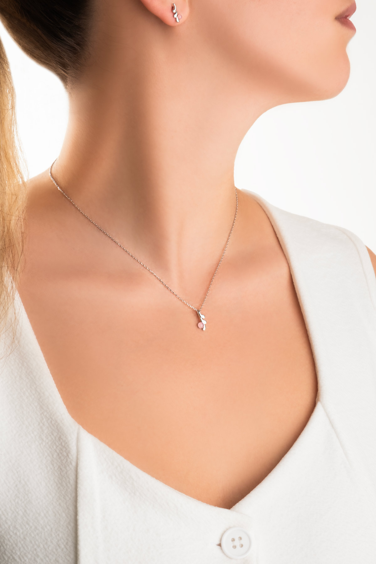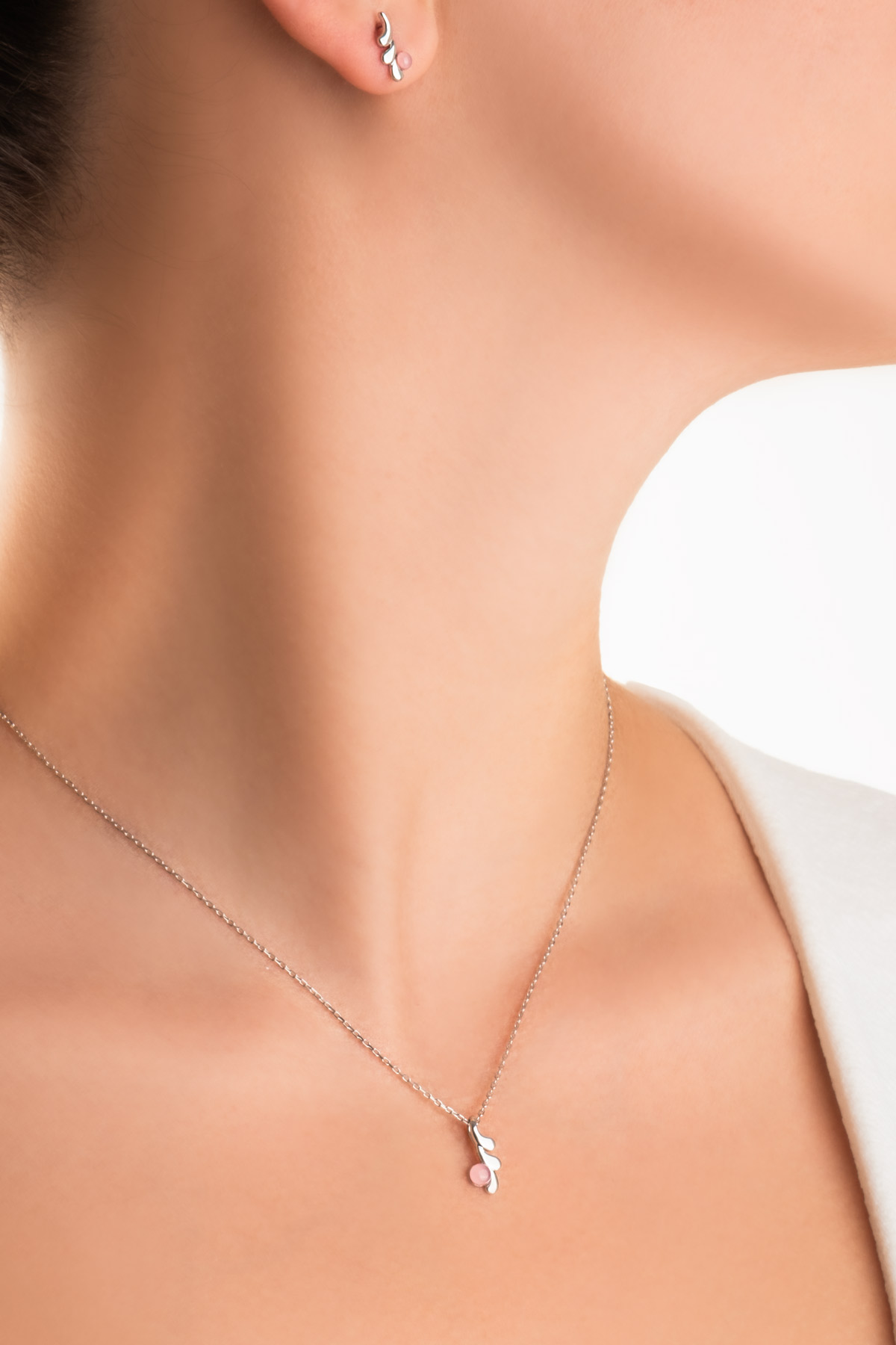 Pembe Kalsedon Taşlı Beyaz Altın Kaplama