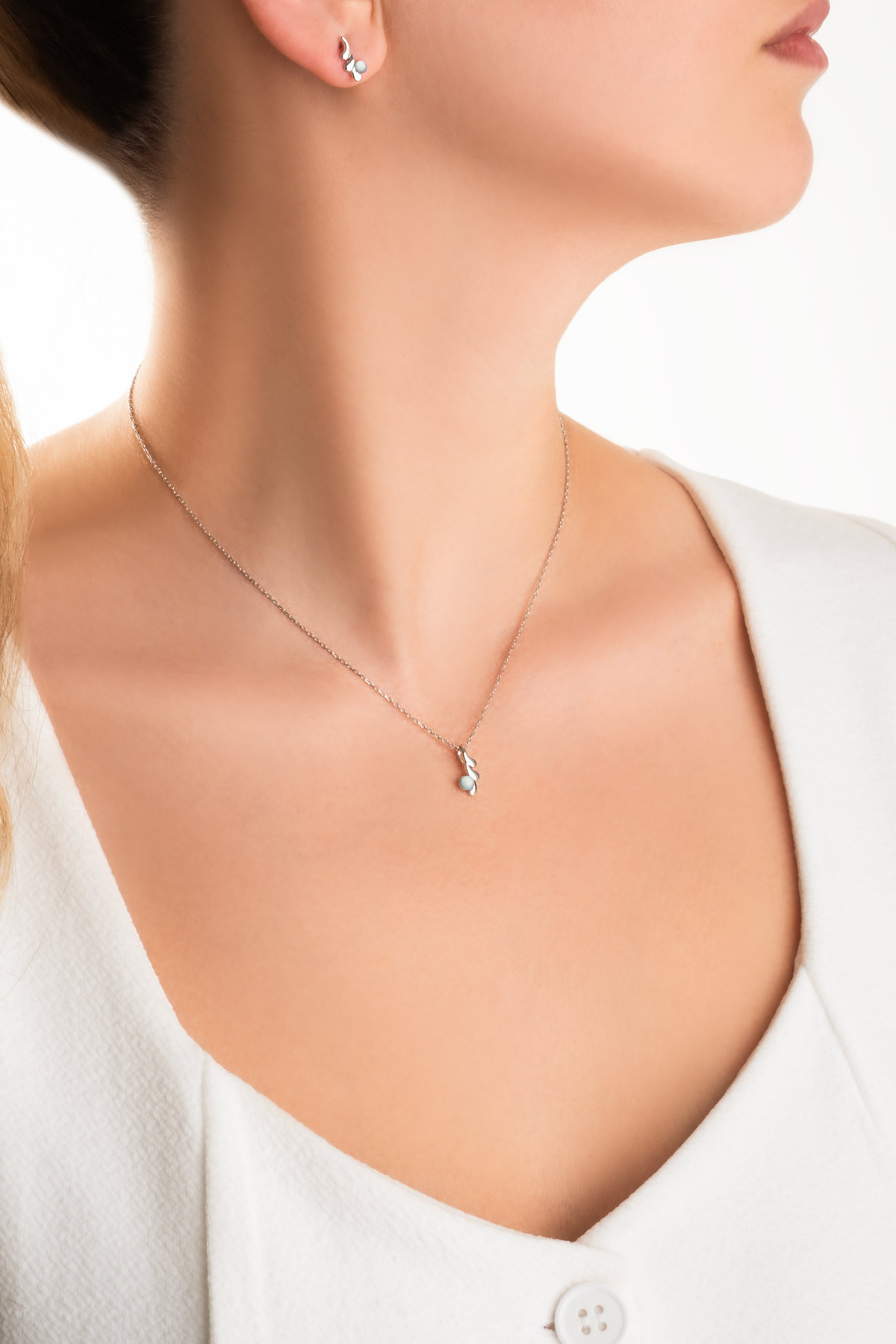 Mavi Kalsedon Taşlı Beyaz Altın Kaplama