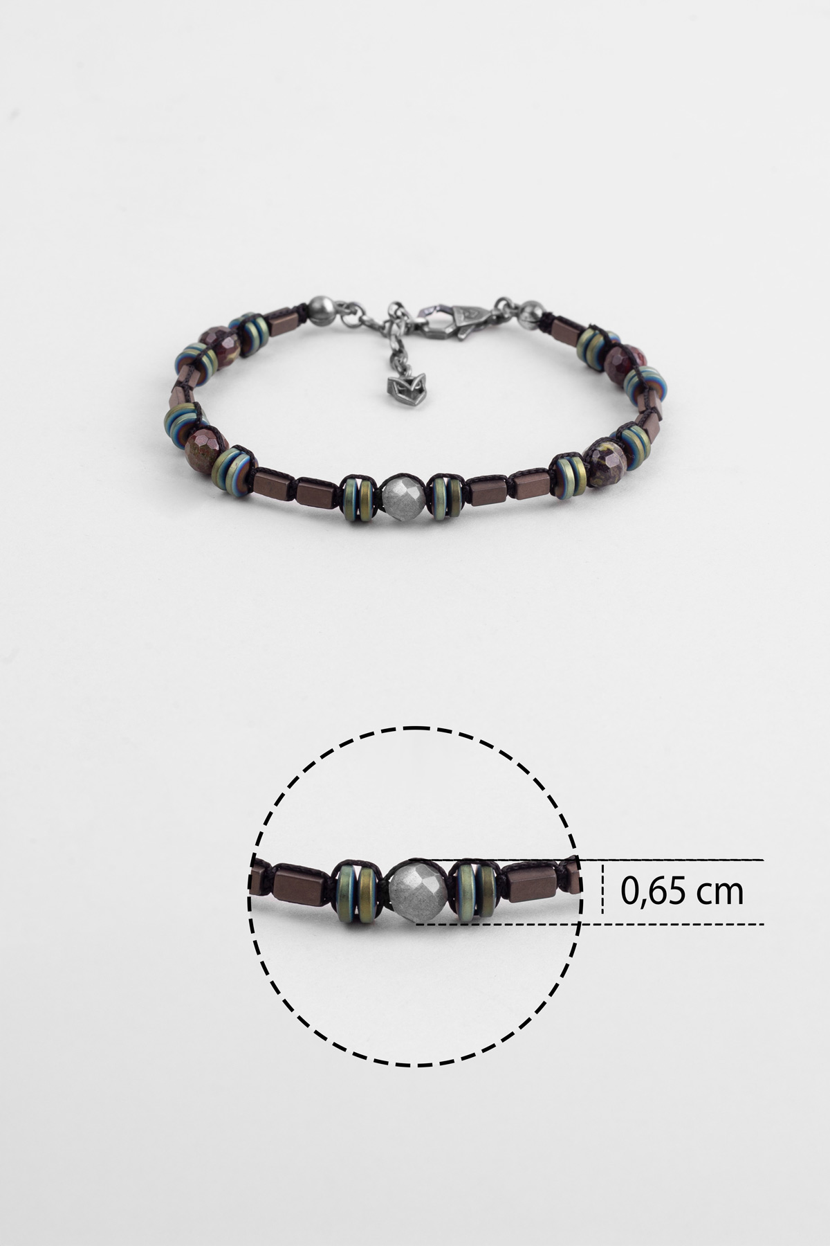Kalsedon Ve Hematit Taşlı 22 Cm Gümüş Erkek Bileklik