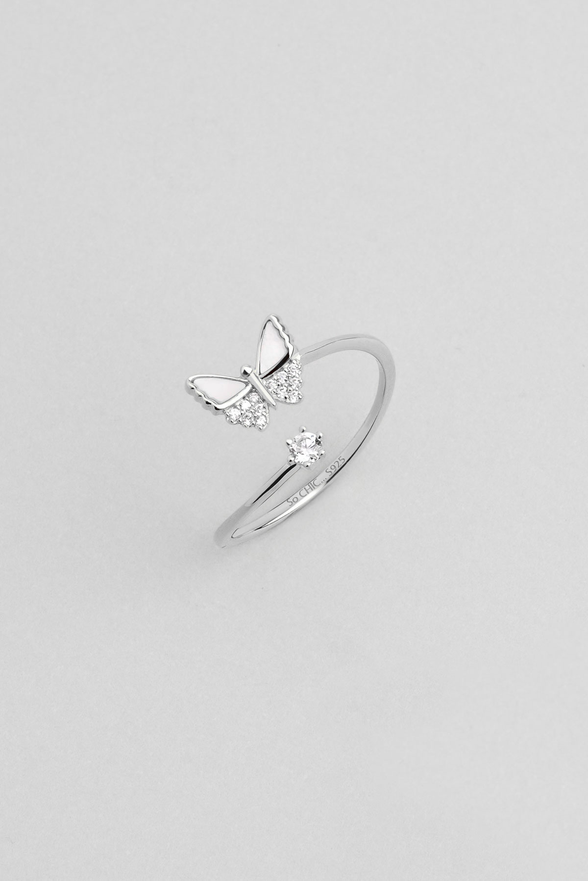Kelebek Işıltısı 18 Ayar Beyaz Altın Kaplama Ayarlanabilir Gümüş Minimal Yüzük
