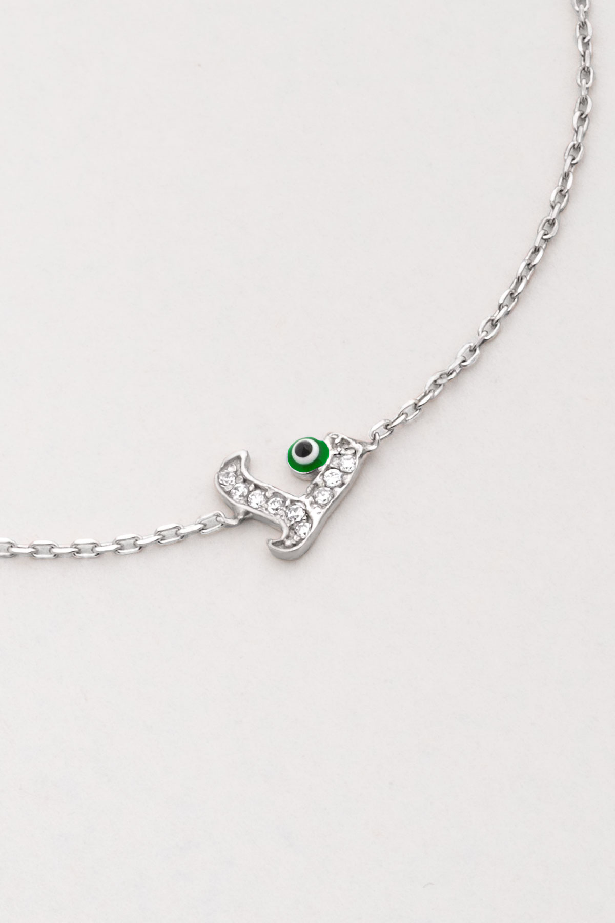 L Harfi 18 Ayar Beyaz Altın Kaplama 19 Cm Gümüş Nazar Bileklik