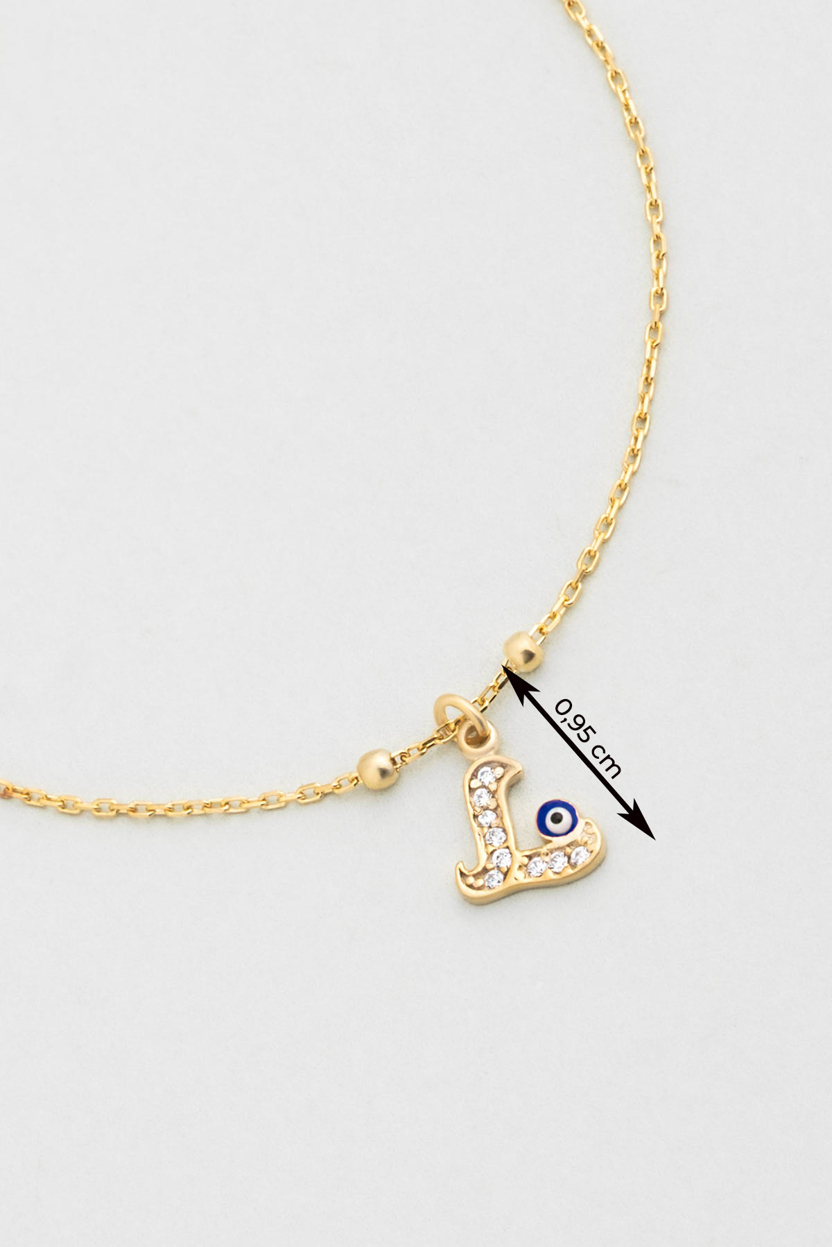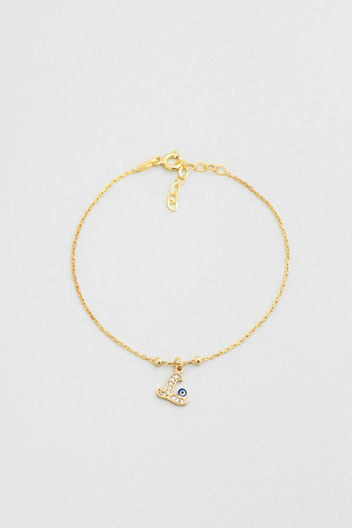 L Harfi 18 Ayar Sarı Altın Kaplama 19 Cm Gümüş Nazar Bileklik