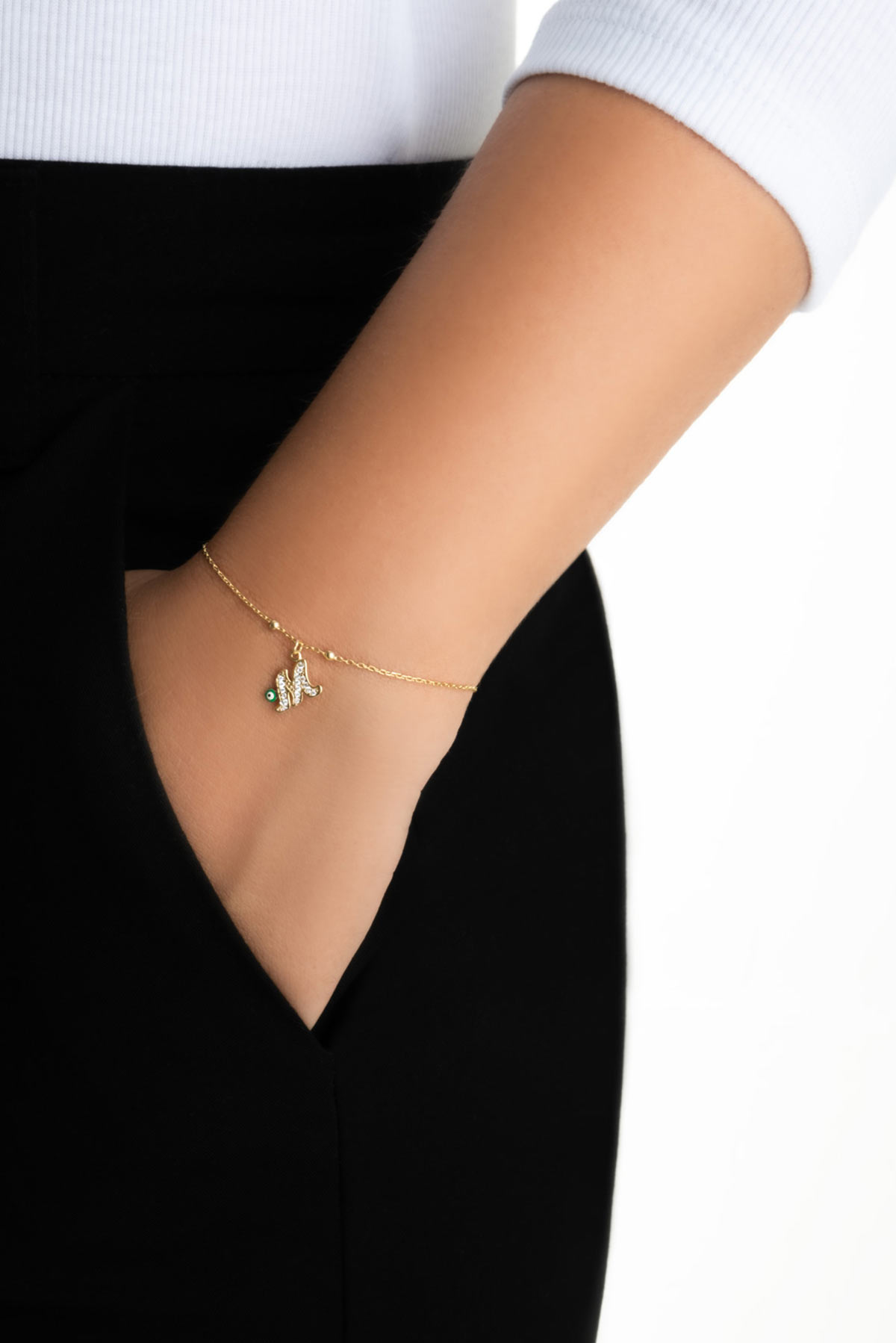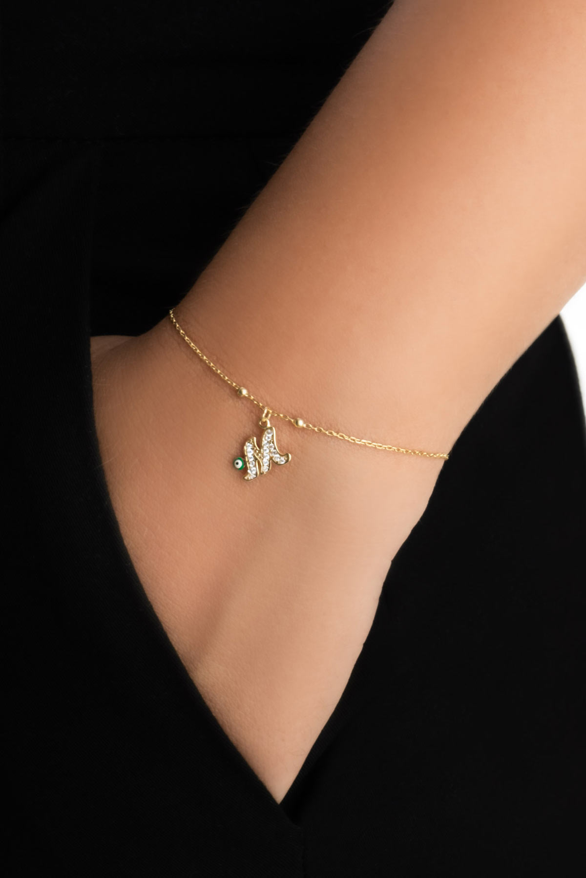 M Harfi 18 Ayar Sarı Altın Kaplama 19 Cm Gümüş Nazar Bileklik