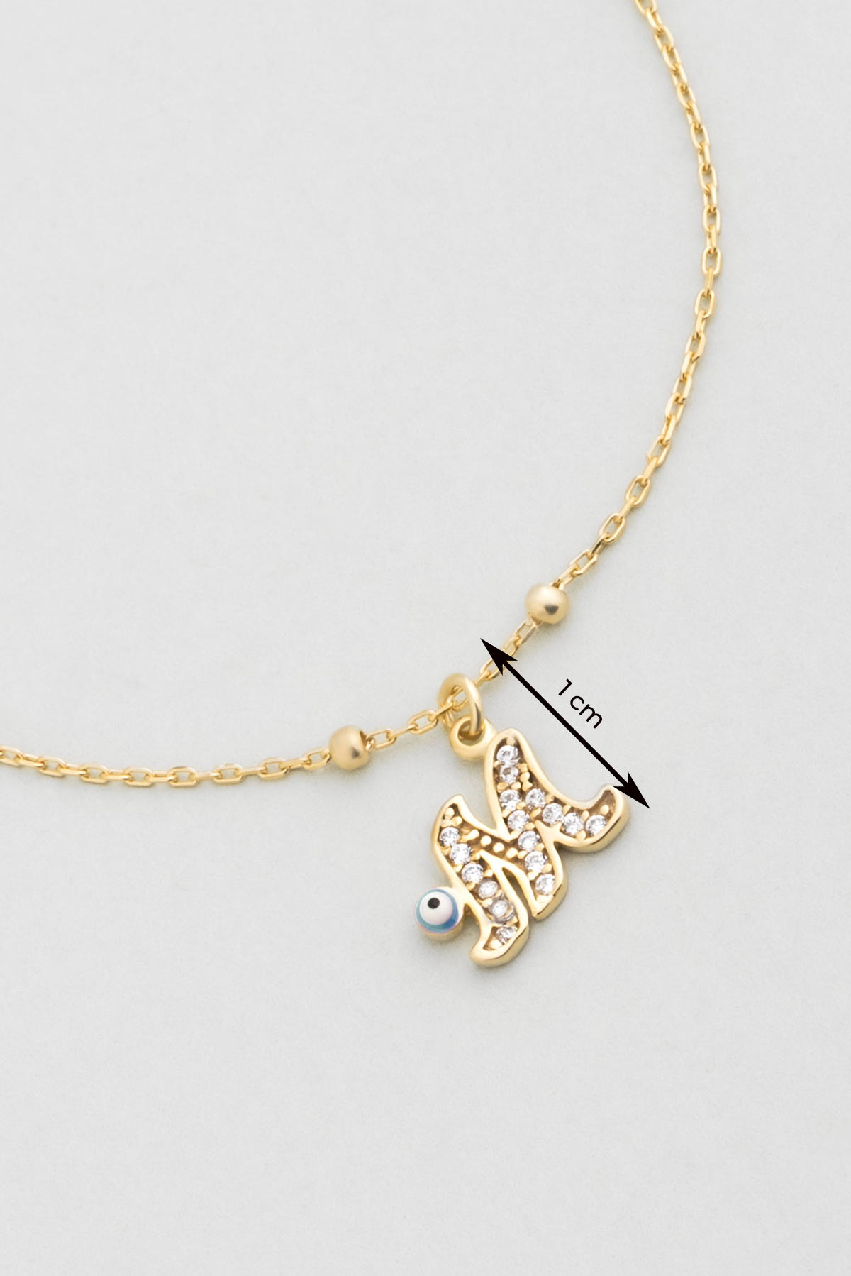 M Harfi 18 Ayar Sarı Altın Kaplama 19 Cm Gümüş Nazar Bileklik