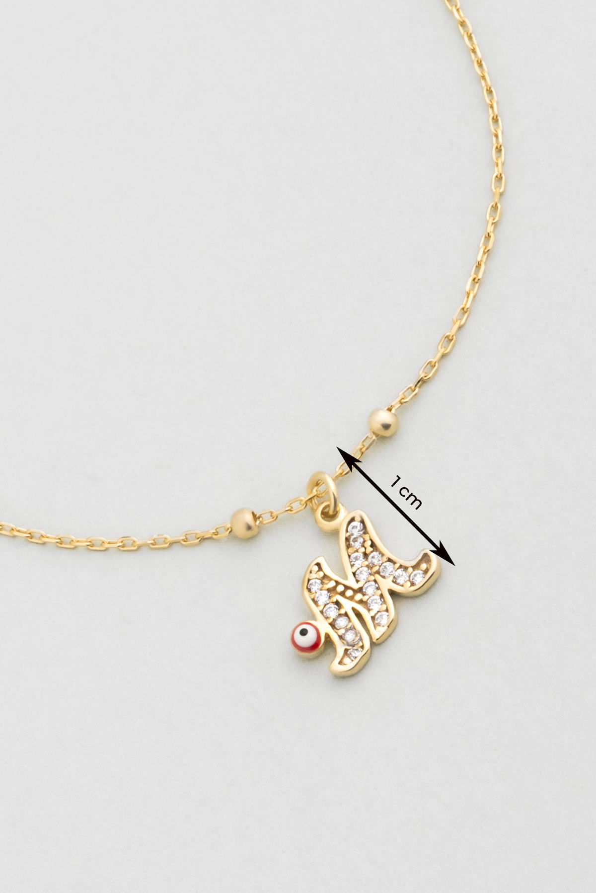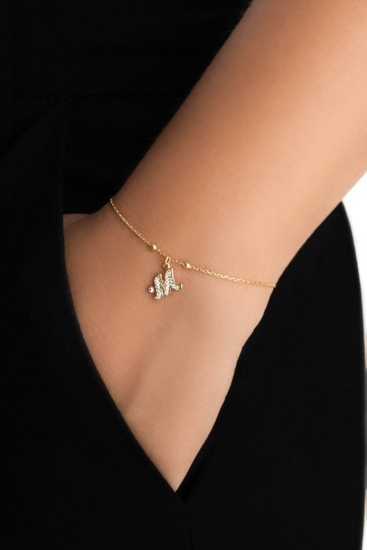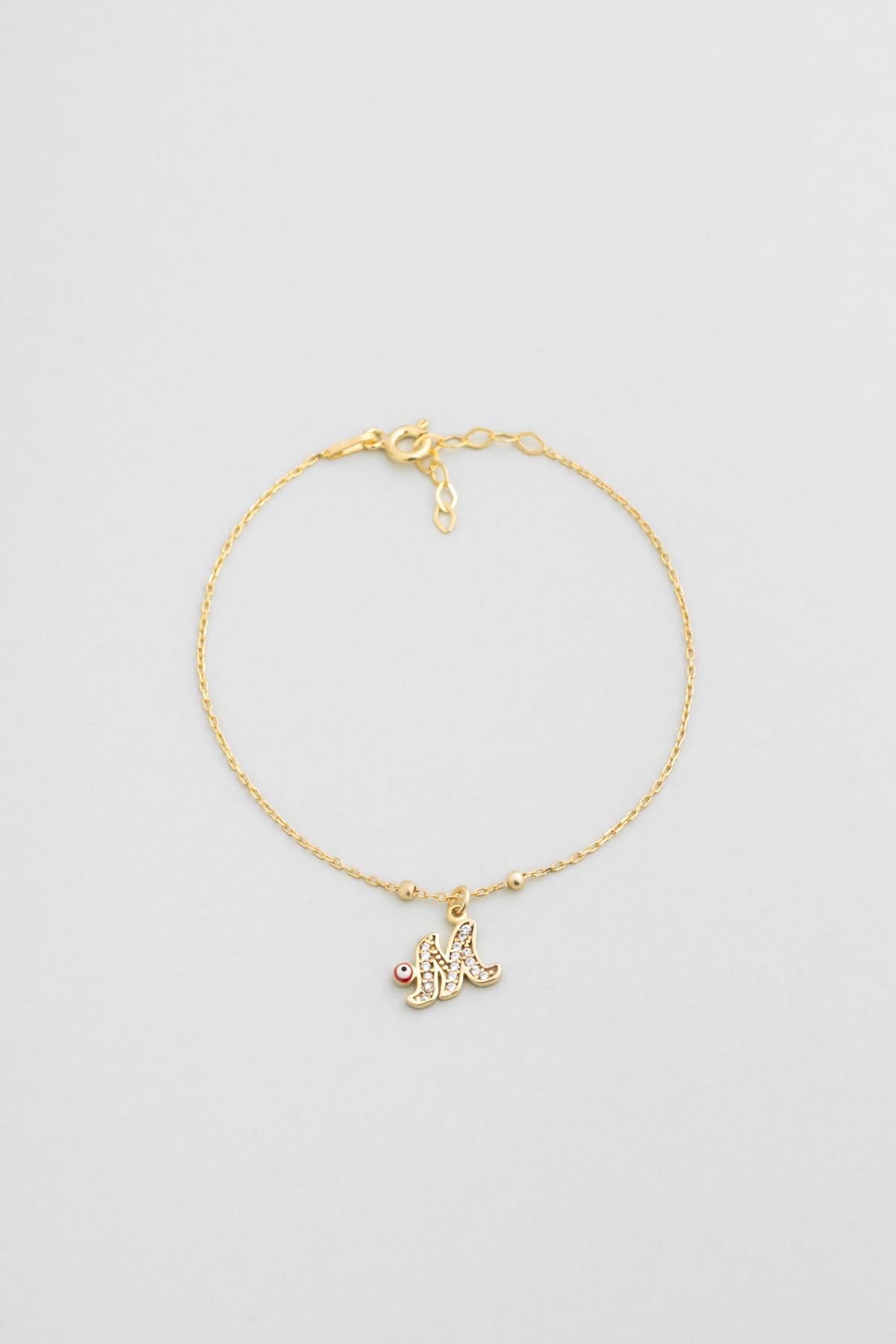 M Harfi 18 Ayar Sarı Altın Kaplama 19 Cm Gümüş Nazar Bileklik