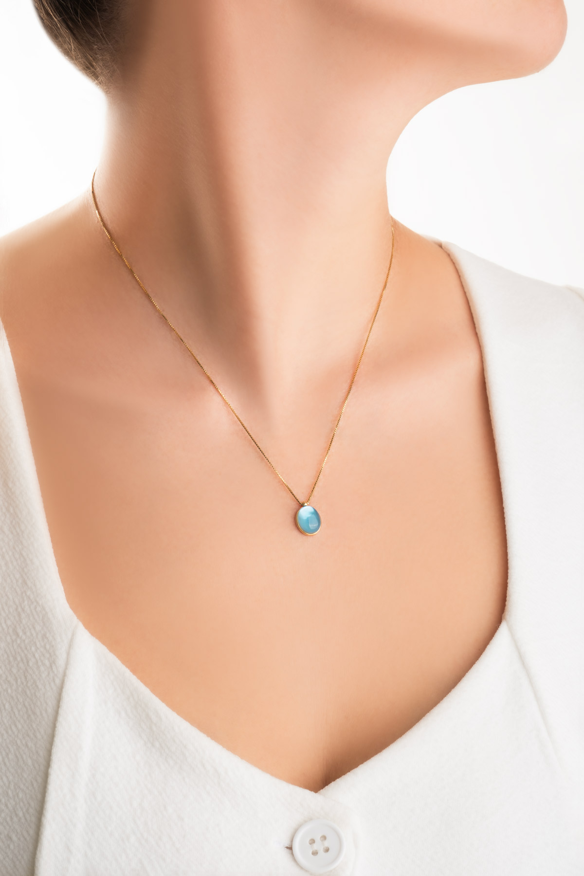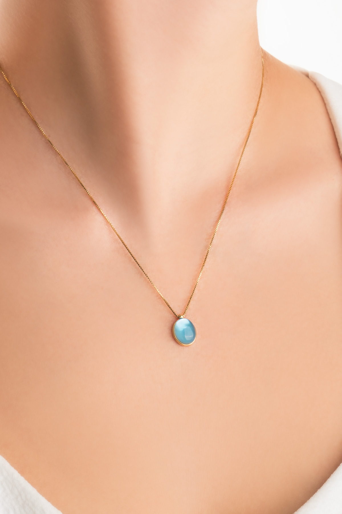 Mavi Aura 18 Ayar Sarı Altın Kaplama 44 Cm Gümüş Kolye
