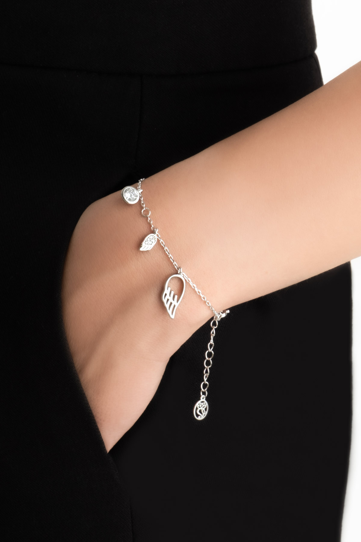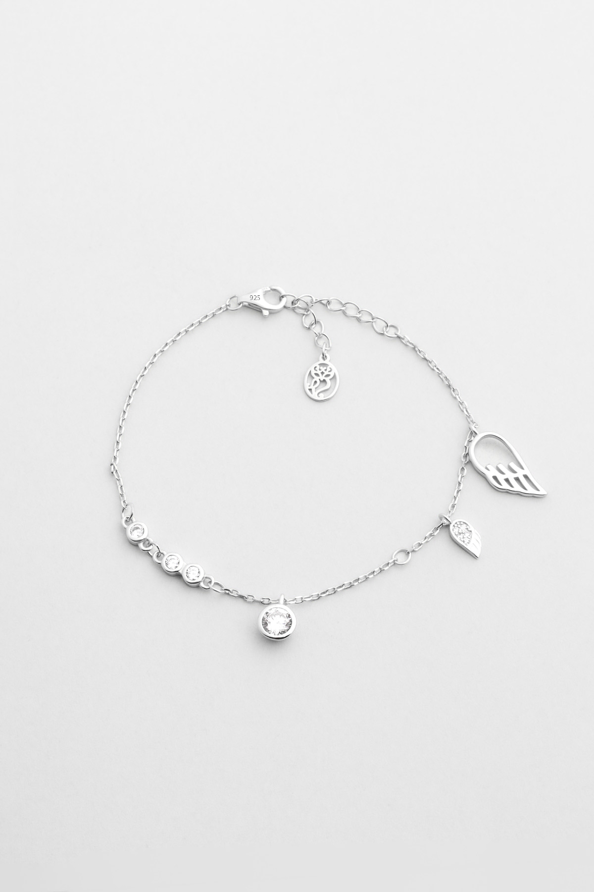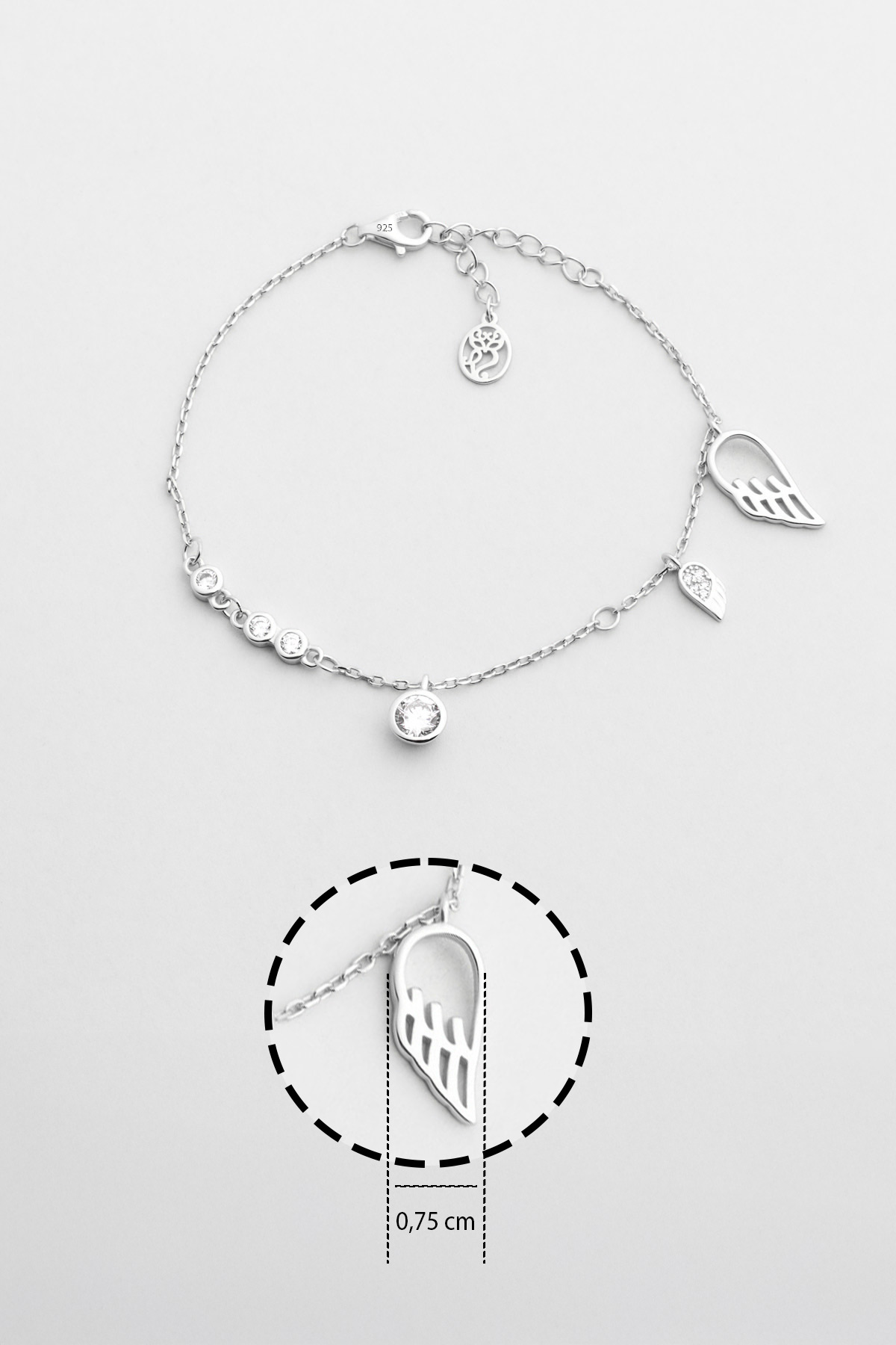 Melek Kanadı 18 Ayar Beyaz Altın Kaplama 20 Cm Gümüş Minimal Bileklik