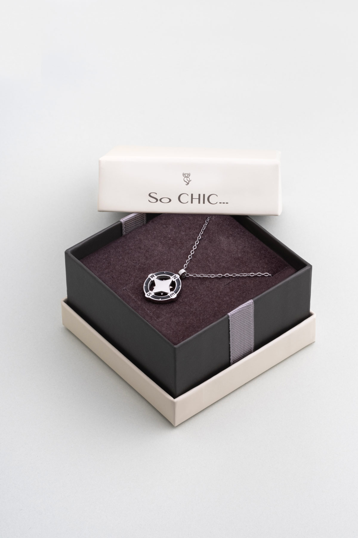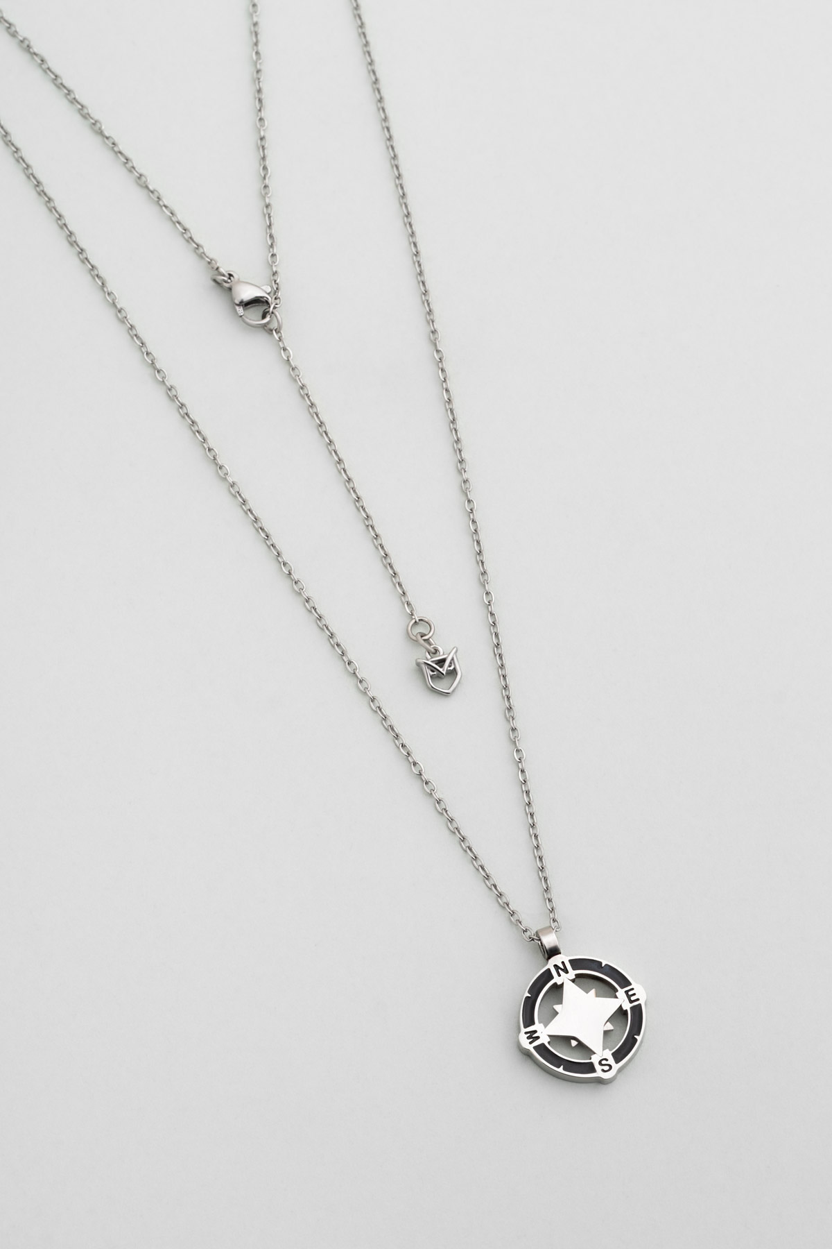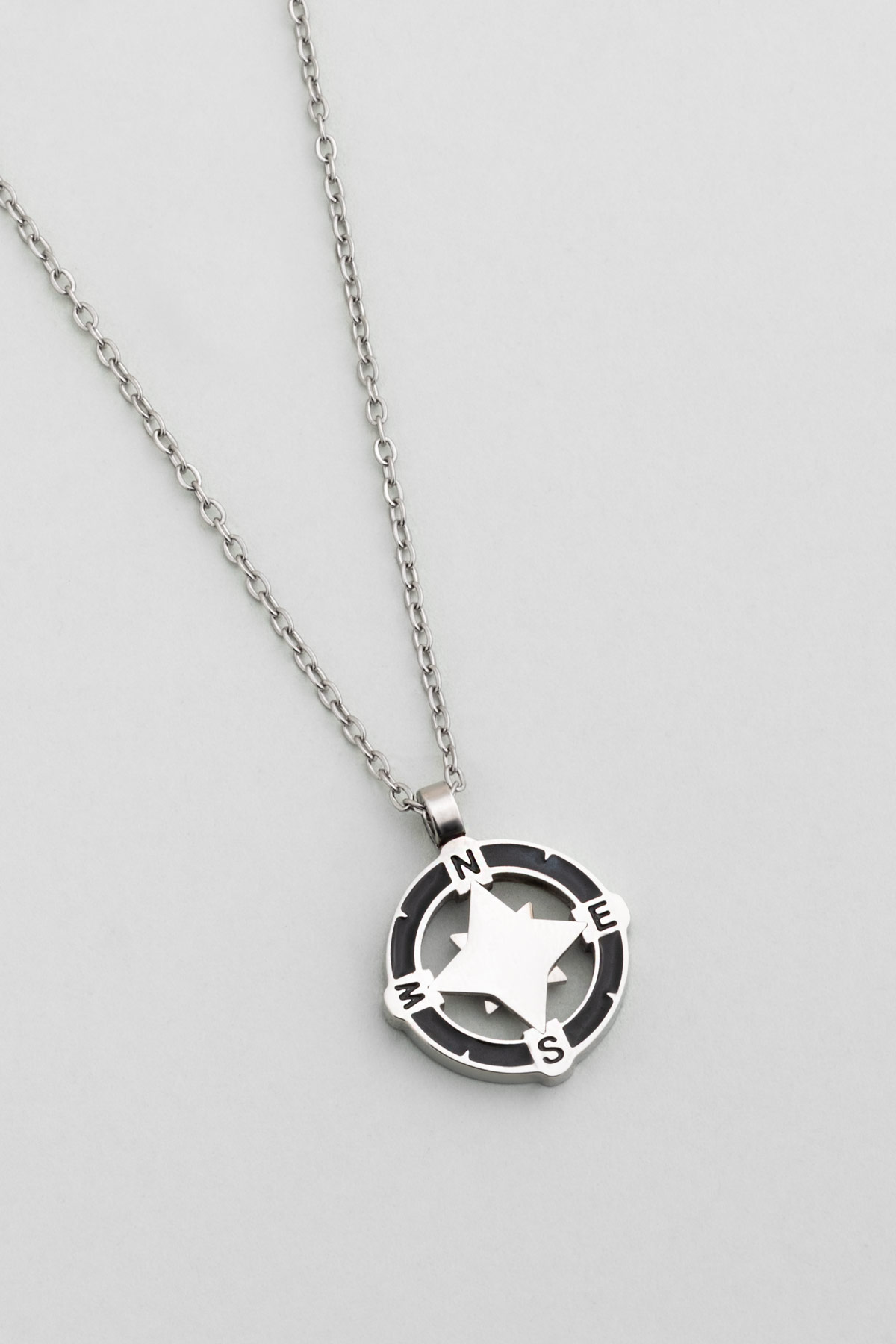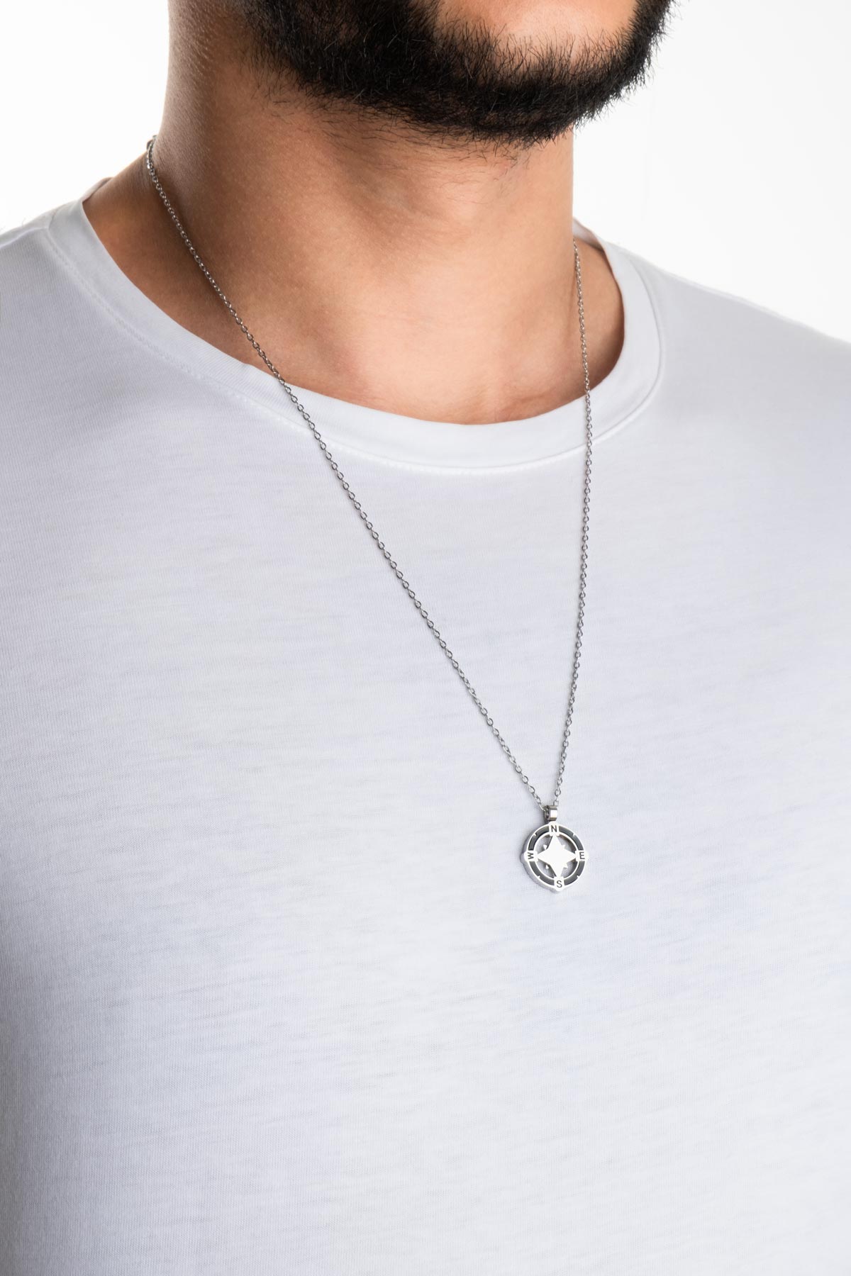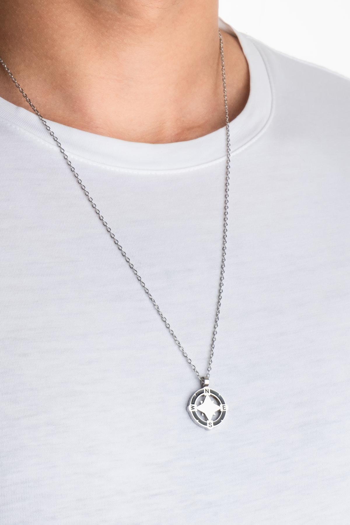 Metalik Pusula 63 Cm Çelik Erkek Kolye