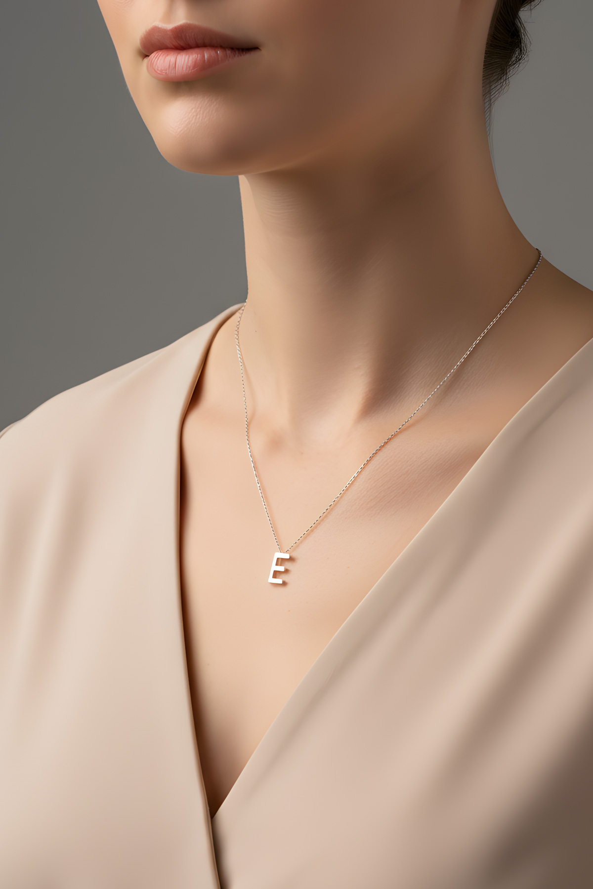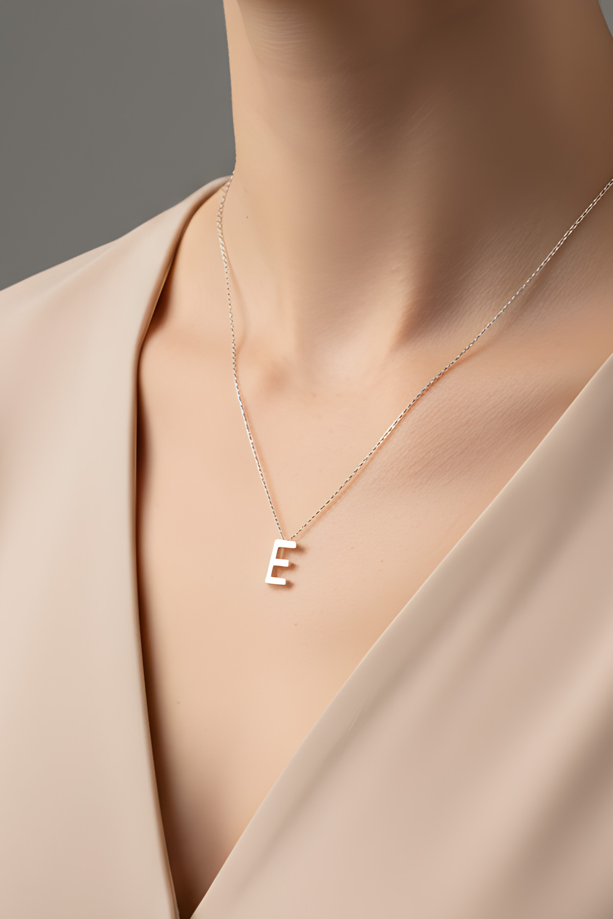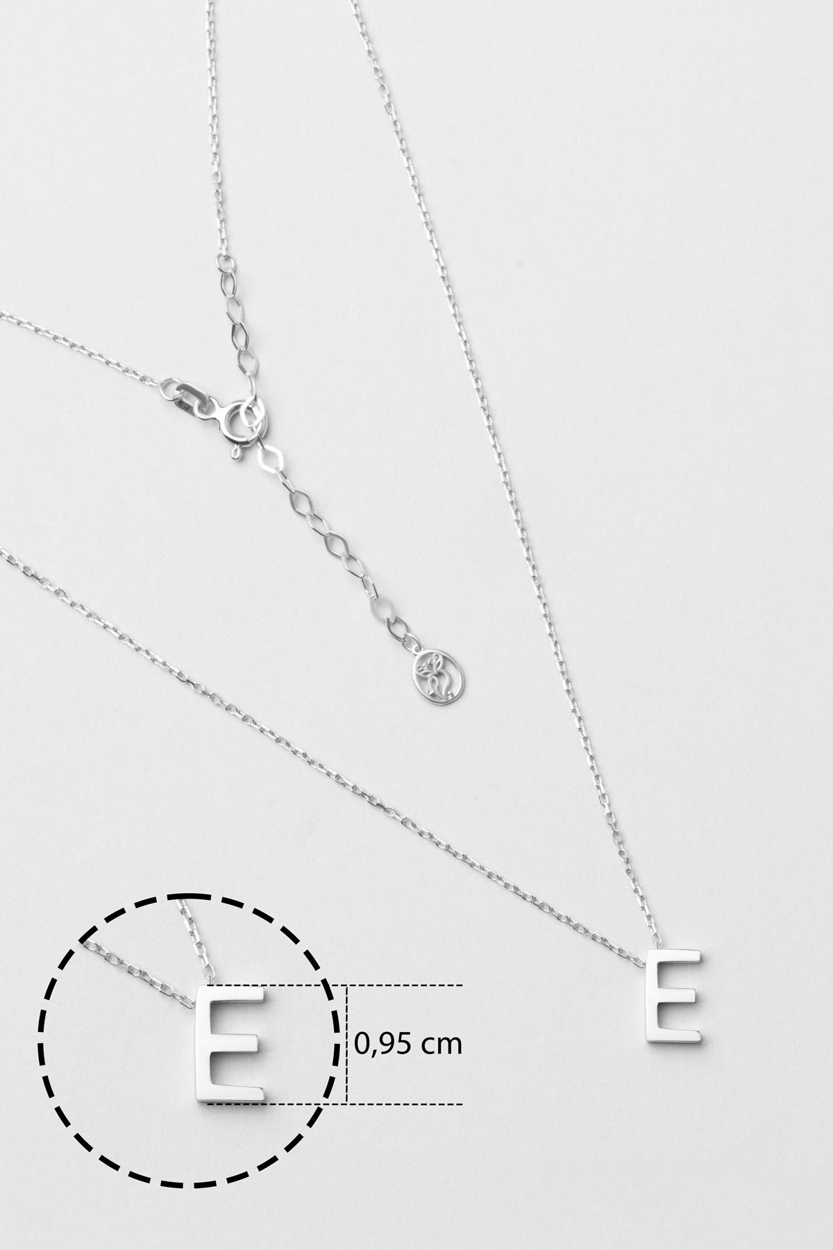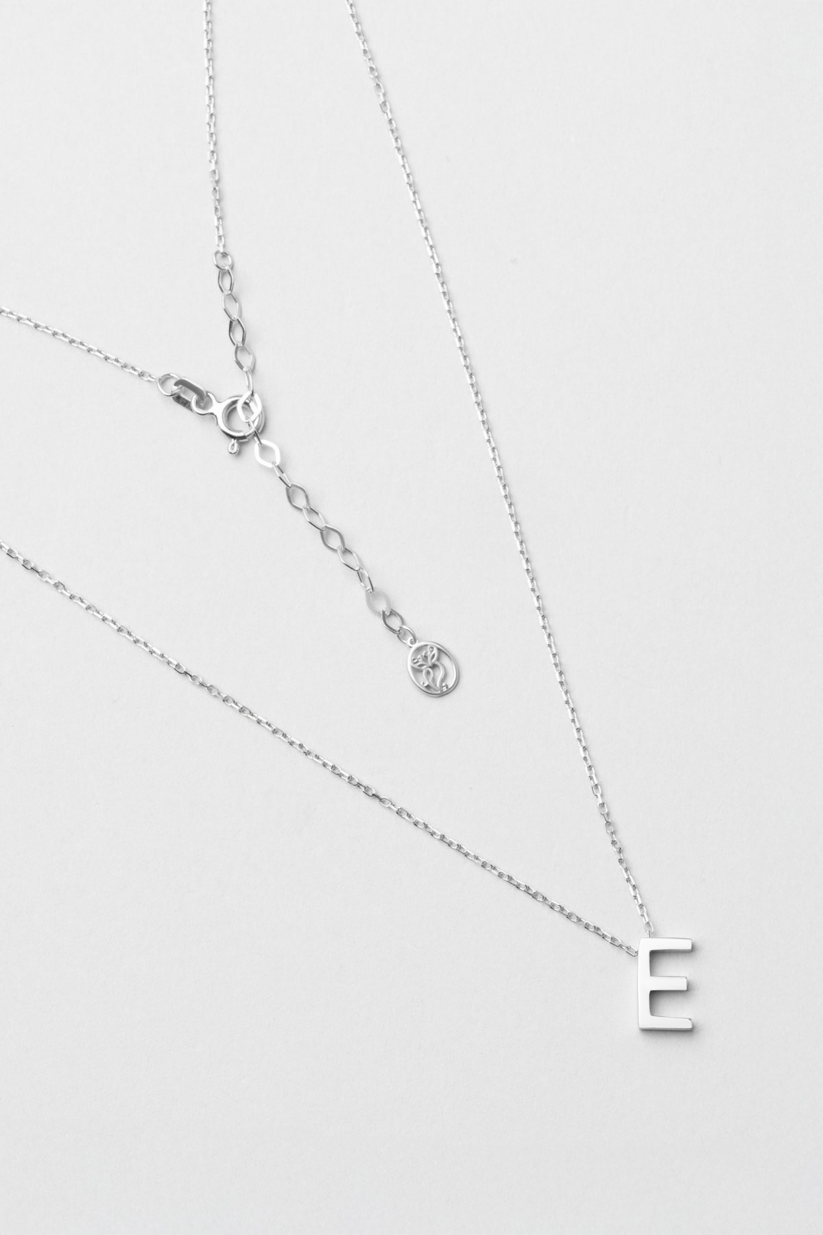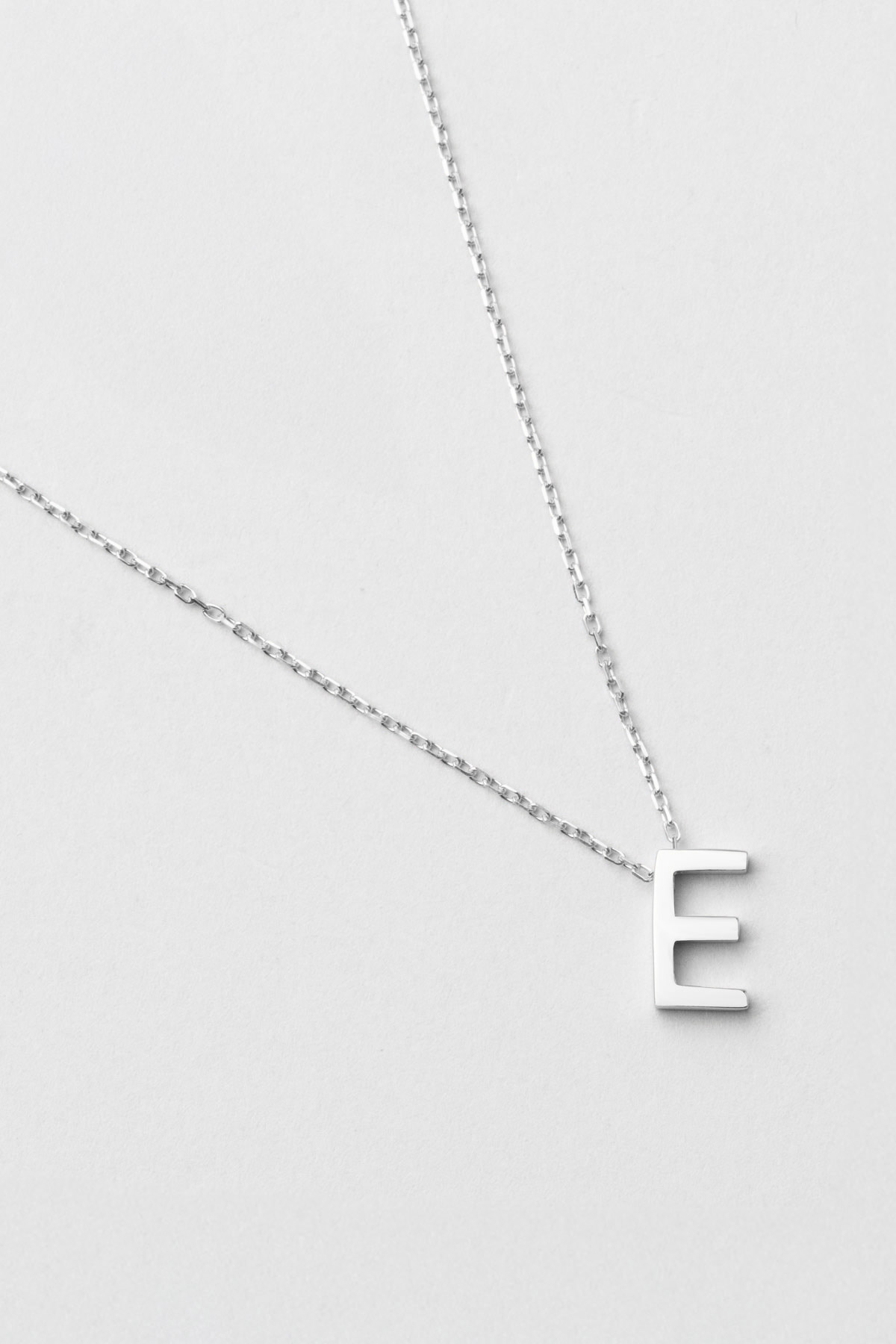 My Story E Harfi 18 Ayar Beyaz Altın Kaplama 45 Cm Gümüş Kolye